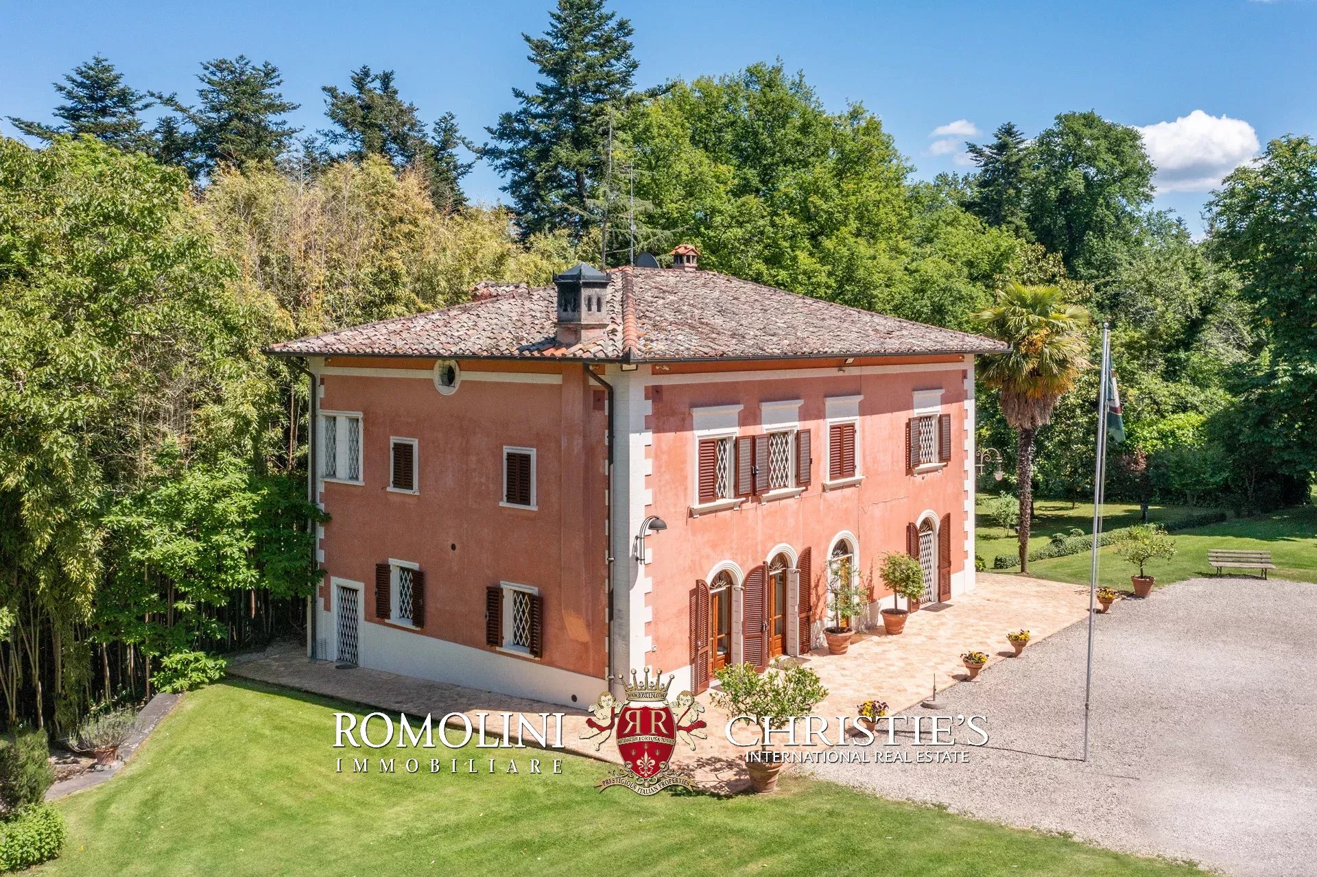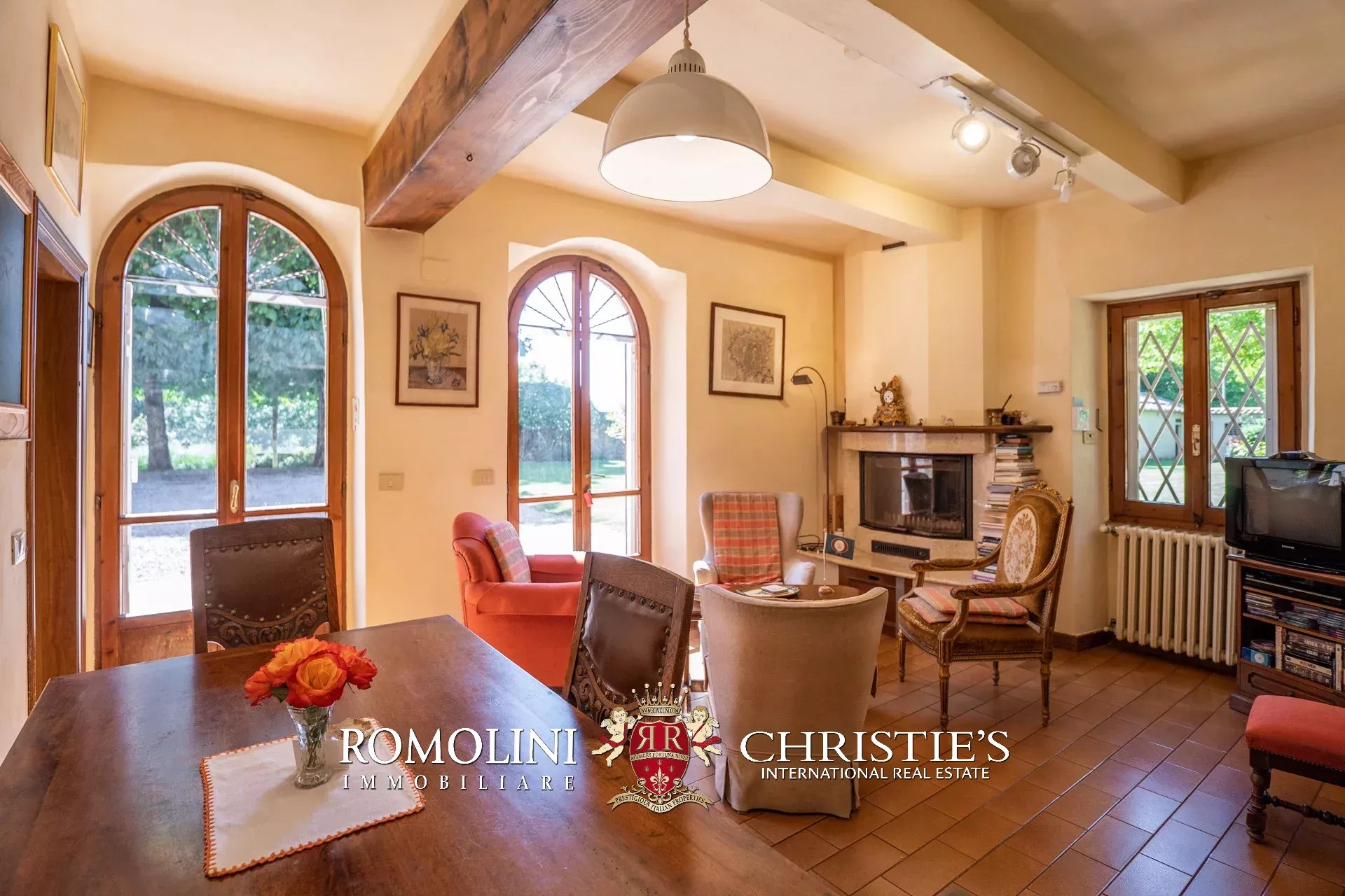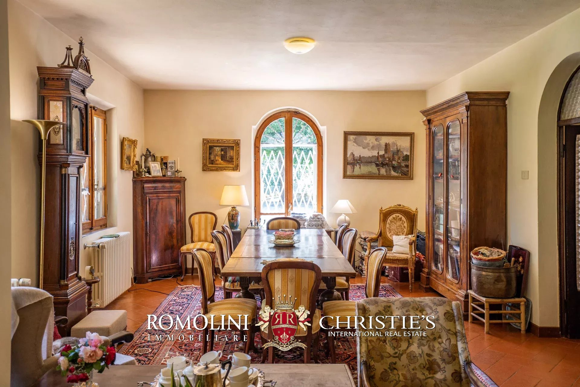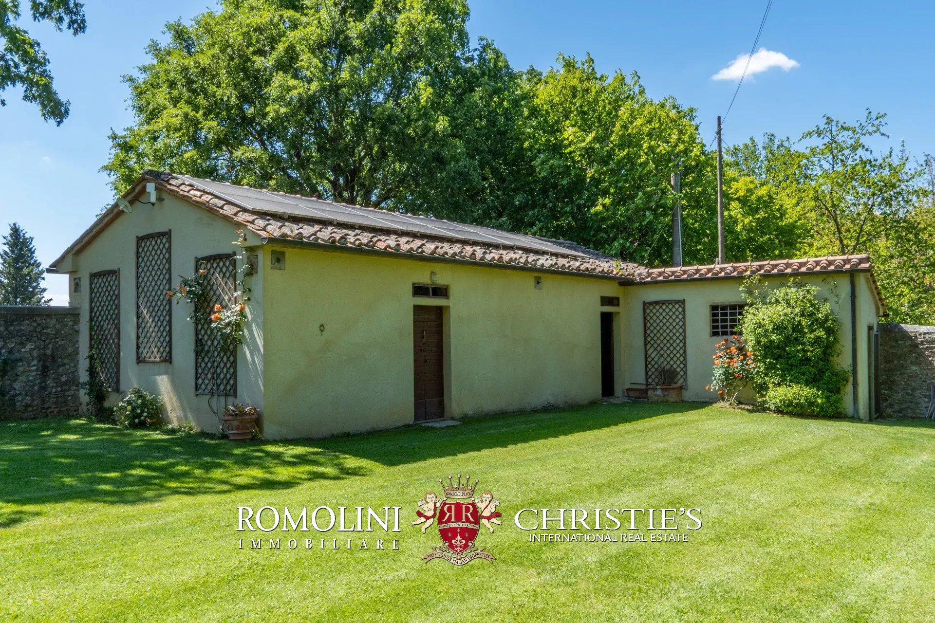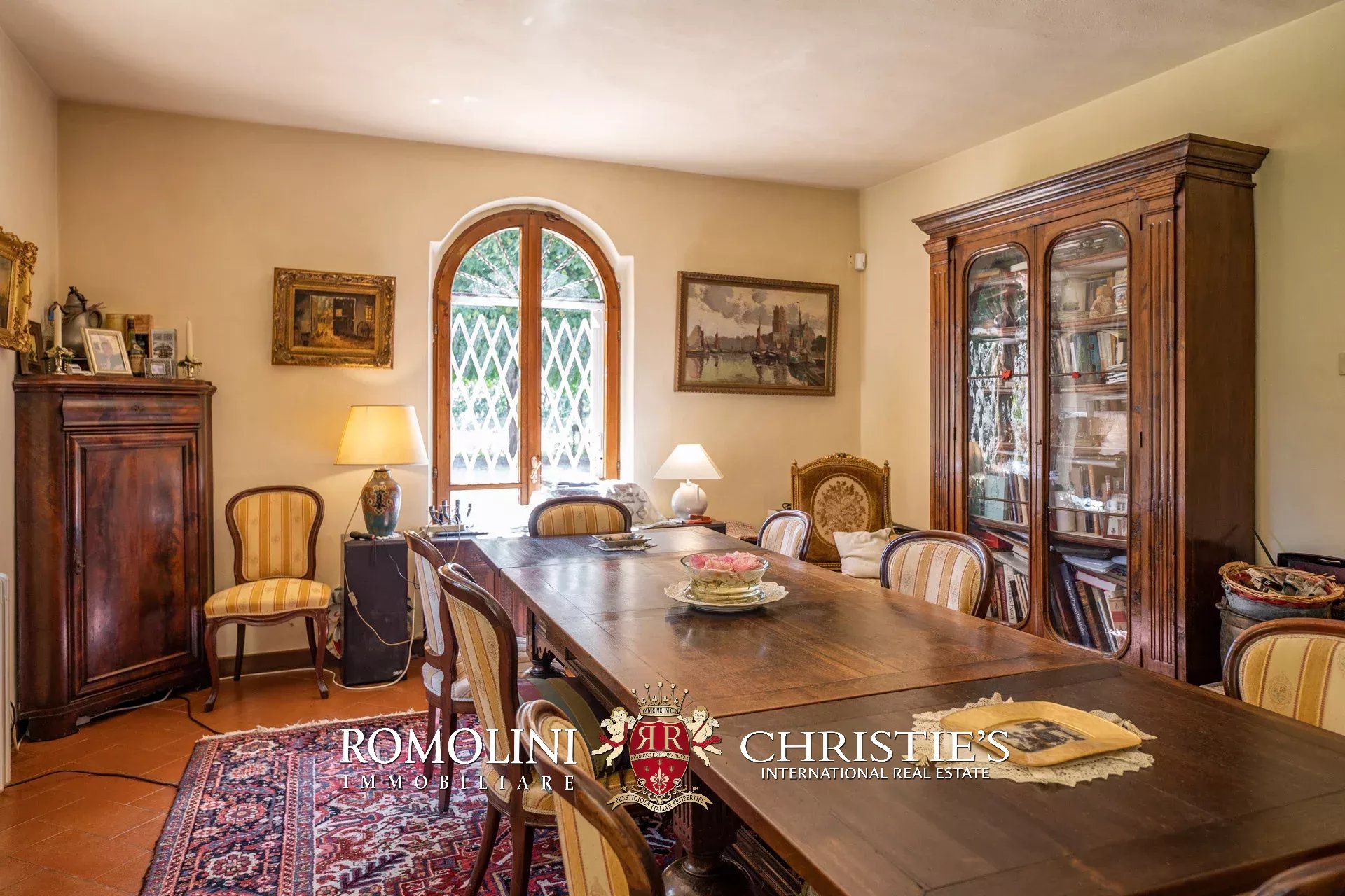 La villa si trova al centro di un appezzamento di terreno di circa 18,0 ettari, posti in posizione collinare e coperti quasi interamente da boschi (16,9 ha) che assicurano privacy e riservatezza. Il giardino (8.500 m²) è in ottime condizioni e circonda gli edifici assicurando ampi spazi aperti con piante ombreggianti per rilassarsi in estate. Una statua commemora il passaggio in zona del condottiero Garibaldi nel 1849.