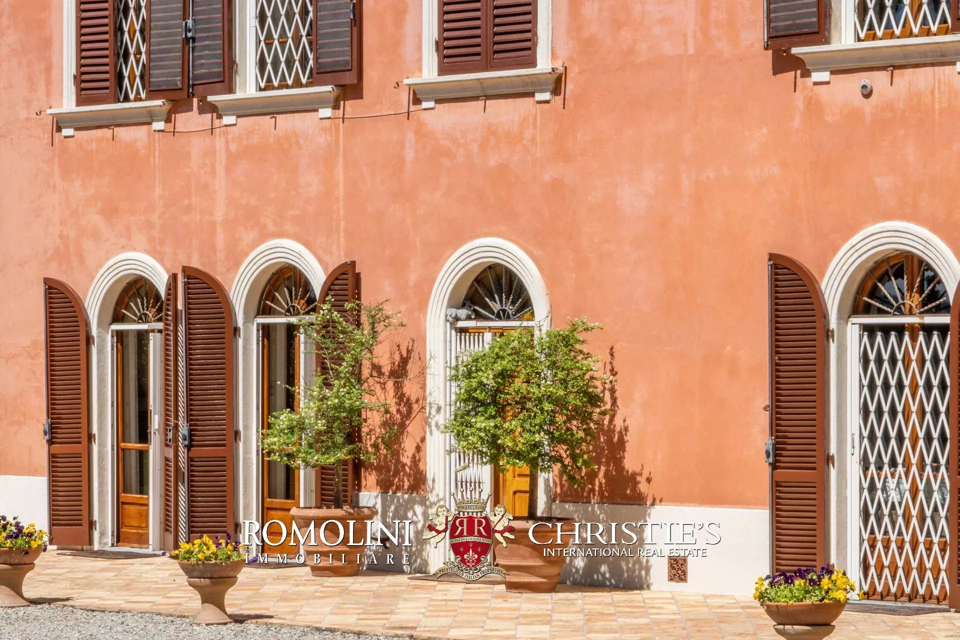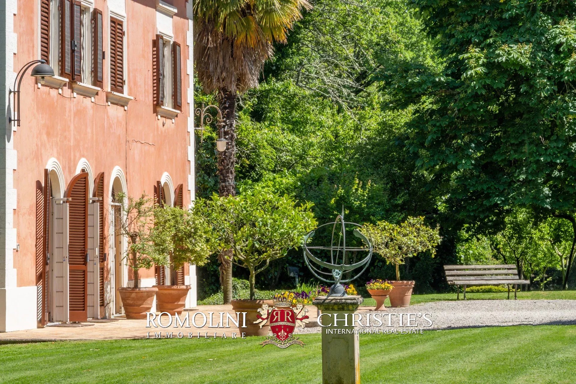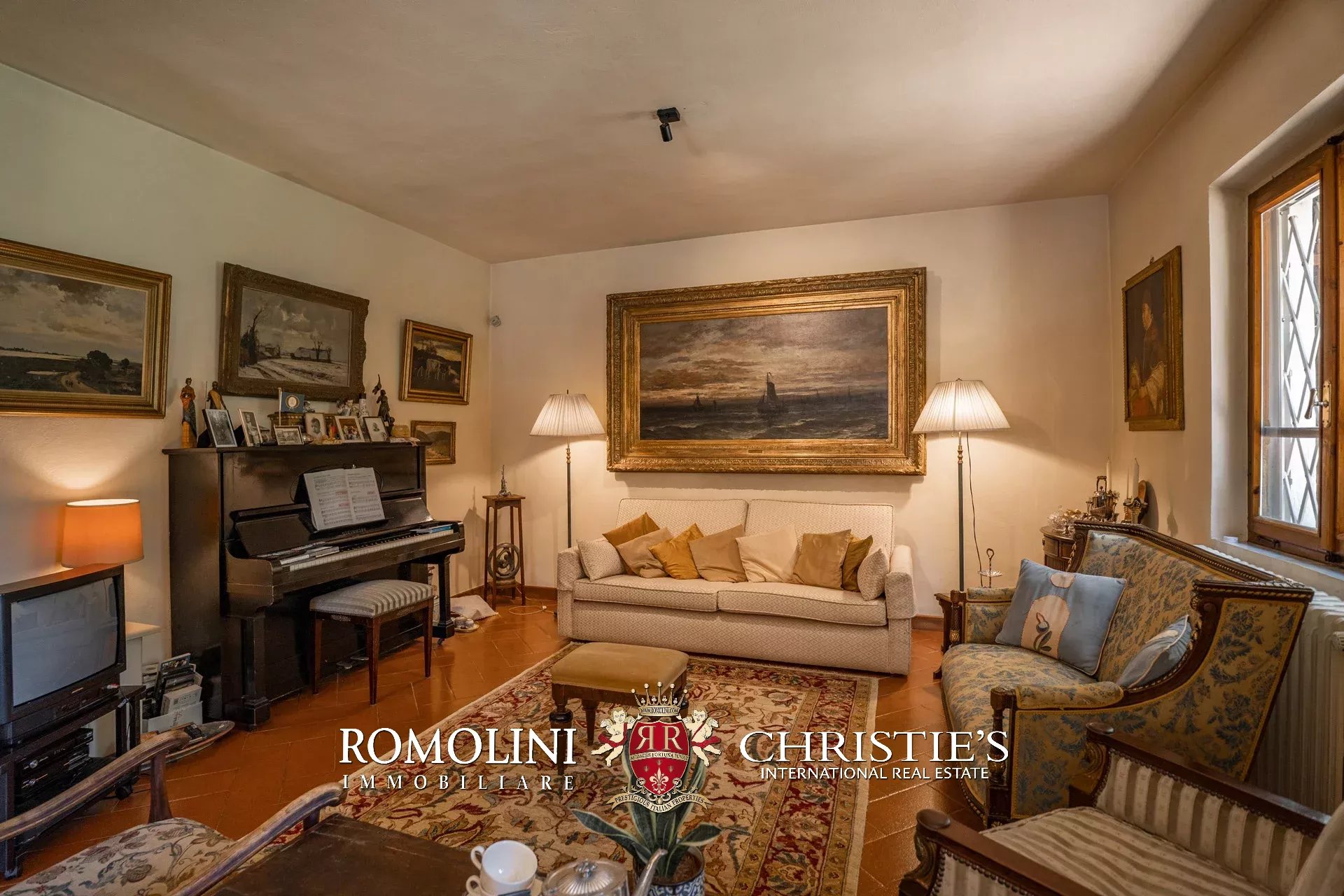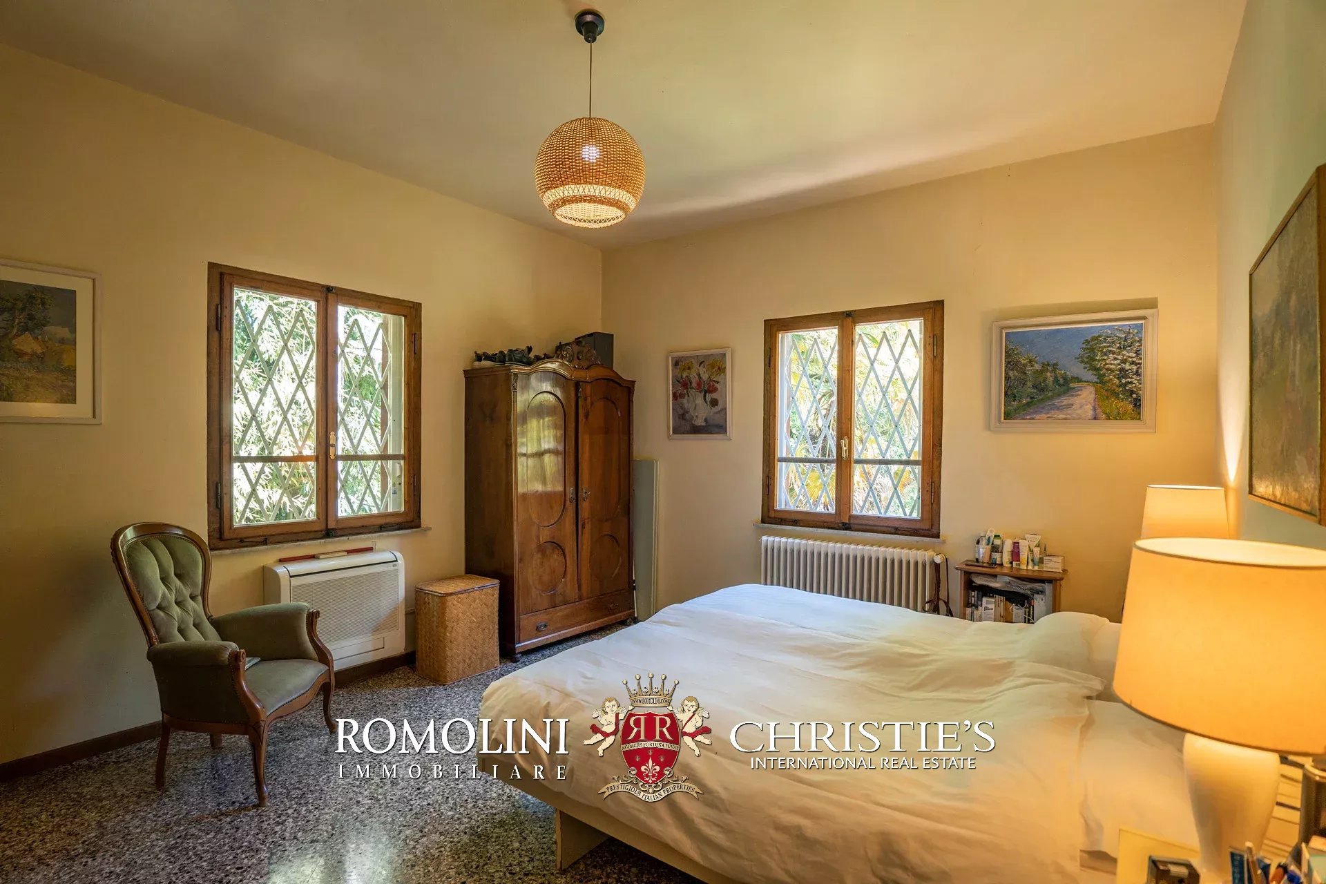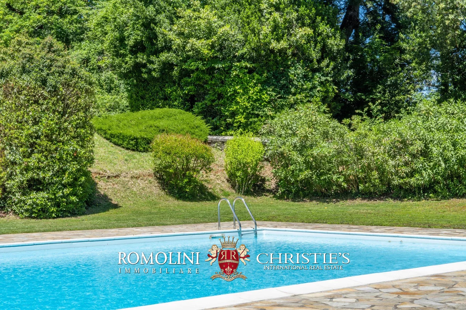 La villa si trova al centro di un appezzamento di terreno di circa 18,0 ettari, posti in posizione collinare e coperti quasi interamente da boschi (16,9 ha) che assicurano privacy e riservatezza. Il giardino (8.500 m²) è in ottime condizioni e circonda gli edifici assicurando ampi spazi aperti con piante ombreggianti per rilassarsi in estate. Una statua commemora il passaggio in zona del condottiero Garibaldi nel 1849.