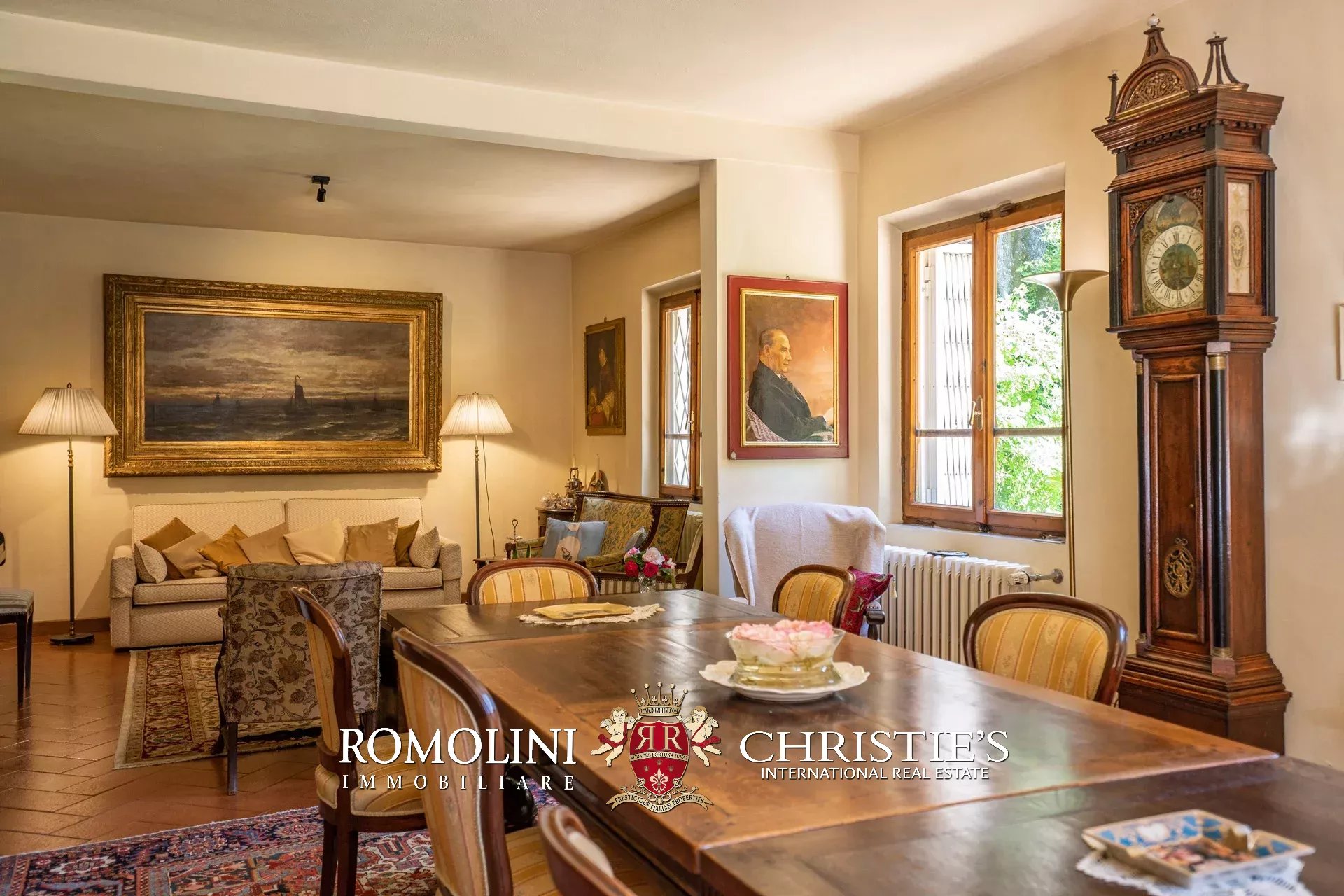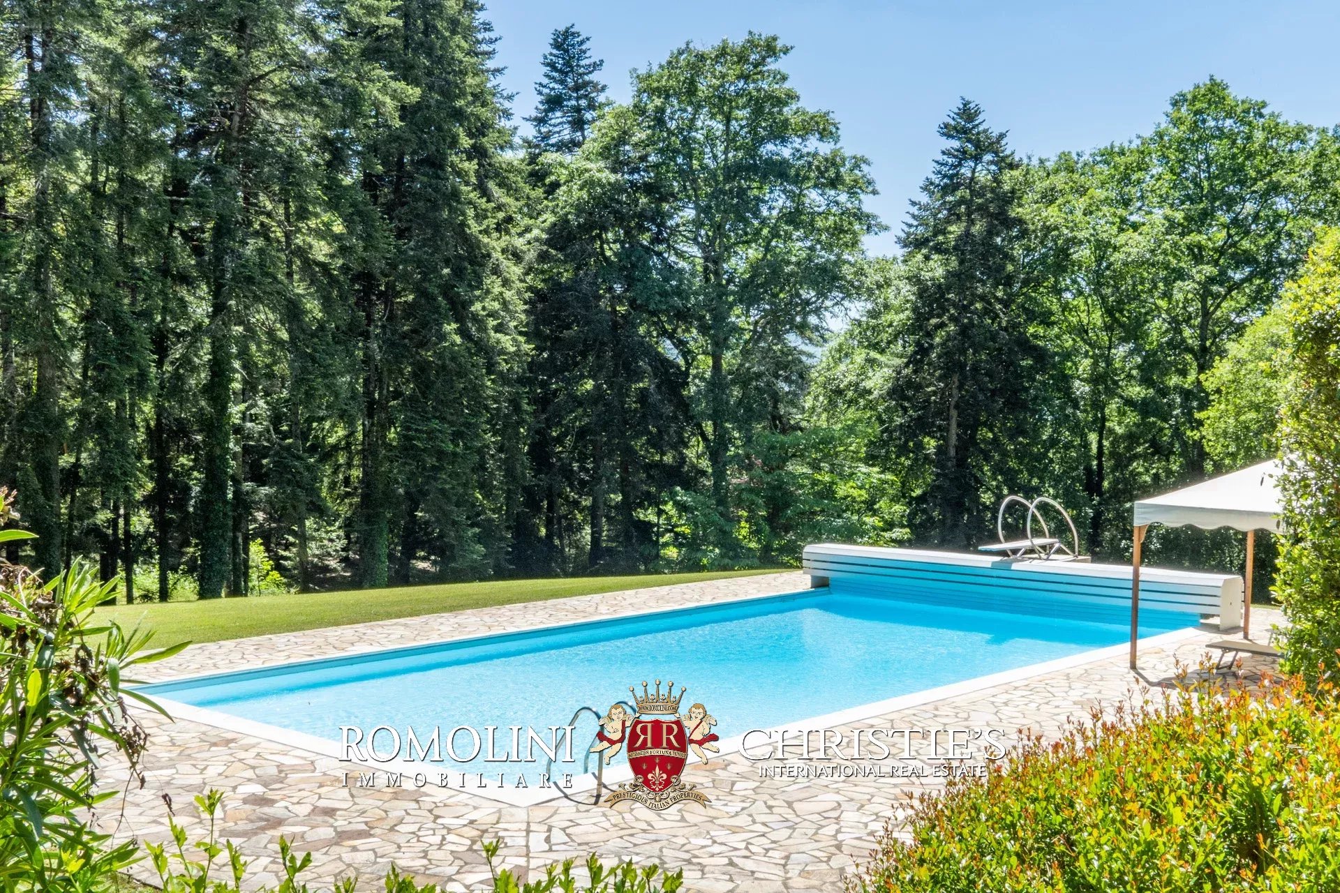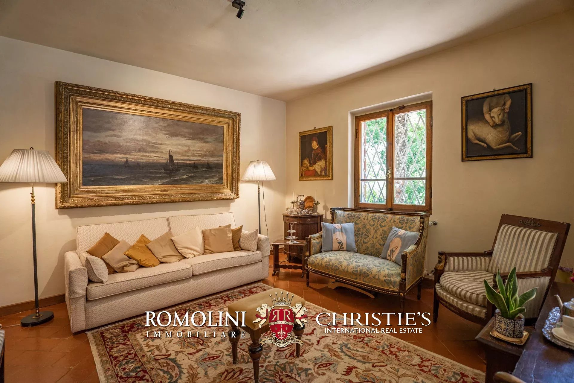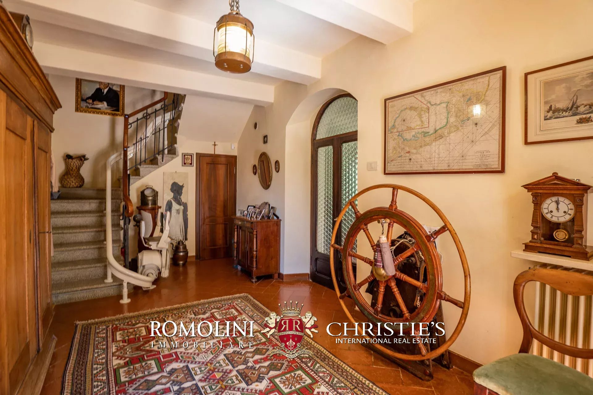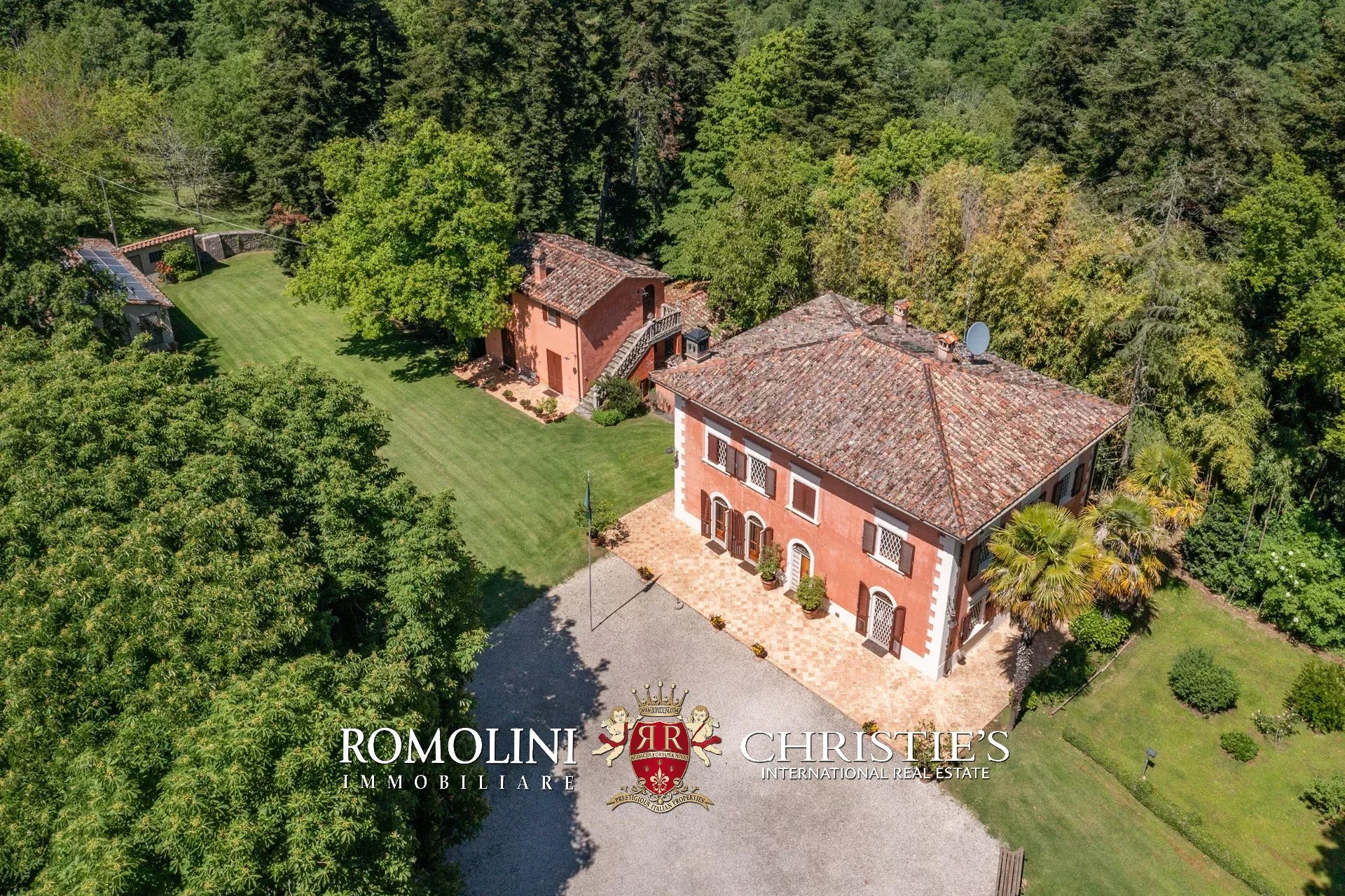 La villa si trova al centro di un appezzamento di terreno di circa 18,0 ettari, posti in posizione collinare e coperti quasi interamente da boschi (16,9 ha) che assicurano privacy e riservatezza. Il giardino (8.500 m²) è in ottime condizioni e circonda gli edifici assicurando ampi spazi aperti con piante ombreggianti per rilassarsi in estate. Una statua commemora il passaggio in zona del condottiero Garibaldi nel 1849.
