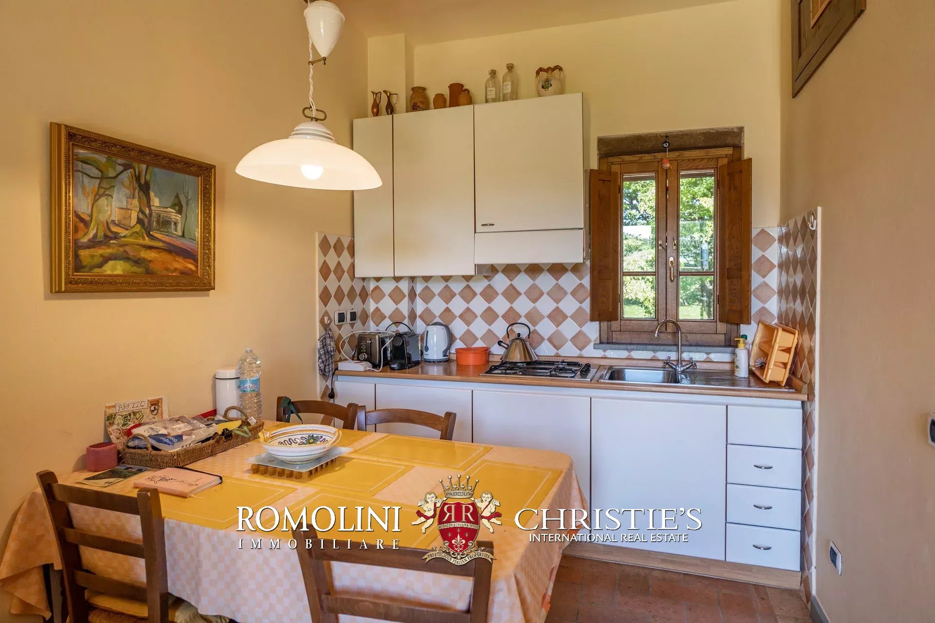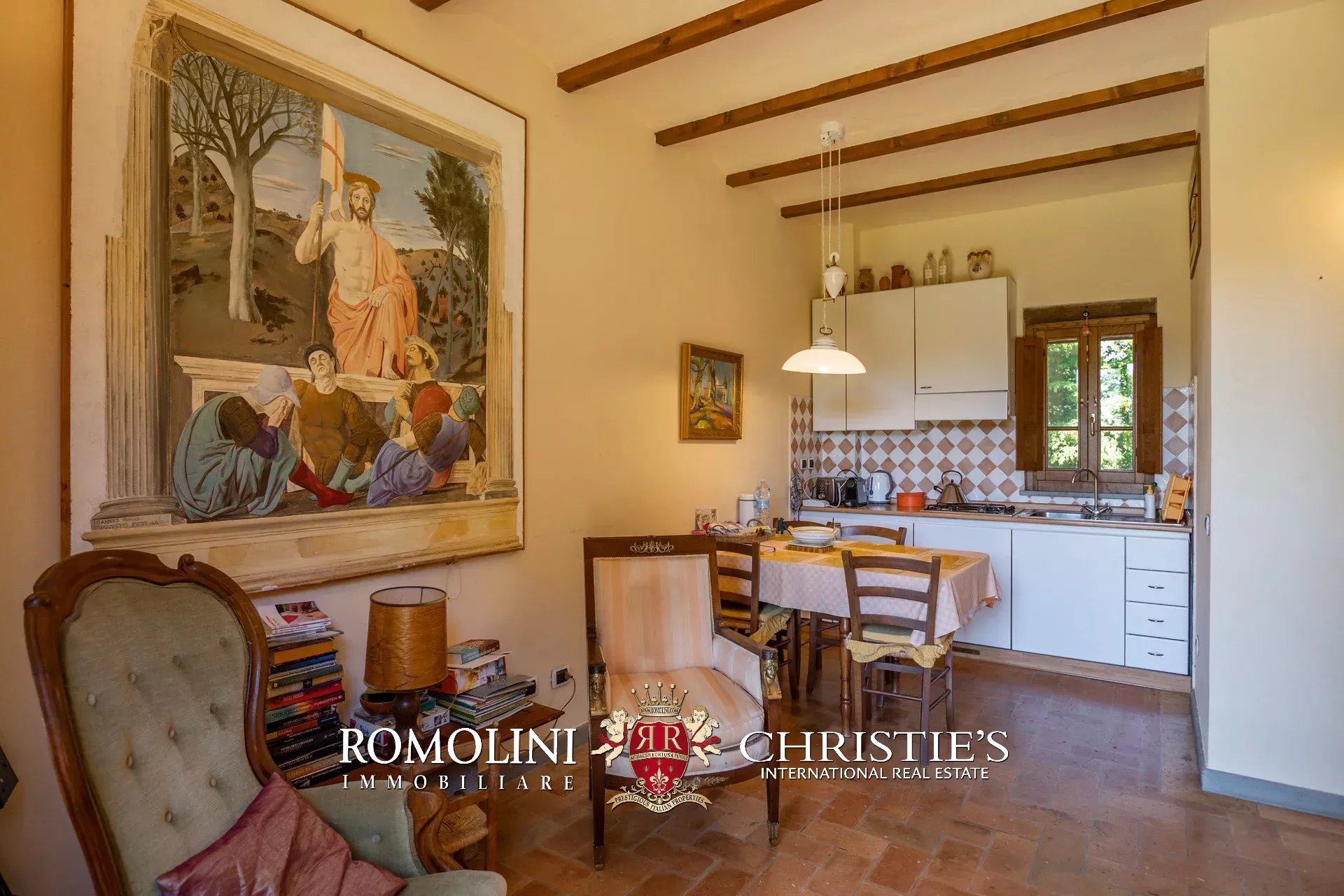Non lontano dai borghi medievali di Citerna e Monterchi, in una posizione riservata e molto tranquilla circondata dai boschi, villa con annessi in vendita. La proprietà si compone di vari edifici (oltre 660 m² in totale) in buone condizioni che ospitano 8 camere divise in tre unità indipendenti. Il terreno di 18,0 ha include il giardino con piscina 14 × 7 m e 130 piante di ulivo.