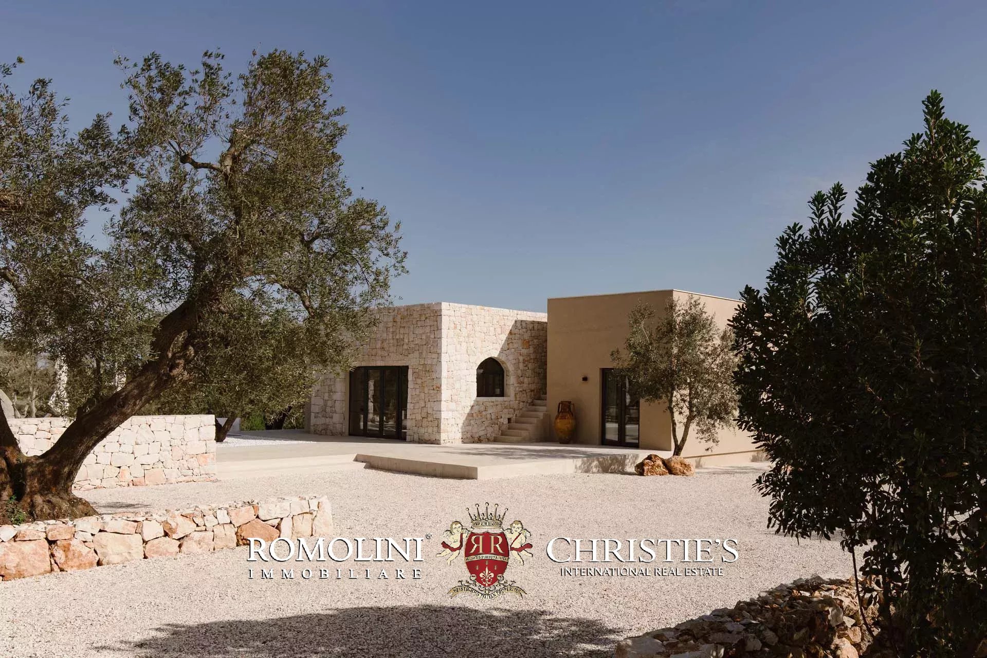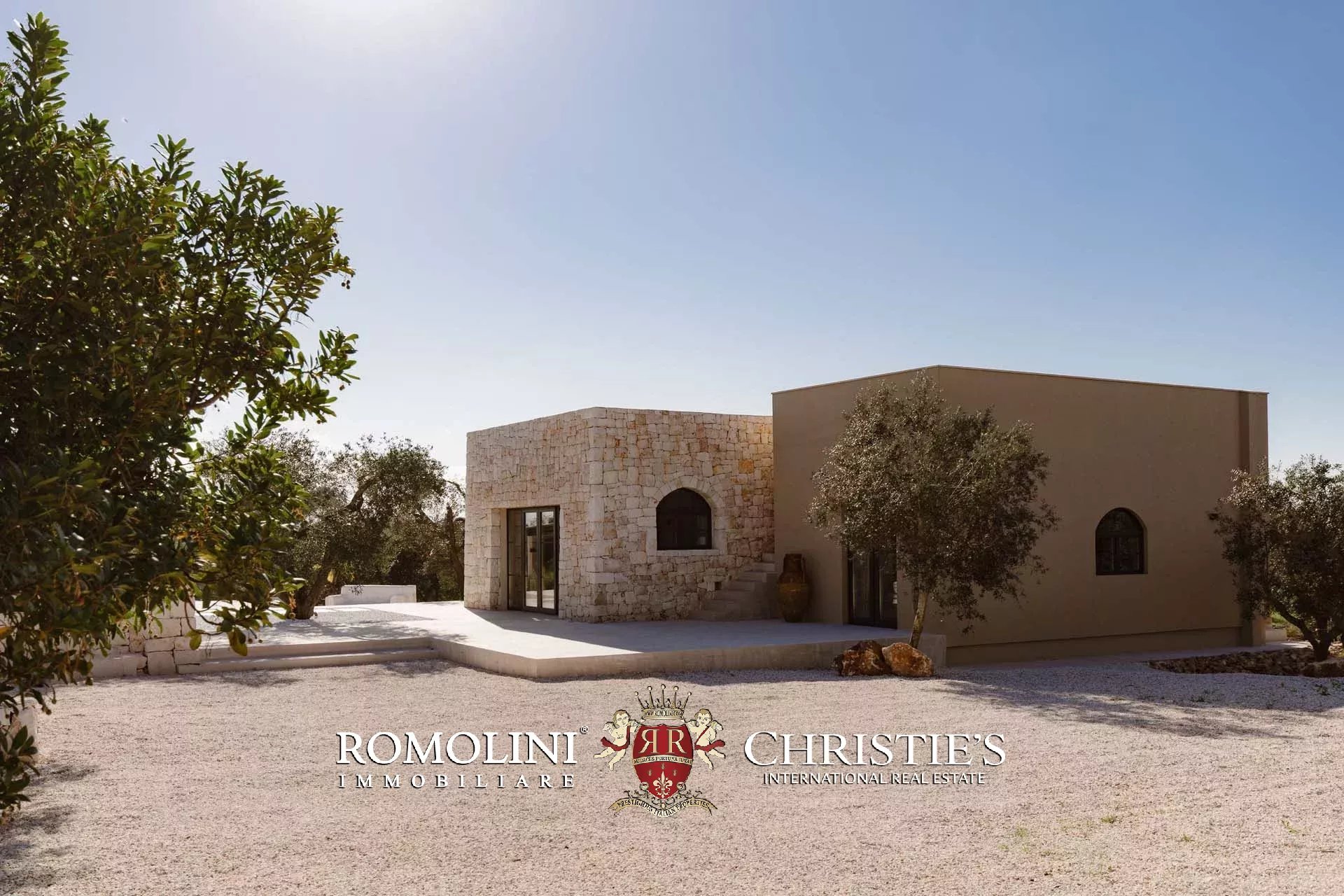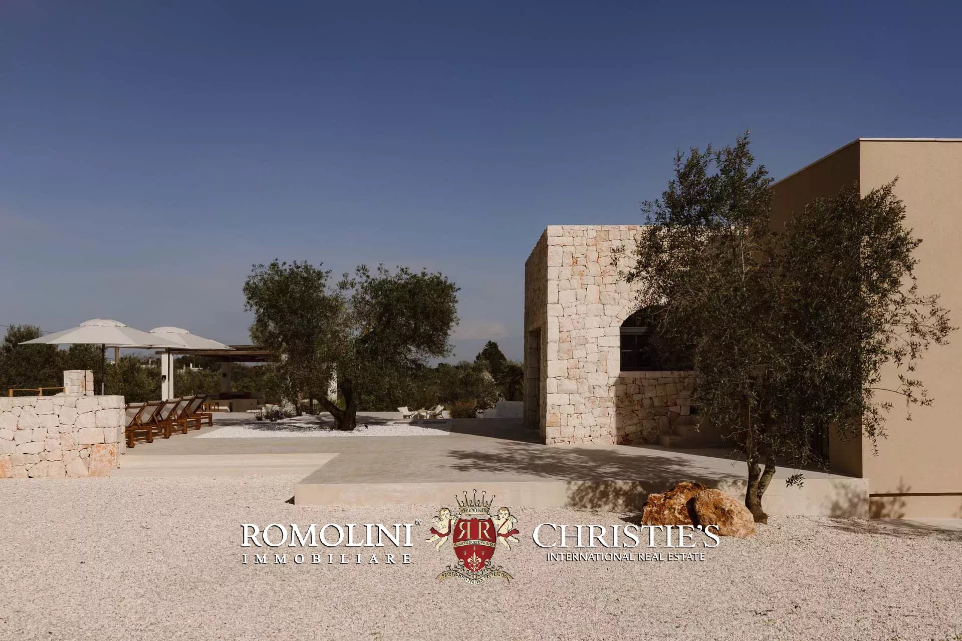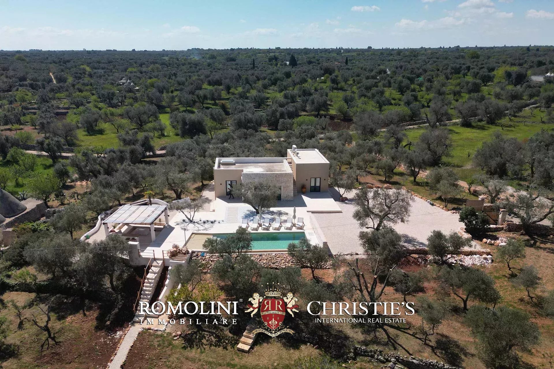 In posizione privilegiata e con vista panoramica mozzafiato, non lontano dal borgo di Ostuni, villa moderna con piscina e giardino in vendita. L’abitazione si sviluppa su un unico piano con spazi ampi e ben distribuiti. L'ingresso si apre su un open space luminoso, impreziosito da volte a botte che richiamano l’architettura tradizionale locale, con zona living e cucina a vista. La zona notte comprende tre camere e quattro bagni, tutti realizzati con materiali di alta qualità e dotati di ogni comfort. Dall’esterno una scala sale sul tetto dove si trova una bellissima terrazza con vista sulla campagna circostante.