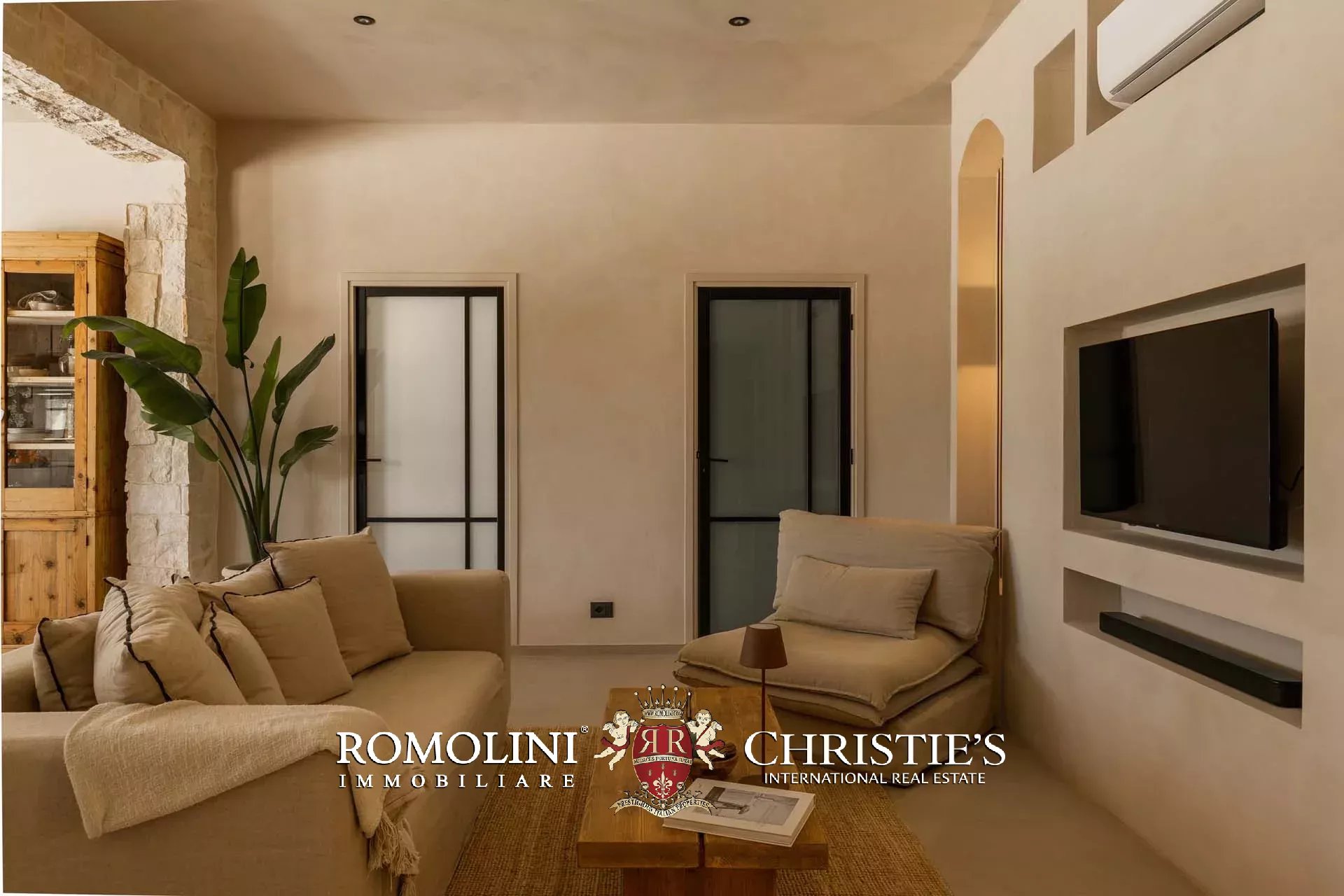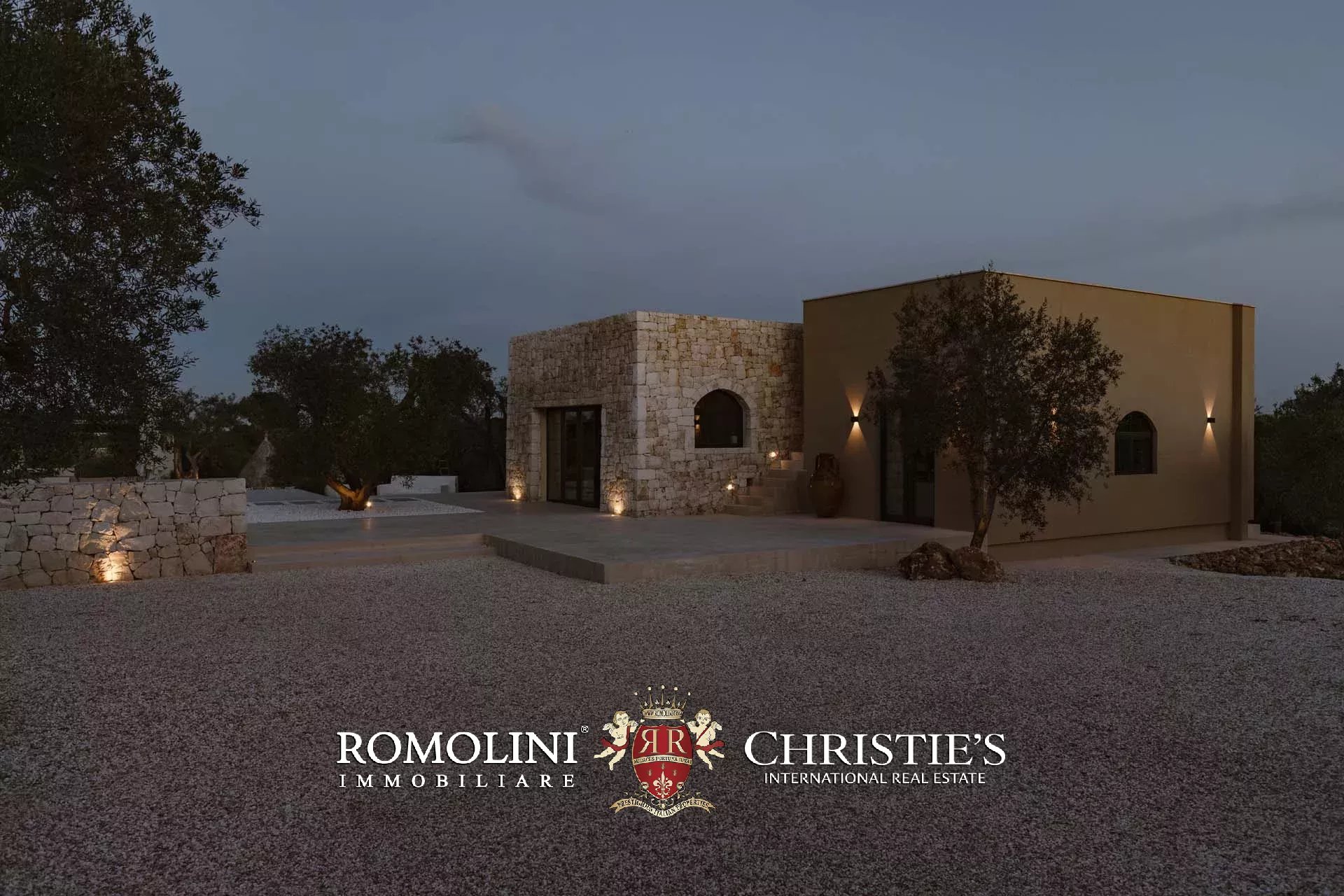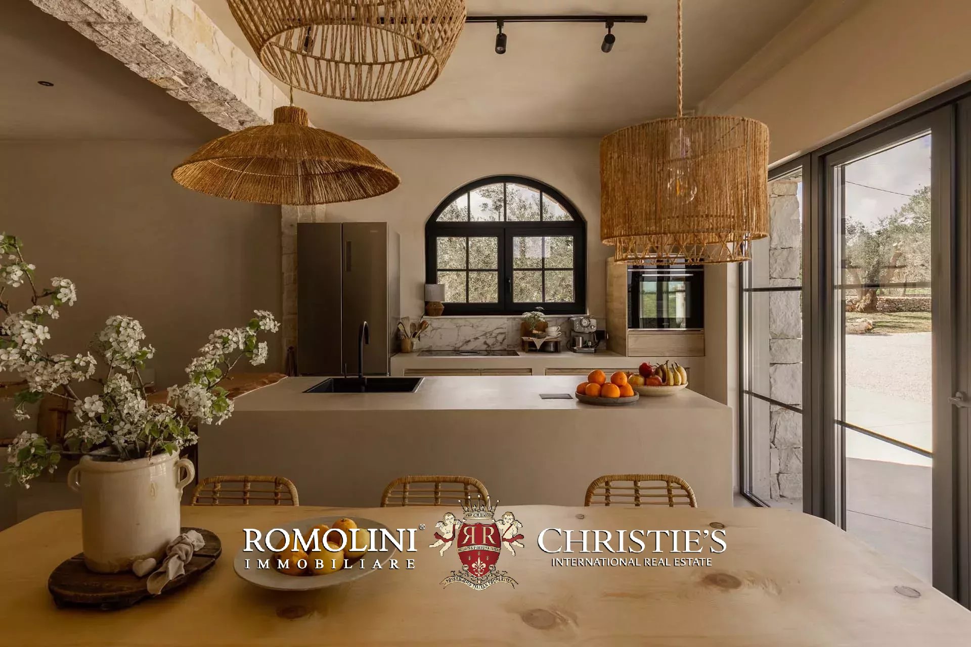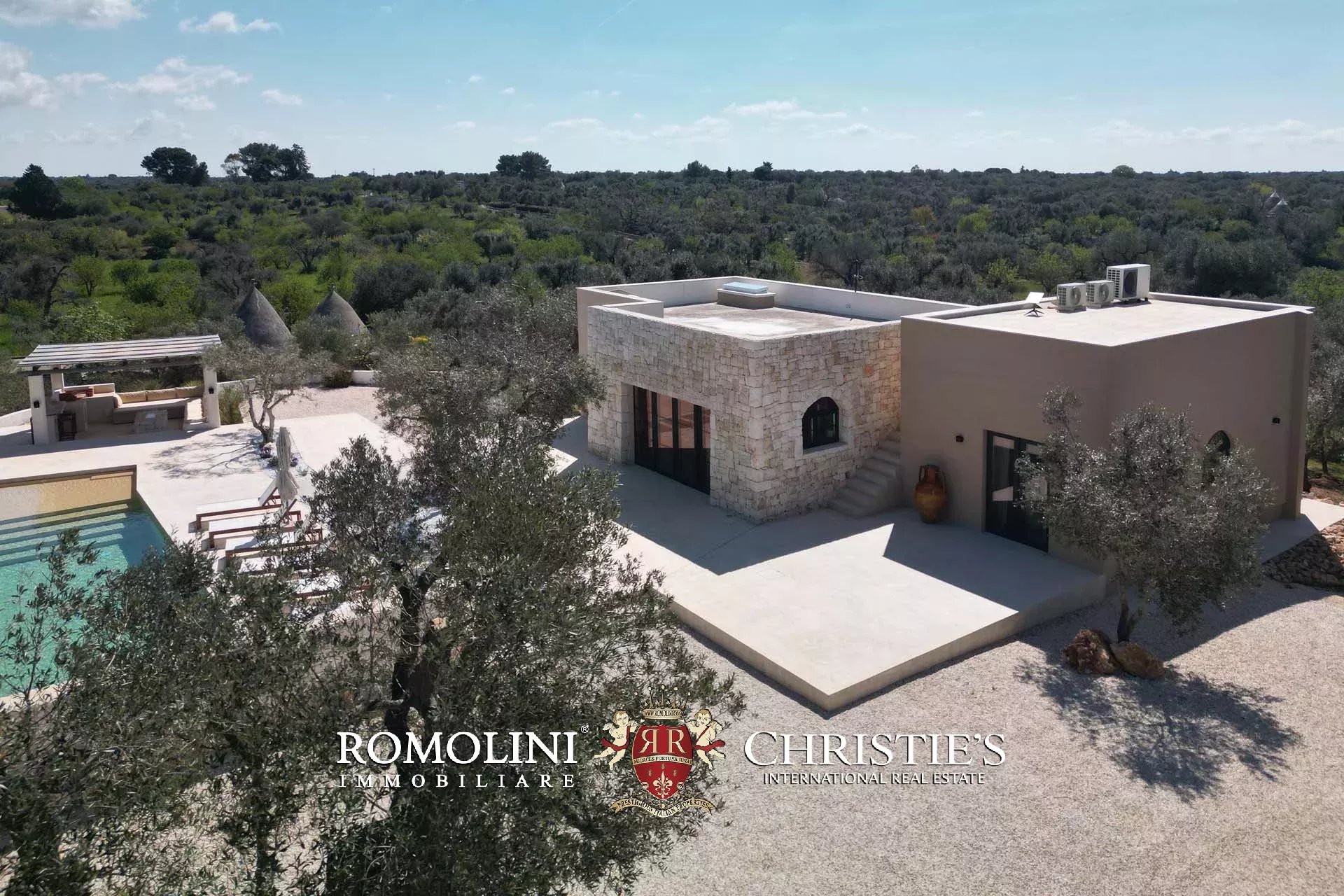 In posizione privilegiata e con vista panoramica mozzafiato, non lontano dal borgo di Ostuni, villa moderna con piscina e giardino in vendita. L’abitazione si sviluppa su un unico piano con spazi ampi e ben distribuiti. L'ingresso si apre su un open space luminoso, impreziosito da volte a botte che richiamano l’architettura tradizionale locale, con zona living e cucina a vista. La zona notte comprende tre camere e quattro bagni, tutti realizzati con materiali di alta qualità e dotati di ogni comfort. Dall’esterno una scala sale sul tetto dove si trova una bellissima terrazza con vista sulla campagna circostante.