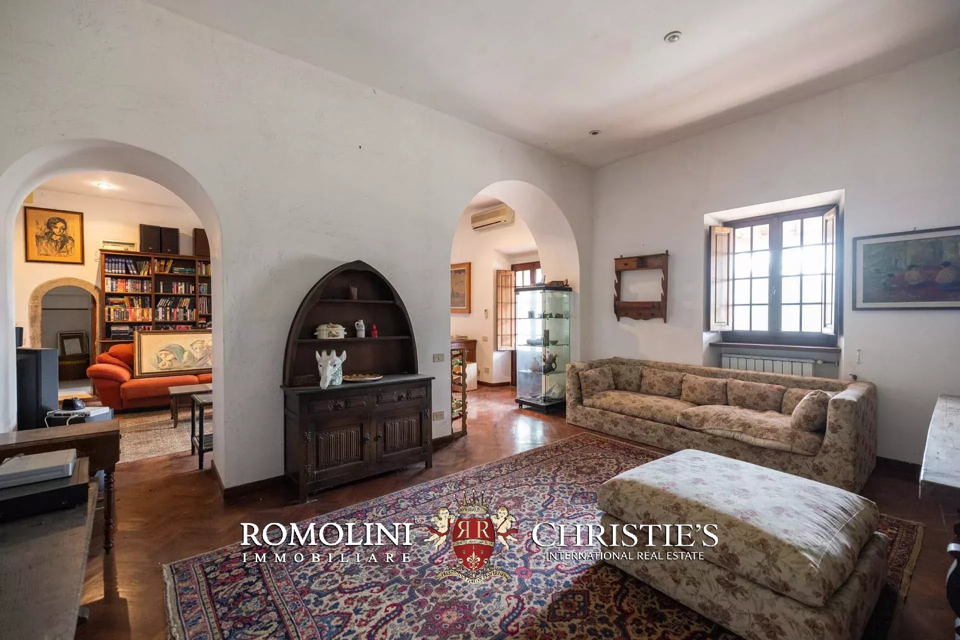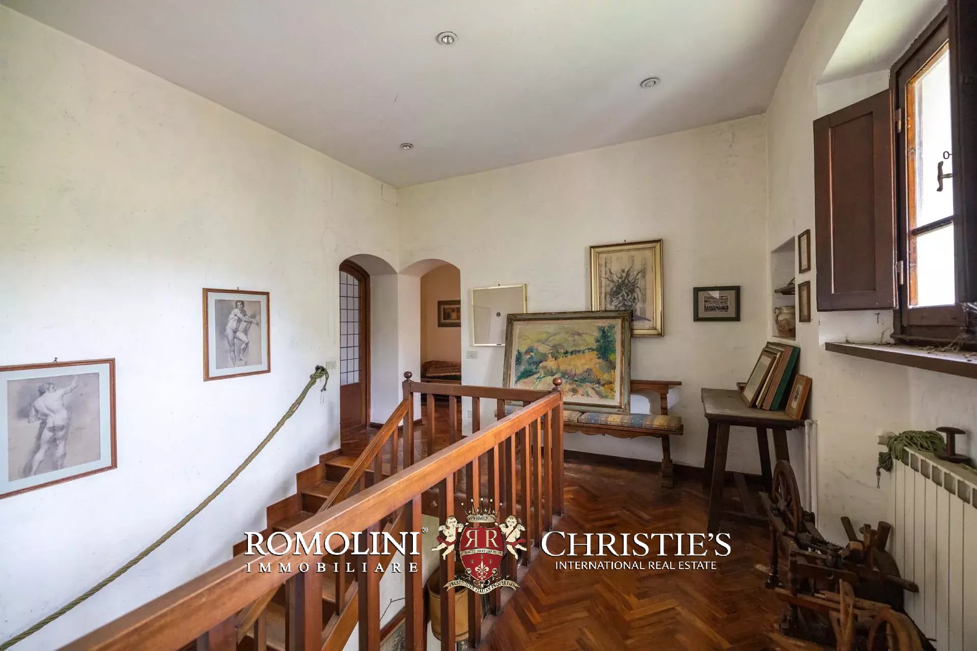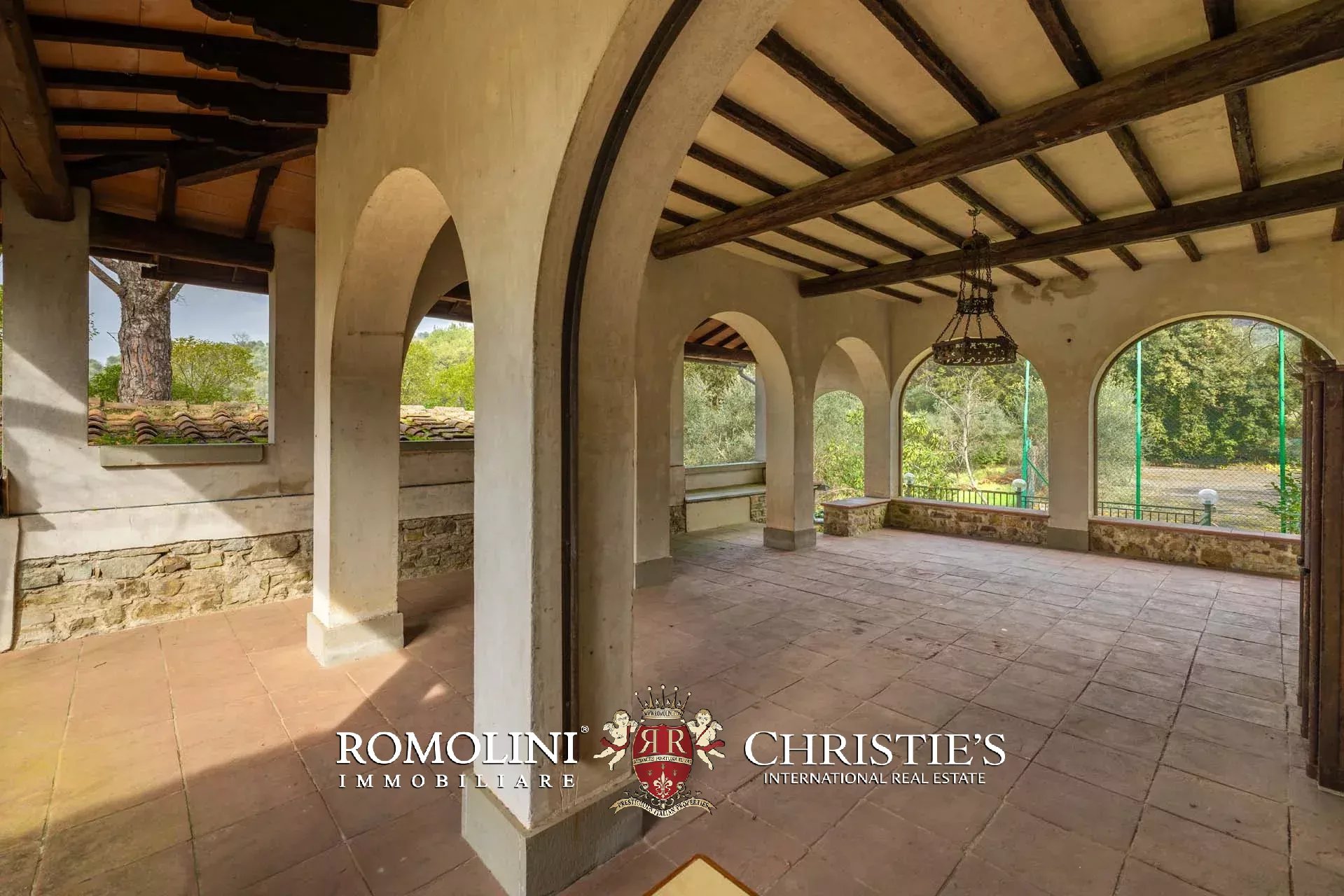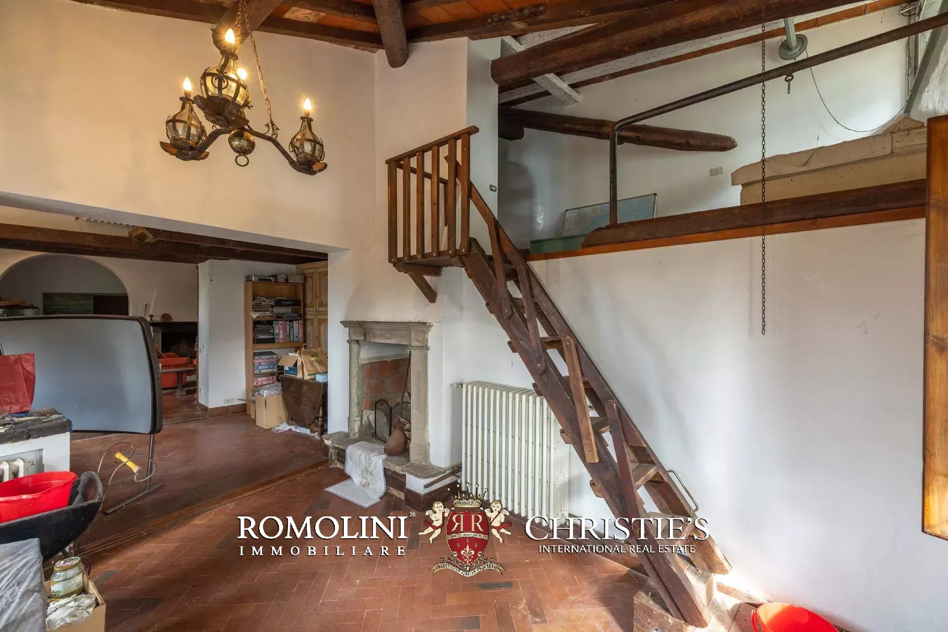 Ricavata da un’antica stazione di posta rinascimentale, la proprietà conserva un carattere autentico e un fascino senza tempo, sviluppandosi su oltre 600 m² di superficie lorda. La villa è circondata da un ampio parco privato di circa 7,7 ettari, composto da prati, uliveti e un bosco che garantiscono massima privacy e un contesto naturale di grande suggestione.