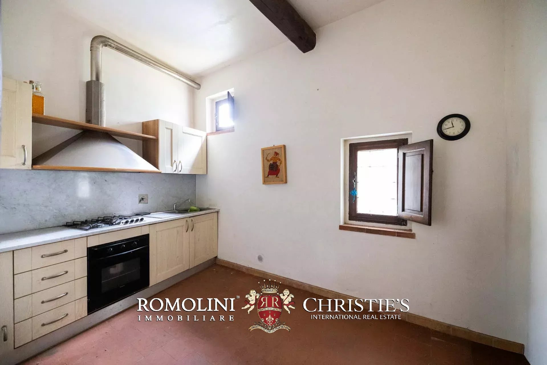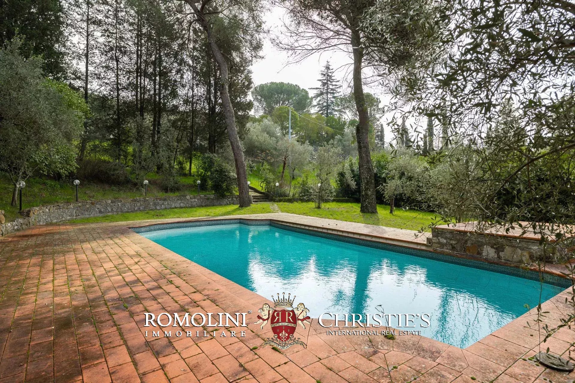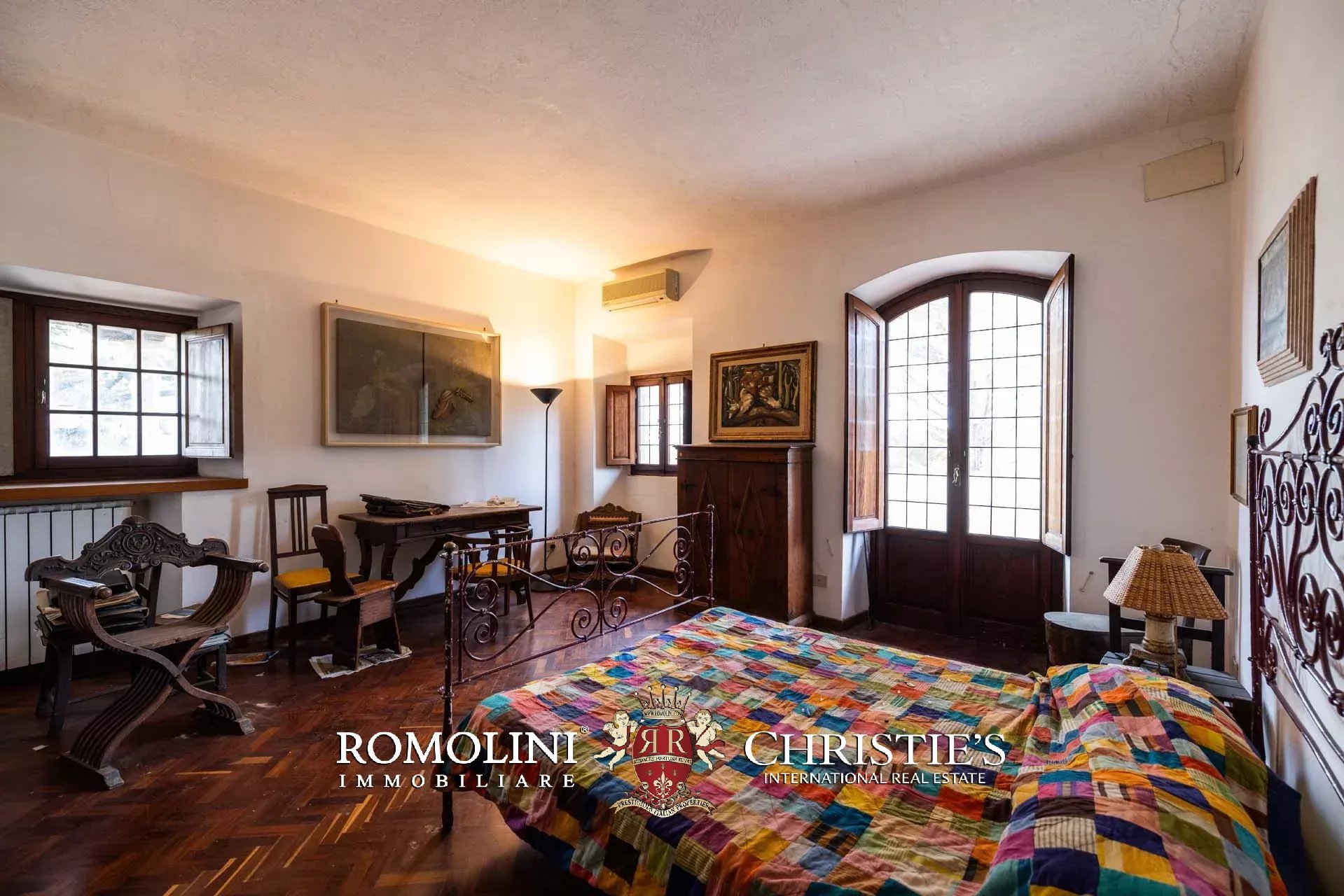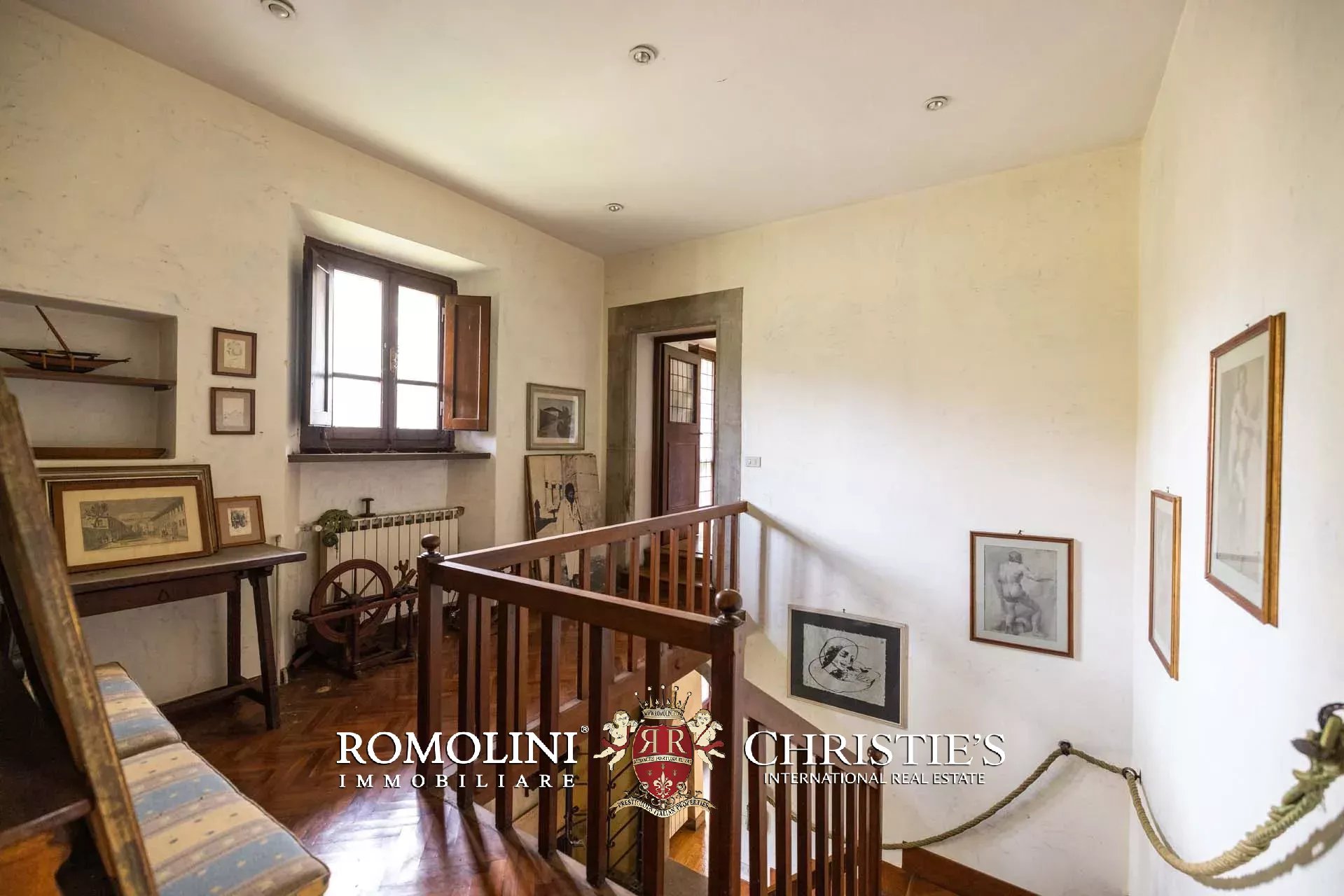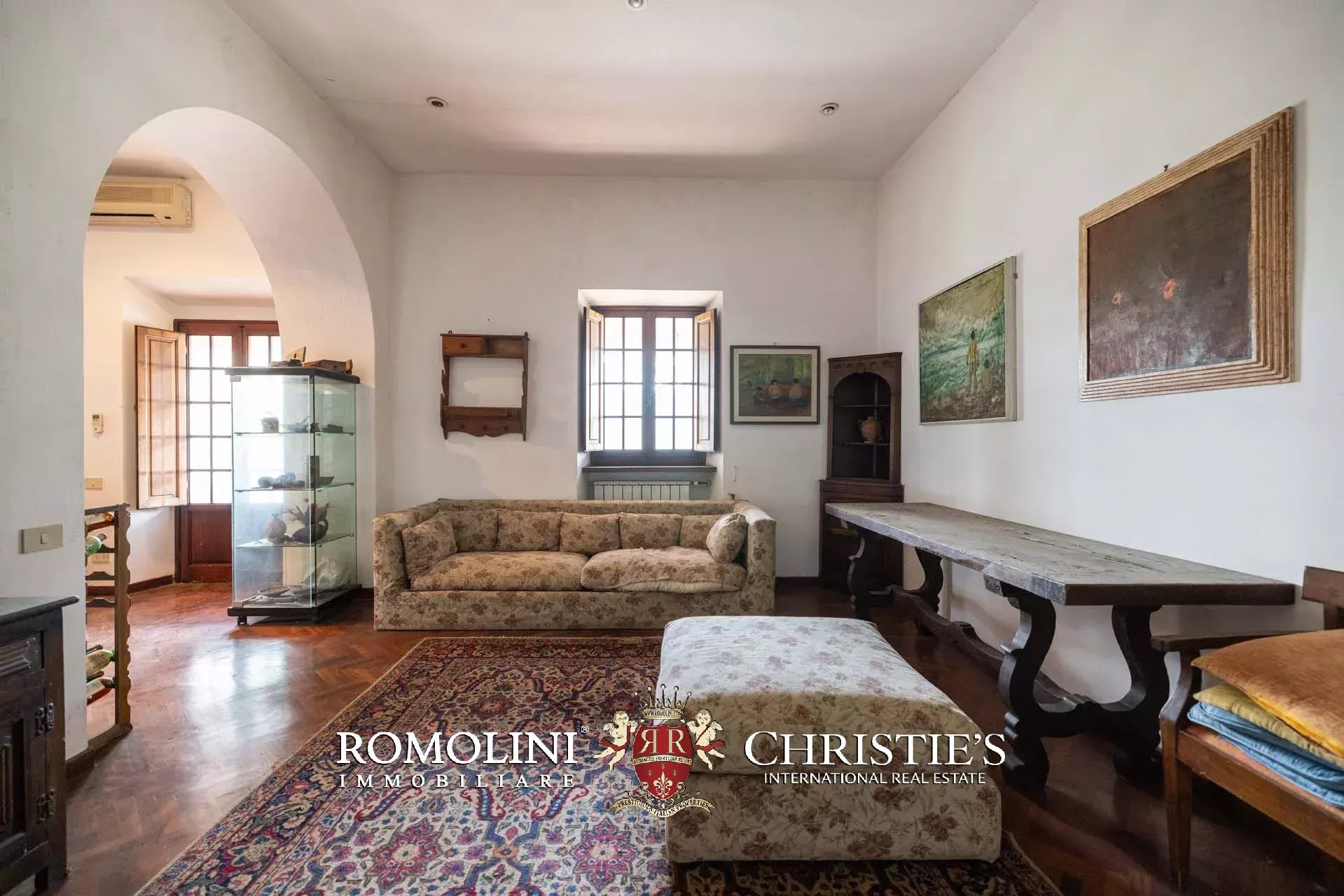 Ricavata da un’antica stazione di posta rinascimentale, la proprietà conserva un carattere autentico e un fascino senza tempo, sviluppandosi su oltre 600 m² di superficie lorda. La villa è circondata da un ampio parco privato di circa 7,7 ettari, composto da prati, uliveti e un bosco che garantiscono massima privacy e un contesto naturale di grande suggestione.