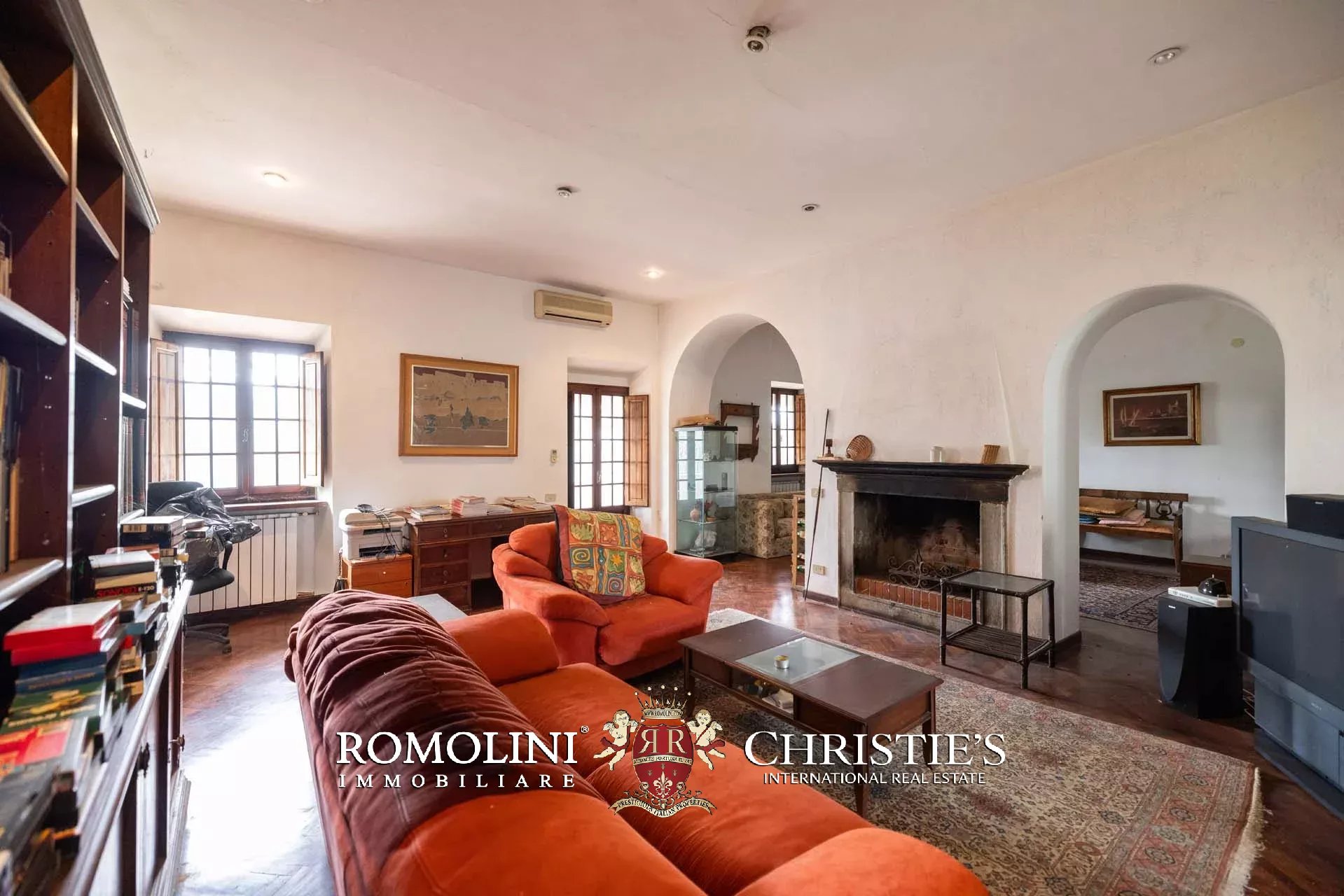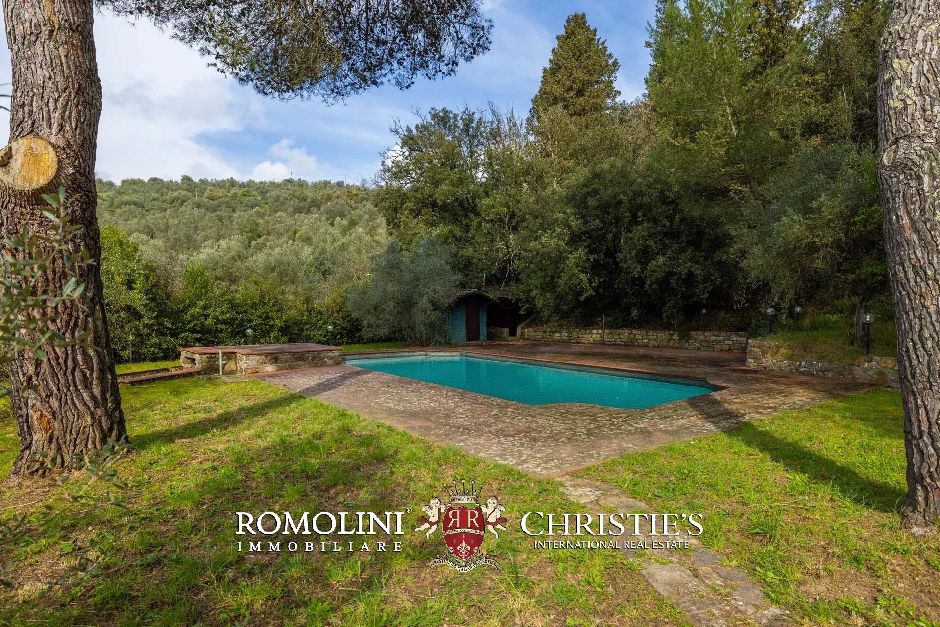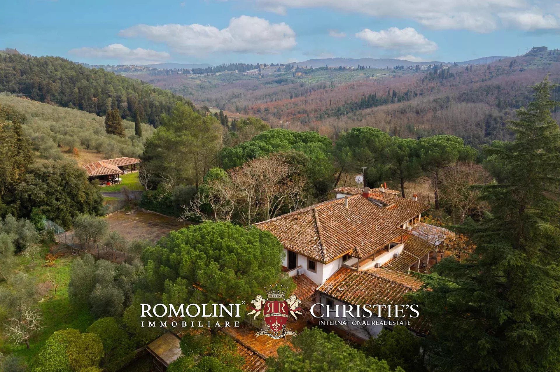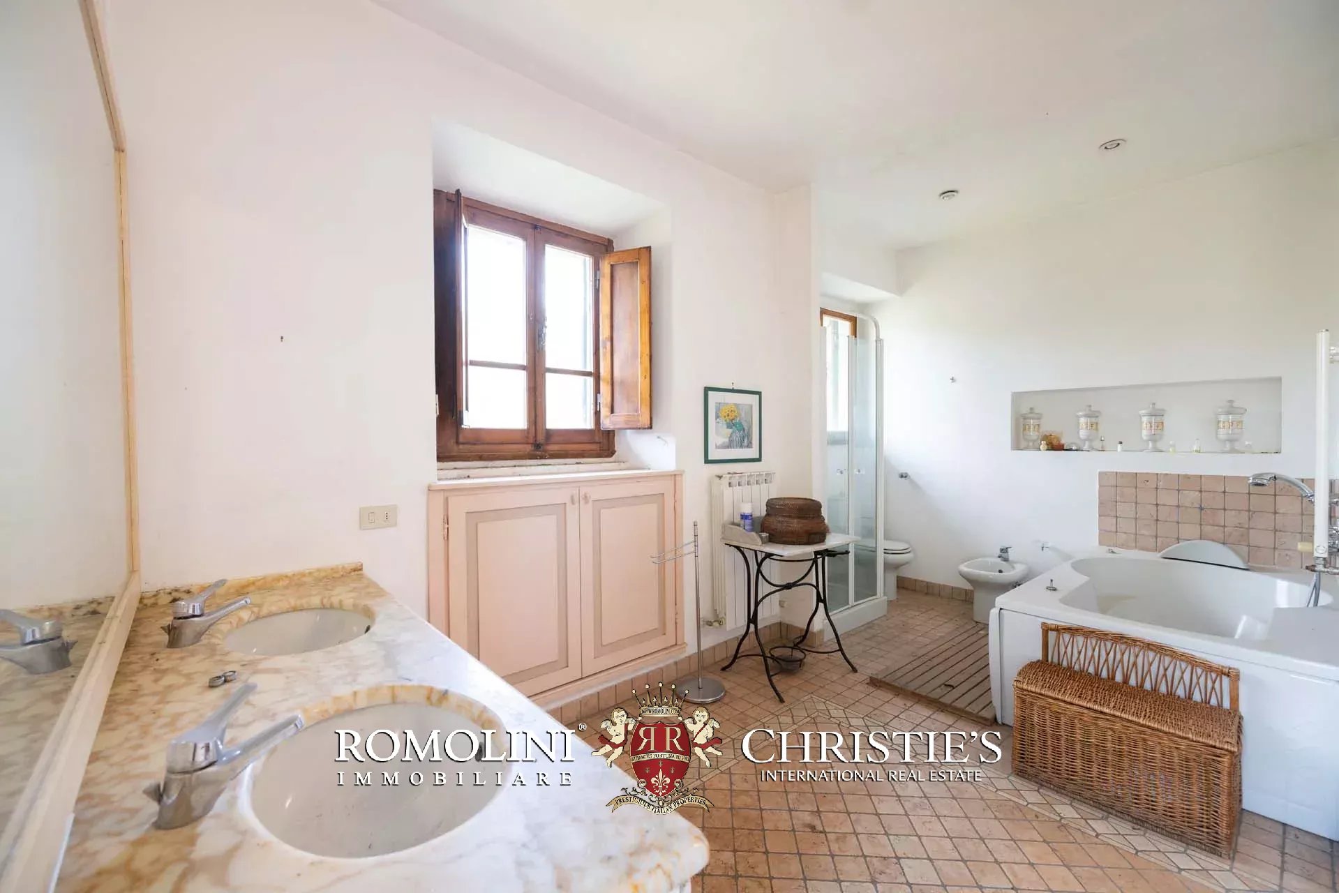 Ricavata da un’antica stazione di posta rinascimentale, la proprietà conserva un carattere autentico e un fascino senza tempo, sviluppandosi su oltre 600 m² di superficie lorda. La villa è circondata da un ampio parco privato di circa 7,7 ettari, composto da prati, uliveti e un bosco che garantiscono massima privacy e un contesto naturale di grande suggestione.