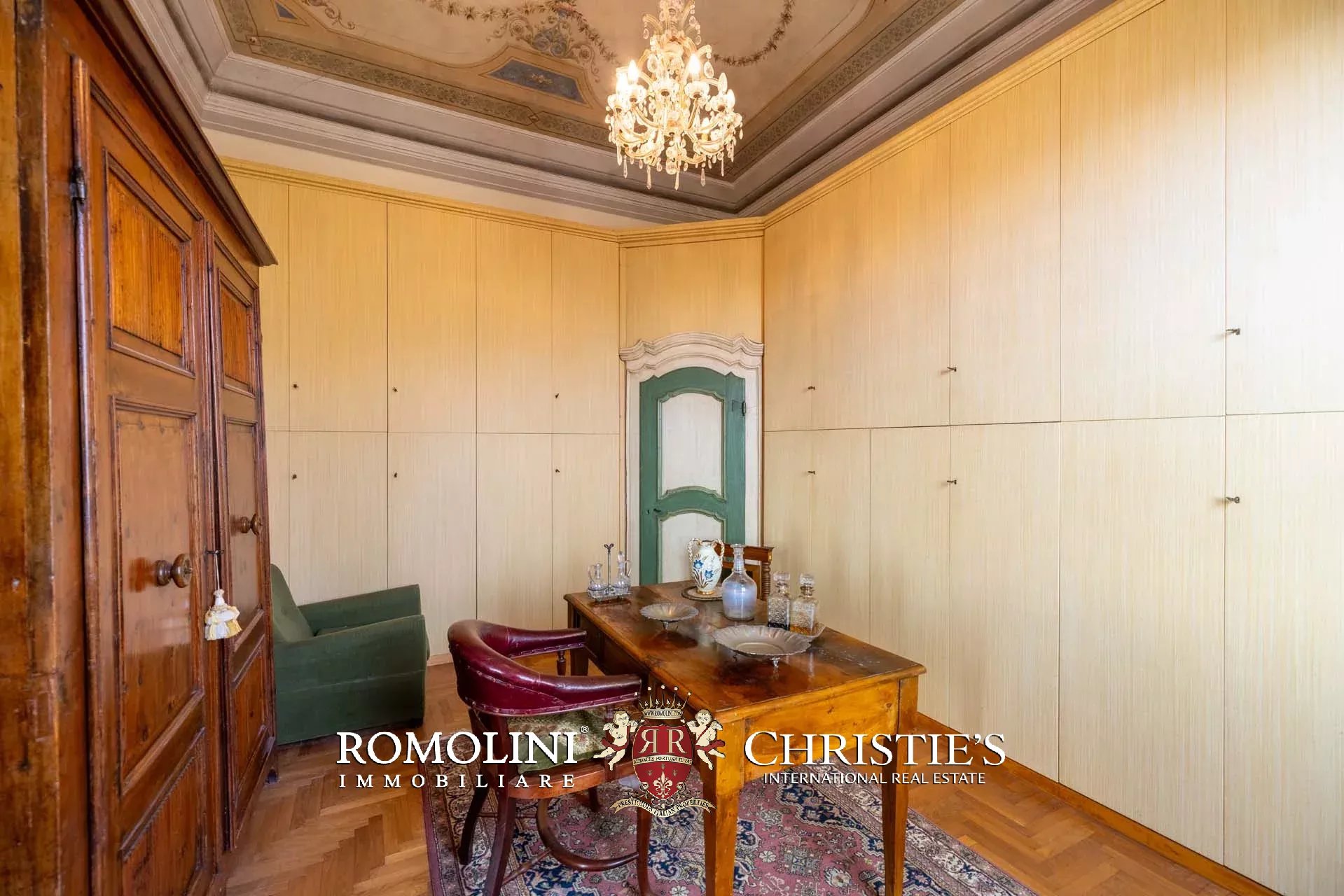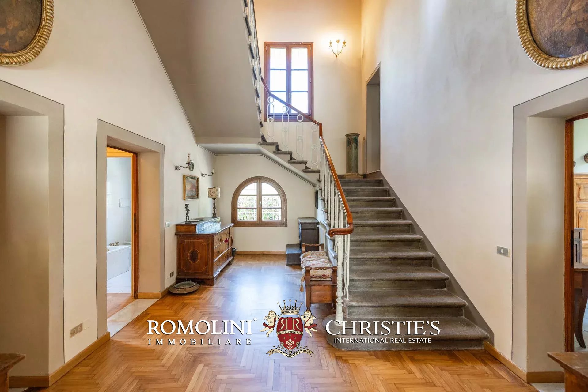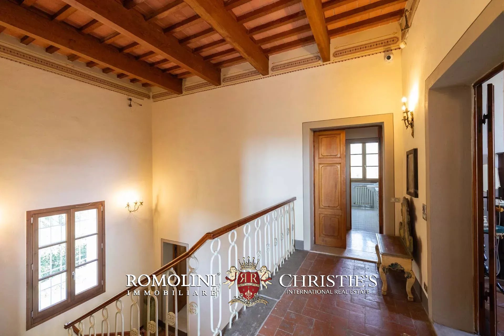 Un’imponente scala conduce ai livelli superiori, dove al piano ammezzato è stata ricavata una comoda zona lavanderia con bagno di servizio. Il primo piano ospita la zona notte, caratterizzata da spazi versatili e di grande fascino: una camera con studio, un ulteriore soggiorno, una seconda camera, una stanza guardaroba (facilmente convertibile in ulteriore camera), un bagno e una luminosa camera padronale.
