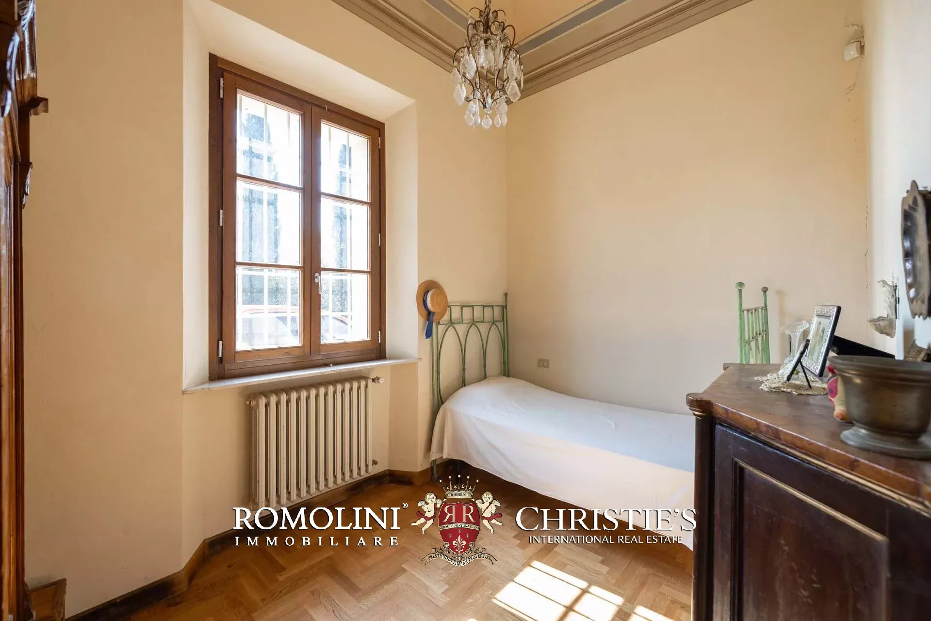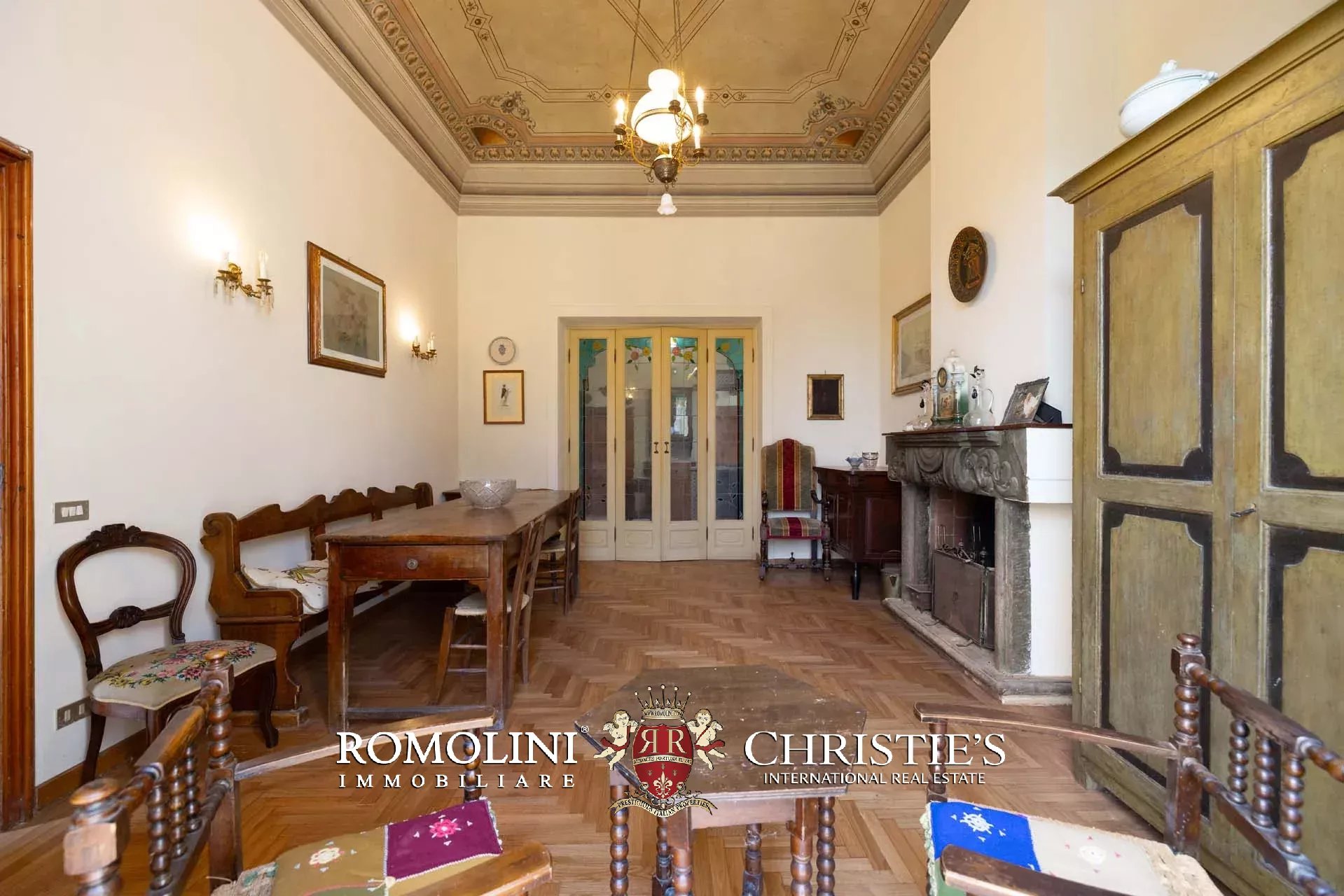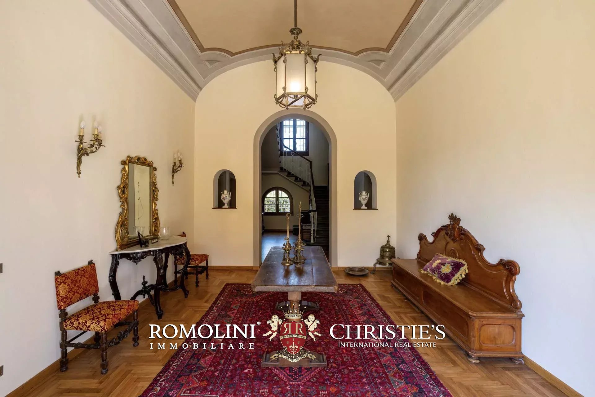 Un’imponente scala conduce ai livelli superiori, dove al piano ammezzato è stata ricavata una comoda zona lavanderia con bagno di servizio. Il primo piano ospita la zona notte, caratterizzata da spazi versatili e di grande fascino: una camera con studio, un ulteriore soggiorno, una seconda camera, una stanza guardaroba (facilmente convertibile in ulteriore camera), un bagno e una luminosa camera padronale.