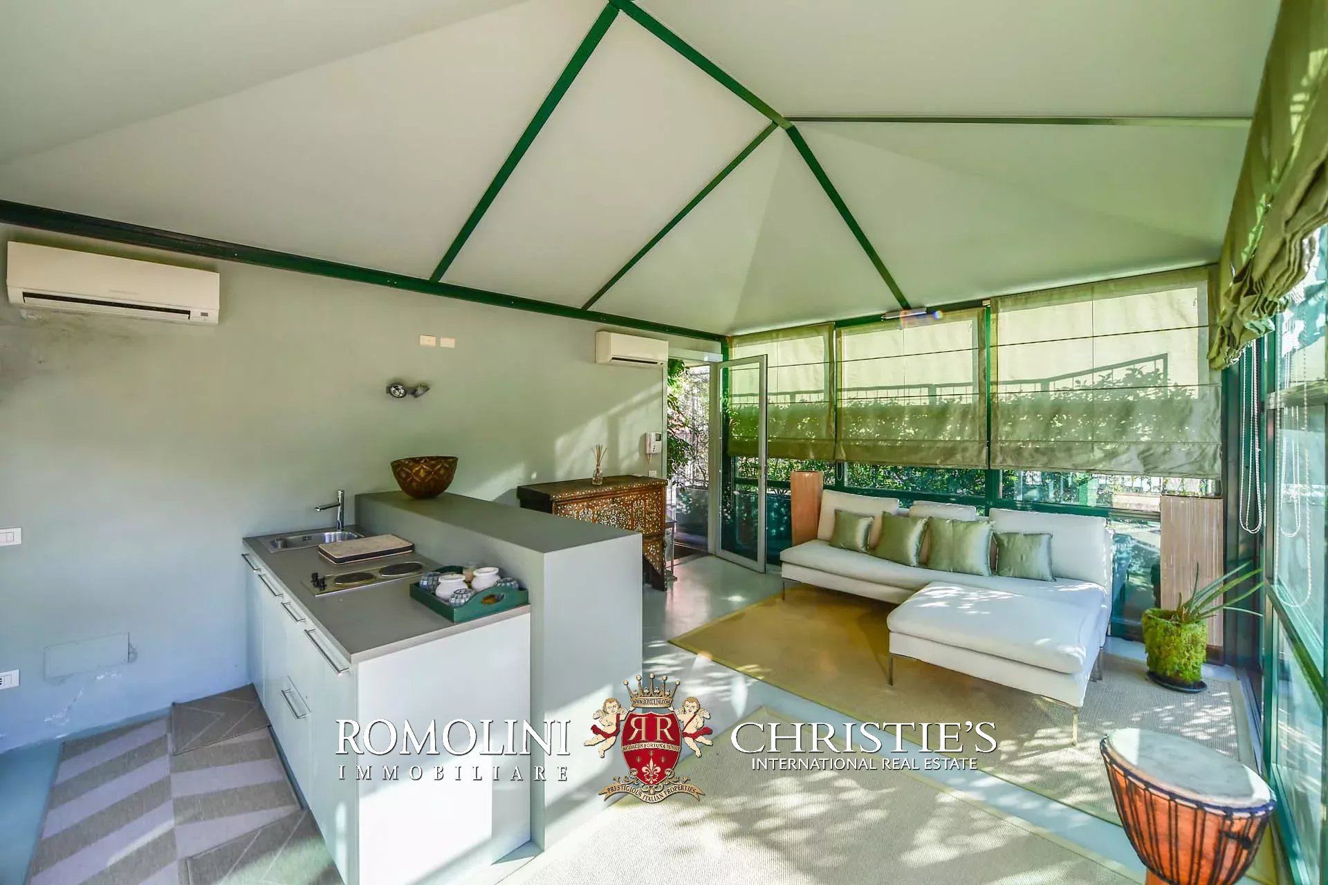 - Unità N° 3 (240 mq, 1 camera e 2 bagni): ampio open-space con camino, due soppalchi (uno attualmente usato come zona fitness), bagno di servizio e ampia camera con bagno en-suite. Da questa unità si accede anche a uno splendido cortile pavimentato privato sul retro (ideale anche per eventi) mentre tramite una scala si ha accesso a una splendida veranda in vetro con salottino e cucina estiva, da cui si accede a un terrazzo piantumato.