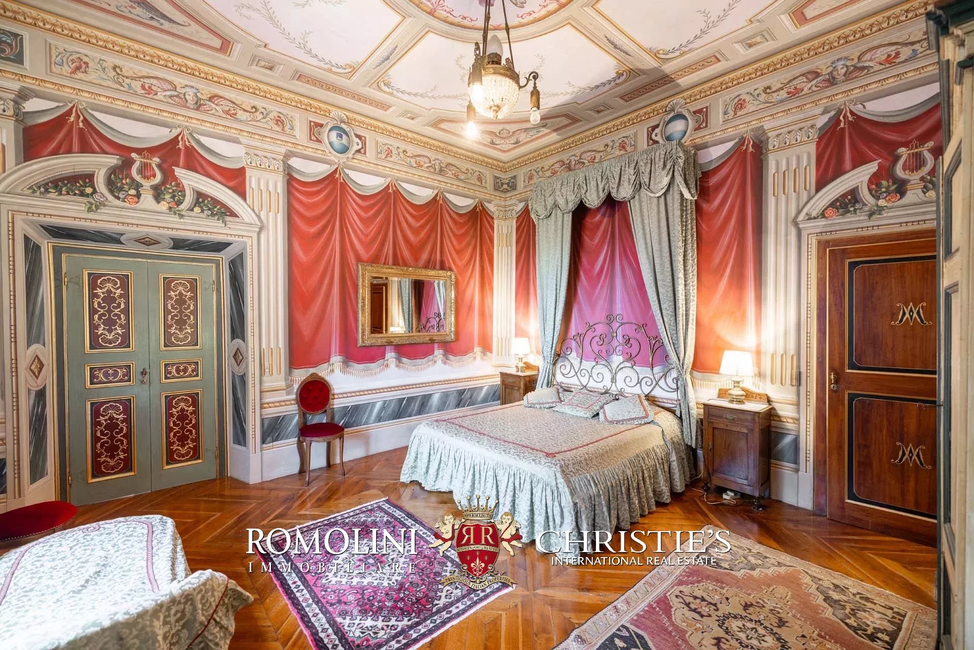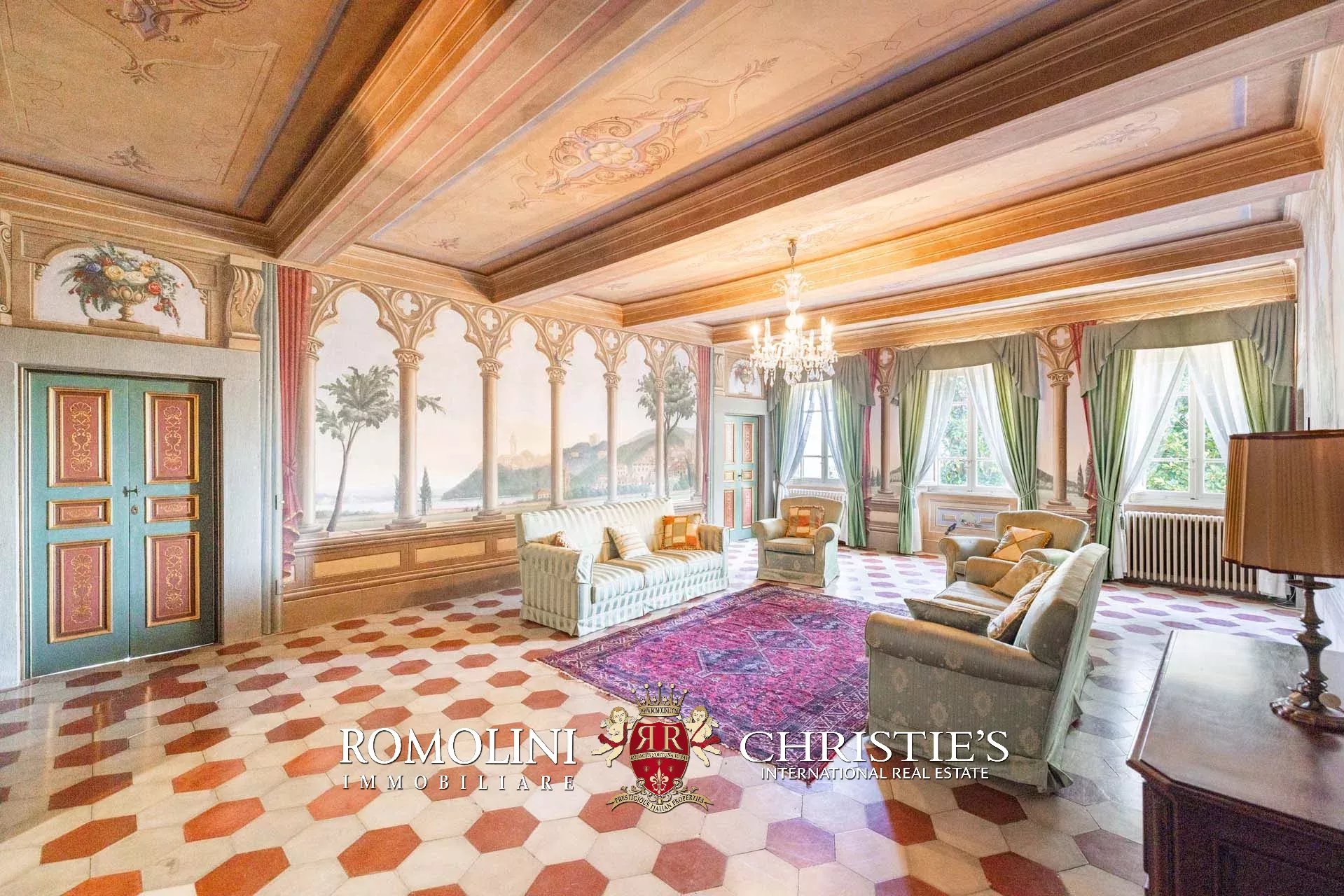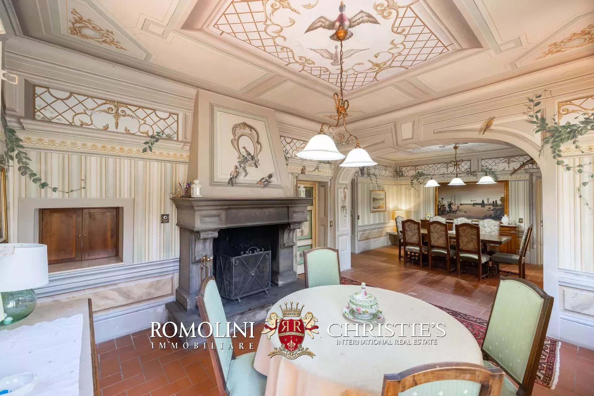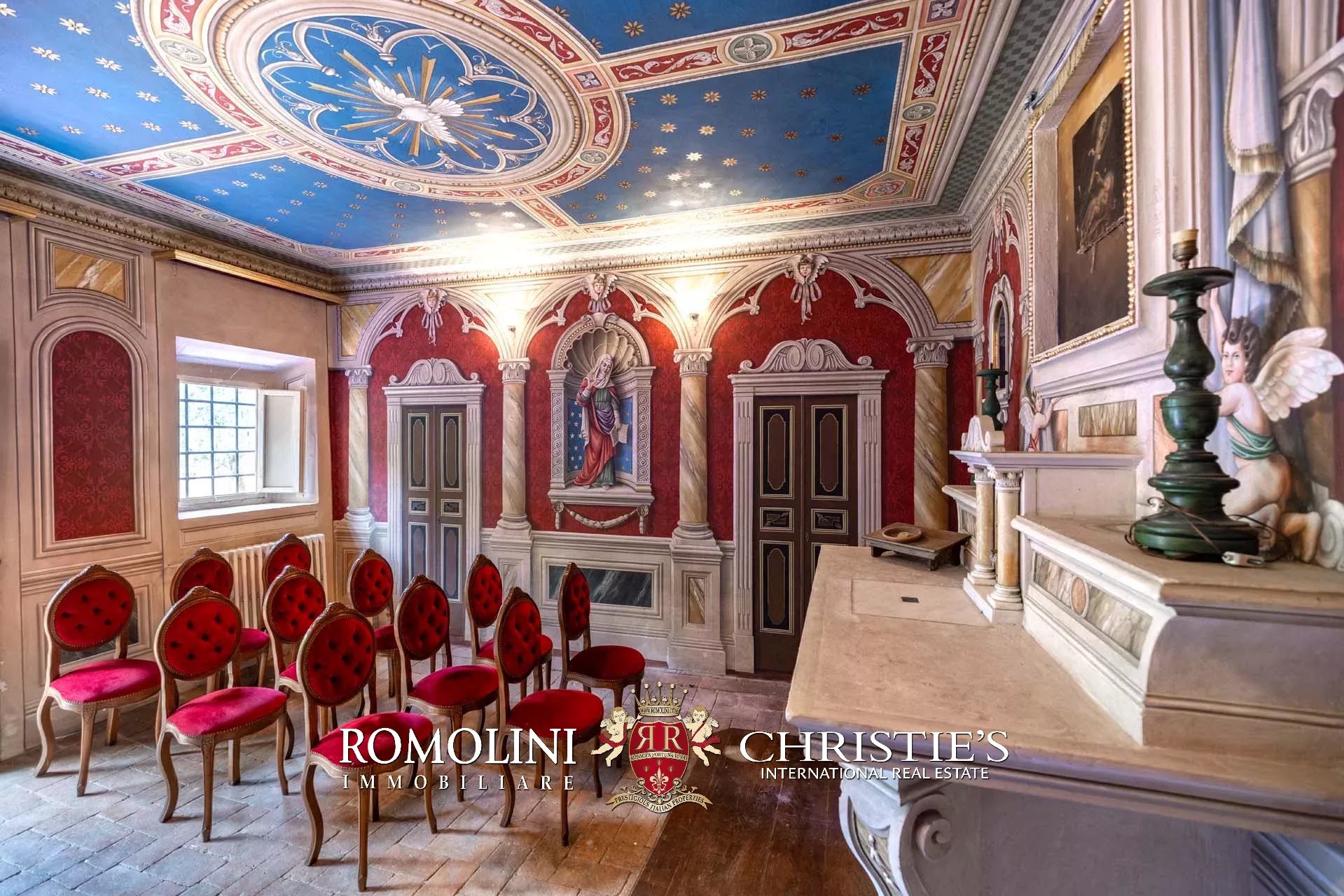 - Piano terra: salone di rappresentanza, salotto, sala da pranzo doppia con portico, cucina, ufficio privato, camera con bagno, cappella gentilizia e lavanderia sottoscala;
