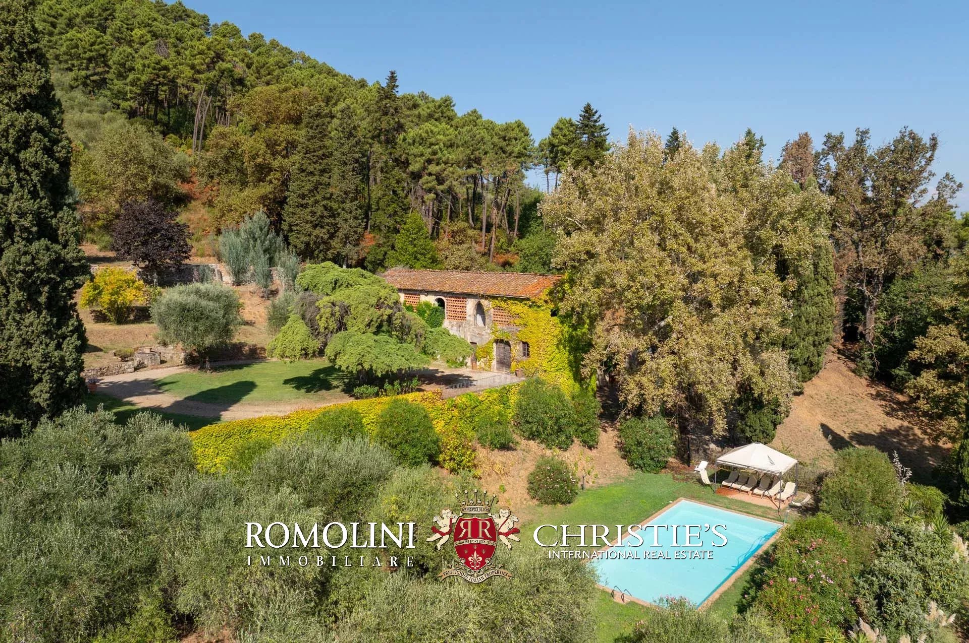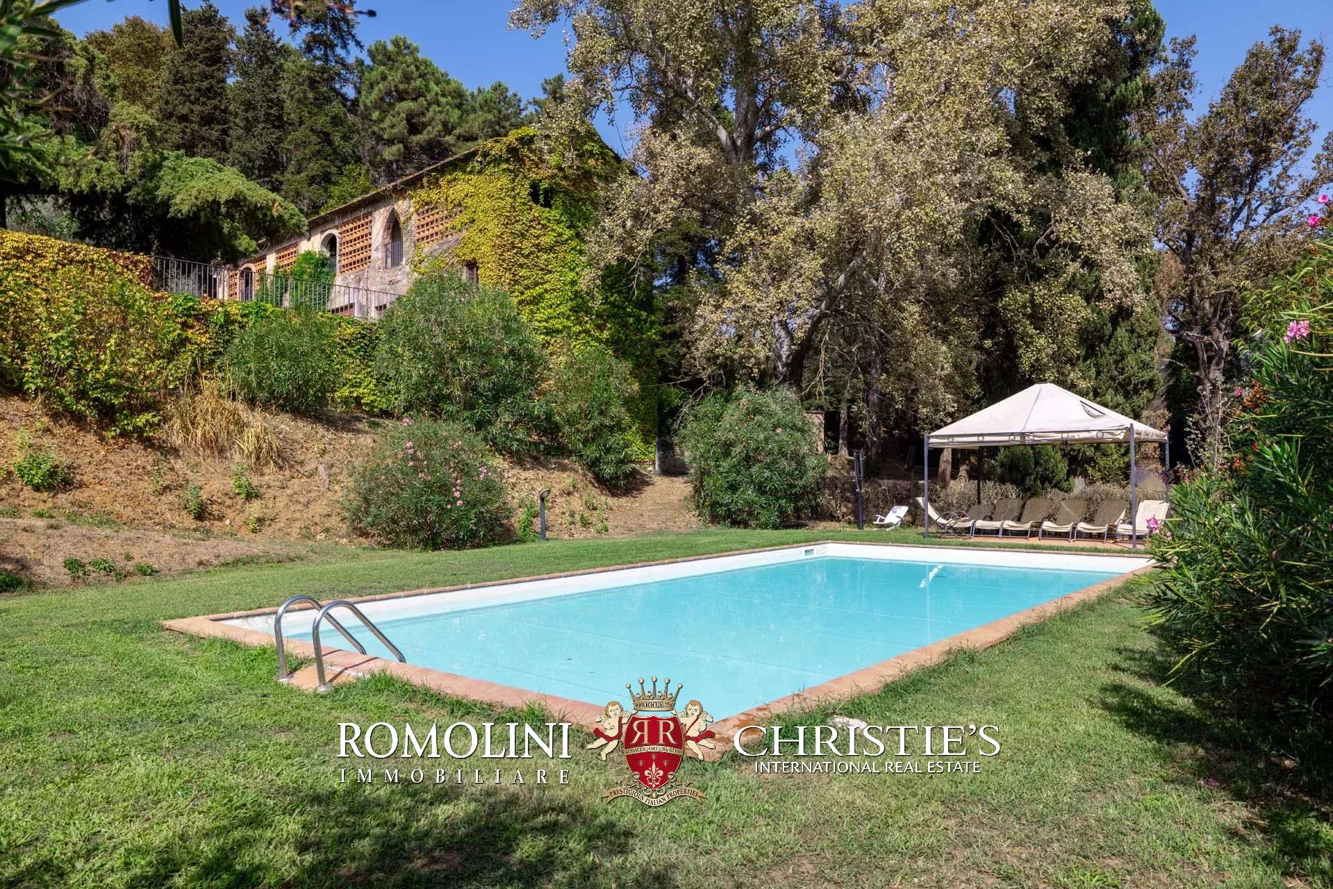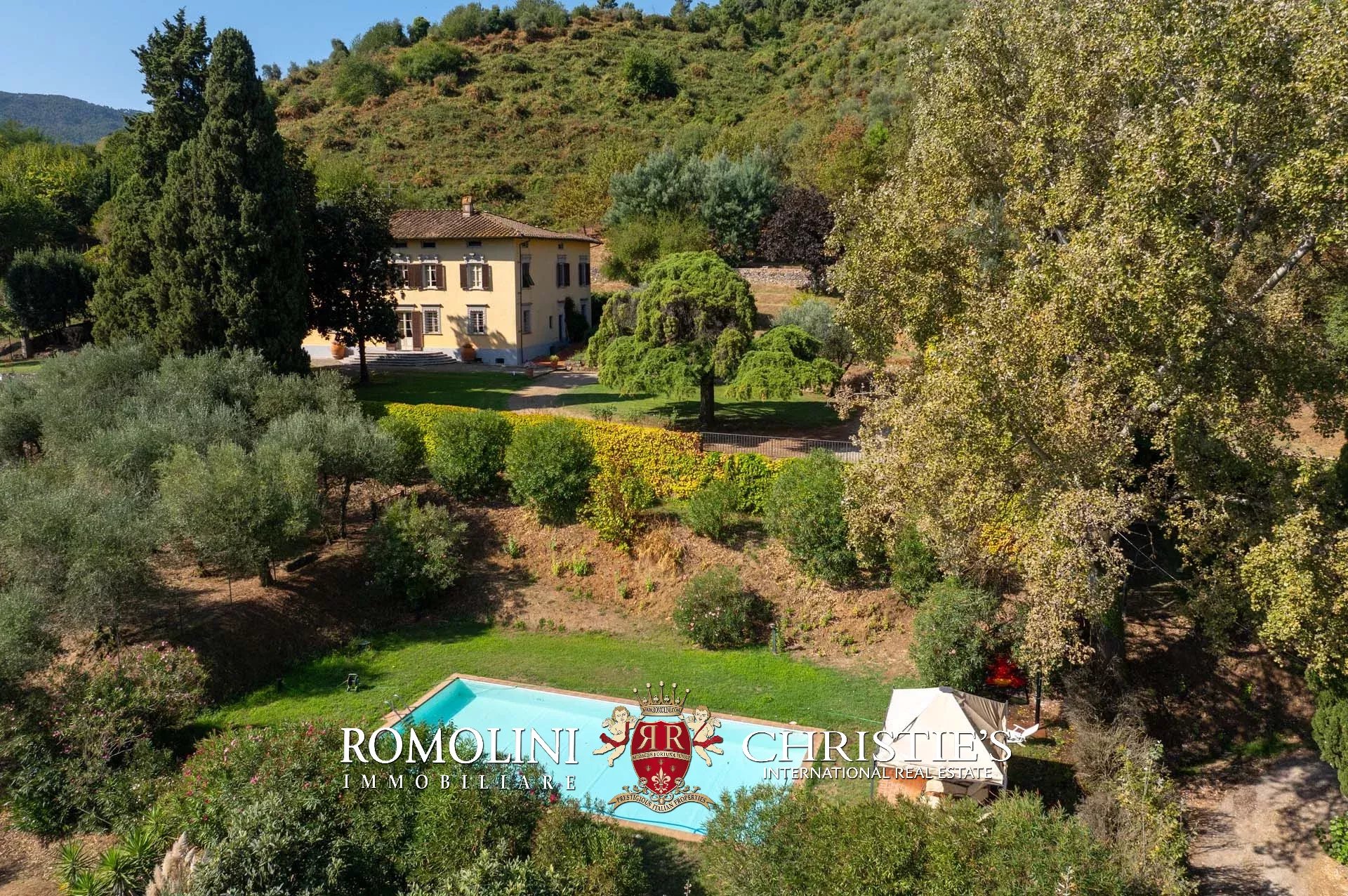 Sulle colline a sud di Lucca, in posizione panoramica non lontano da un piccolo paese, villa d’epoca con parco in vendita. L’edificio è stato finemente ristrutturato e presenta all’interno dei bellissimi dipinti recuperati e restaurati in ogni loro parte. Gli annessi da ristrutturare potrebbero essere convertiti in dependance o zone di servizio. Nel parco trova posto la piscina 12 × 6 m oltre a diverse piante di ulivo.