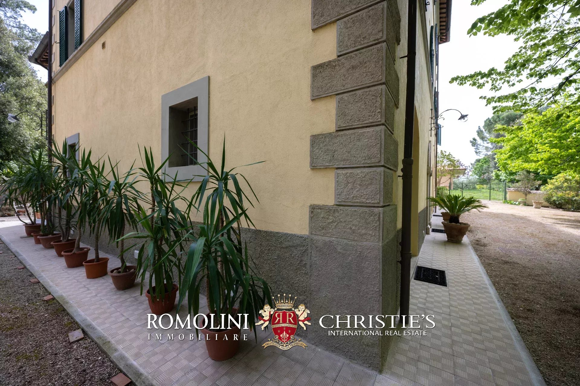 L'esterno è tipico delle ville di campagna della zona, intonacata di giallo e ingentilita dalle persiane in legno in ottimo stato, con rifiniture ed angolari dell’edificio in pietra serena locale.