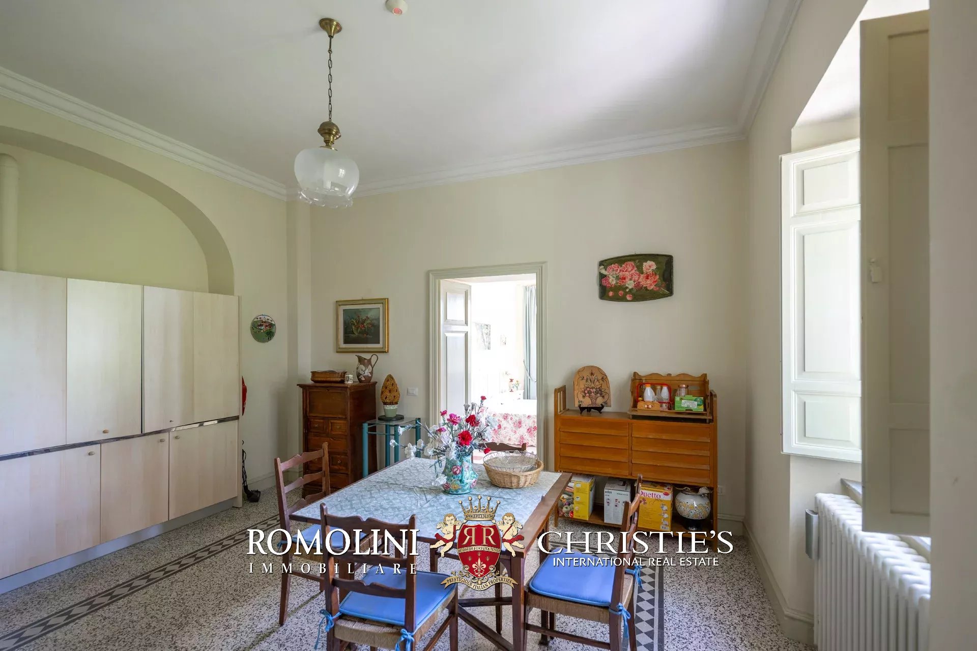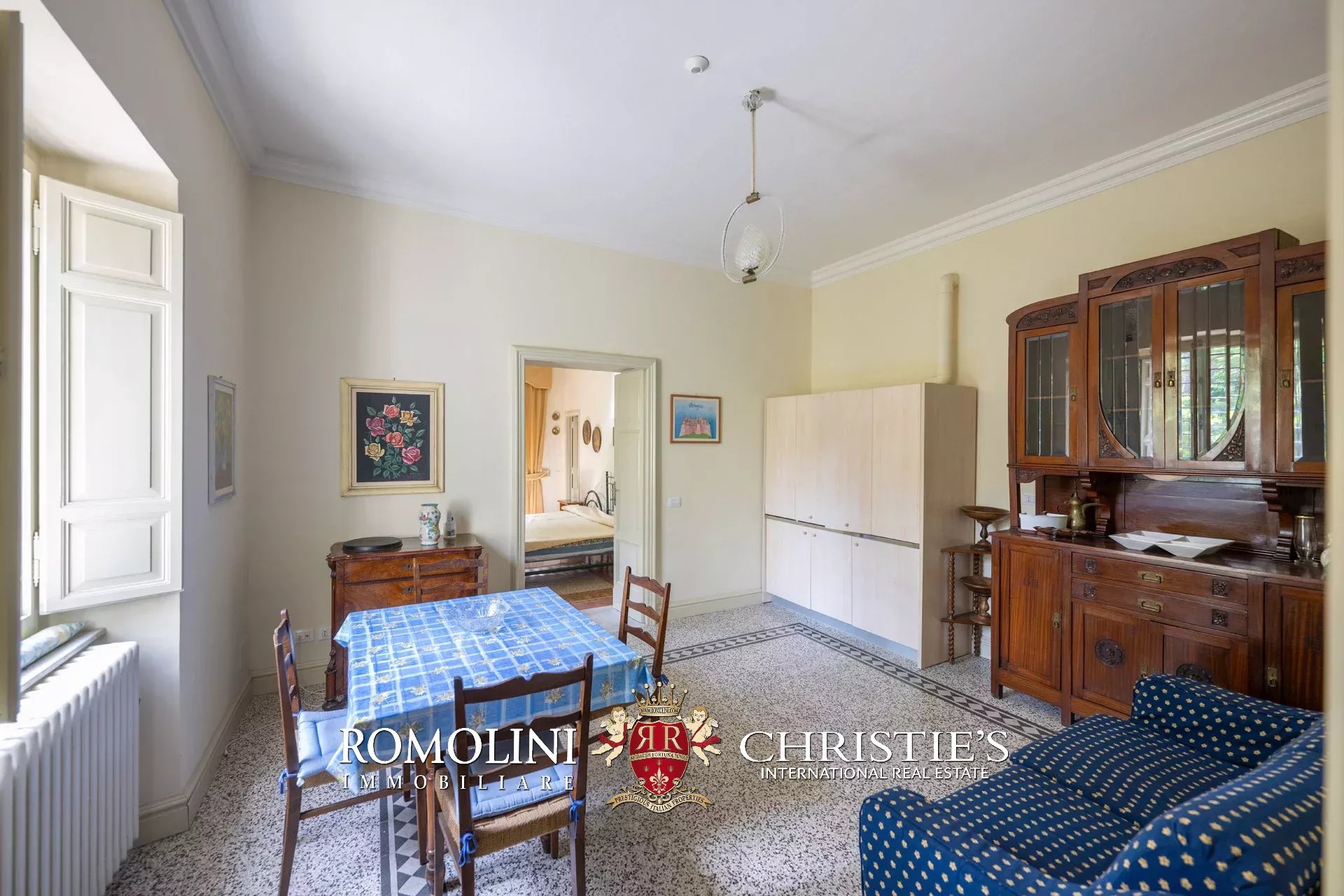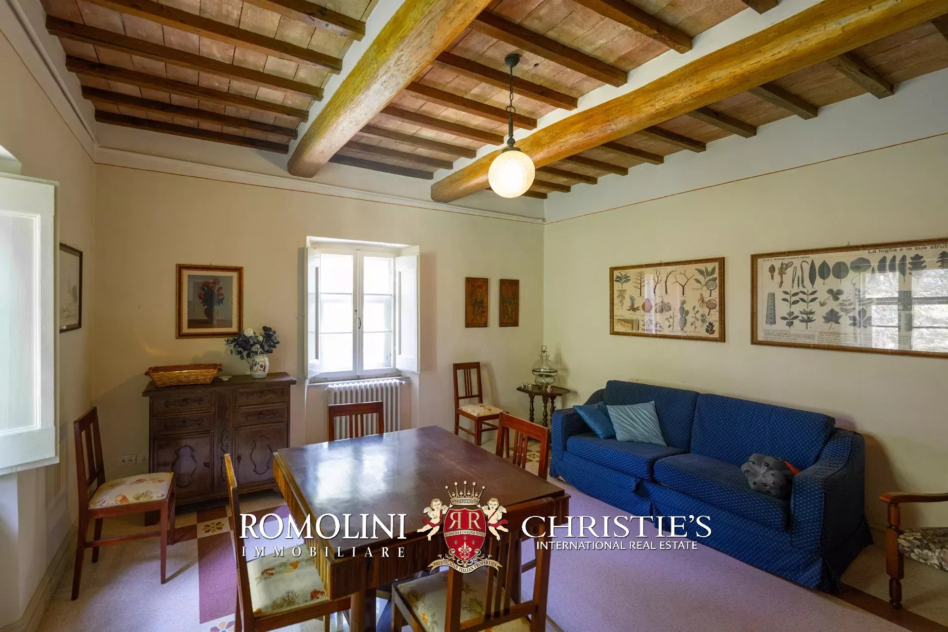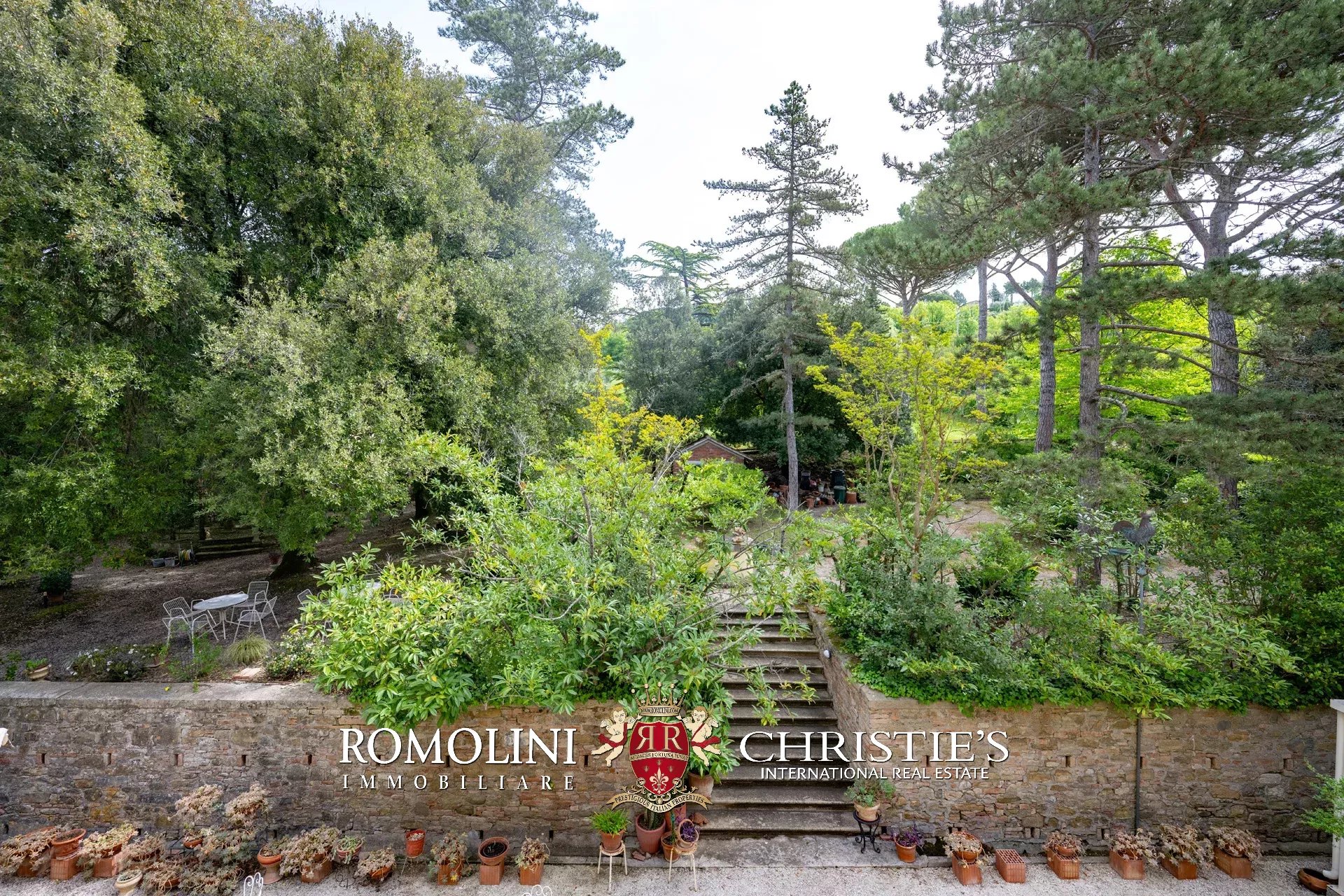 In un piccolo borgo dei pressi di Perugia, in una tranquilla zona residenziale, villetta storica con parco in vendita. La proprietà (600 m²), in ottime condizioni, è stata divisa in otto unità immobiliari indipendenti da destinare agli ospiti (9 camere) ma si potrebbe facilmente ricostituire un’unica abitazione privata con pochi lavori. Attorno alla villa si stende un parco di 6.800 m² con alberi ombreggianti.