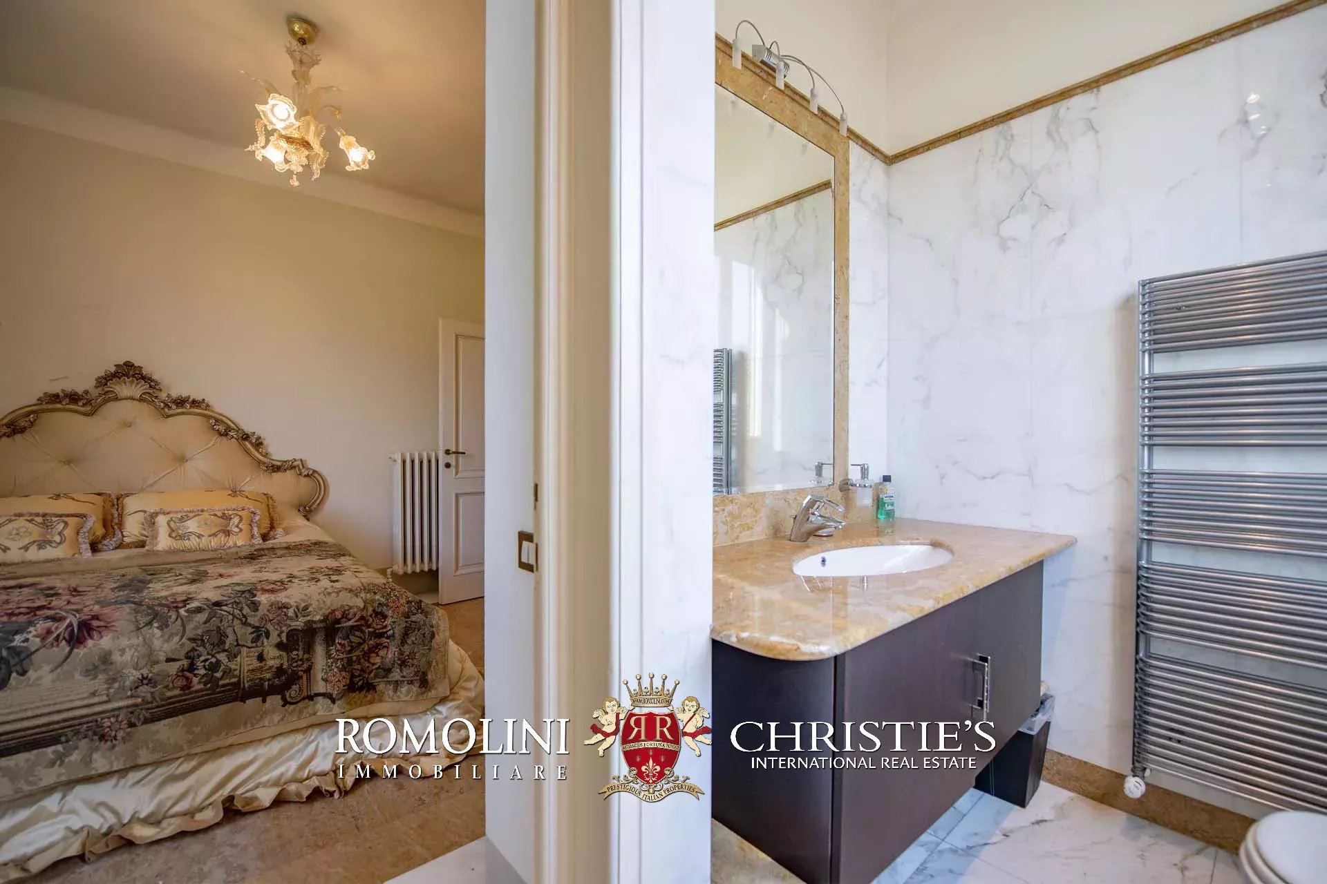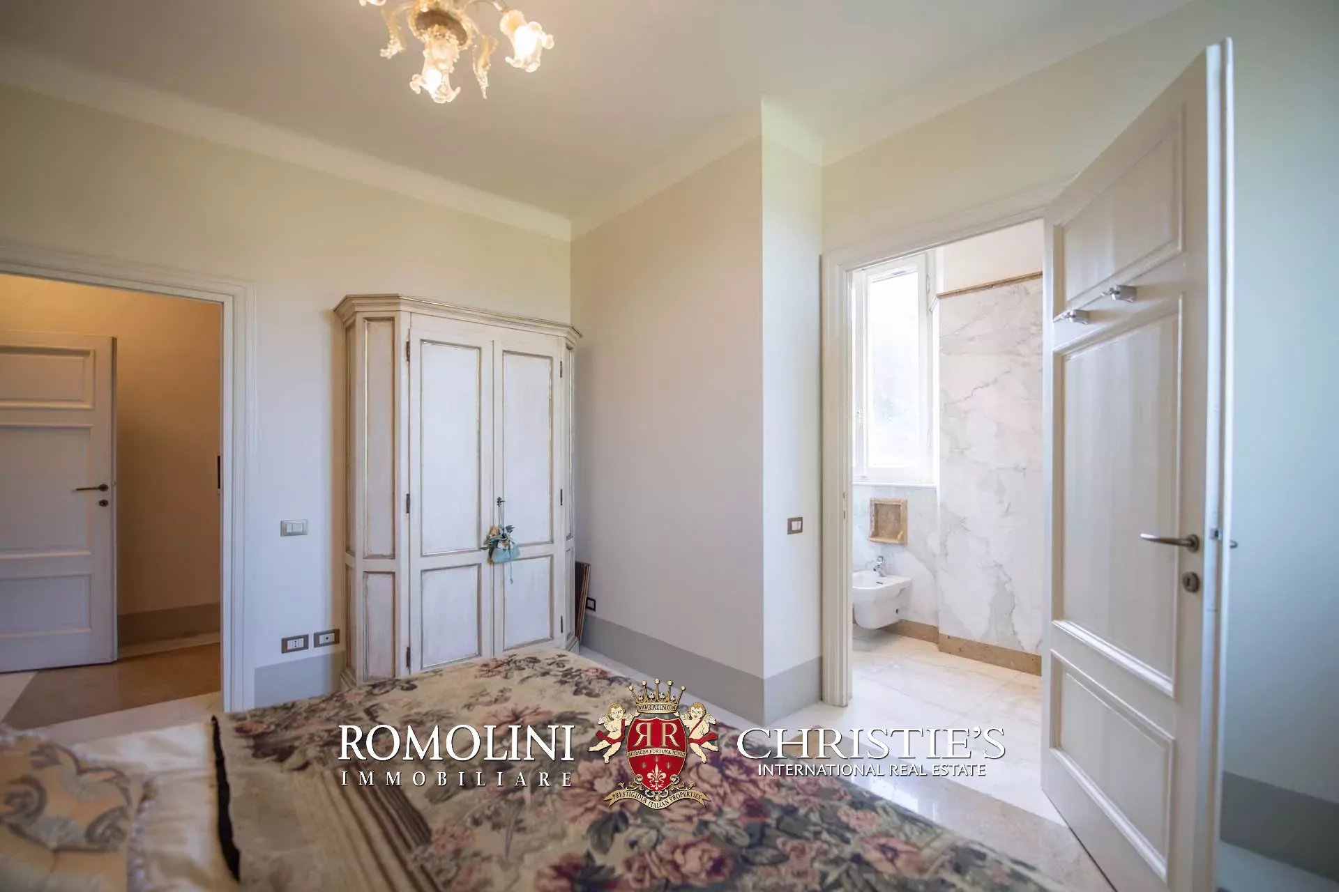 Salendo al primo piano si raggiunge la zona notte, composta di quattro bellissime camere matrimoniali. Tre di queste hanno il proprio bagno privato, mentre la quarta può contare su una vasca idromassaggio Jacuzzi. Tutti i bagni sono rivestiti in marmo, in modo da integrarsi con il resto della villa e rispettare l’aspetto originale dell’edificio.