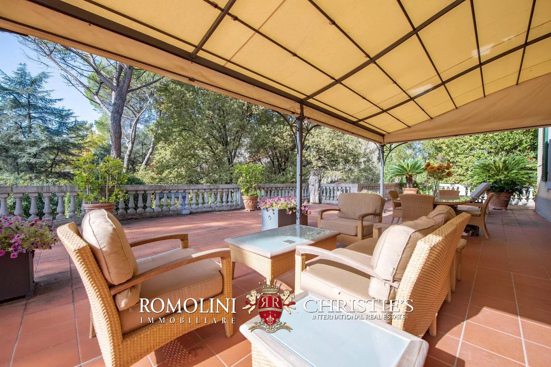 La villa è immersa in un parco di 6.800 m², ben curato e decorato con fiori e piante variopinte. L’edificio è circondato da una pavimentazione in cotto originale, che include anche una veranda per rilassarsi all’aperto, un forno e un barbecue per piacevoli momenti all’aperto in compagnia.