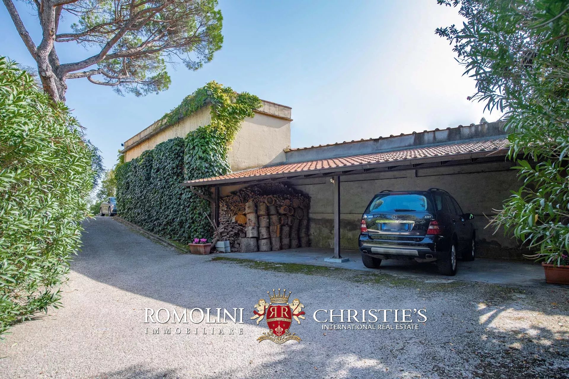 Il viale di accesso è stato ristrutturato e pavimentato con gli stessi materiali usati nella ristrutturazione di Piazza Napoleone a Lucca, ed è servito da due cancelli automatici. Qui si trovano anche due posti auto all'aperto.