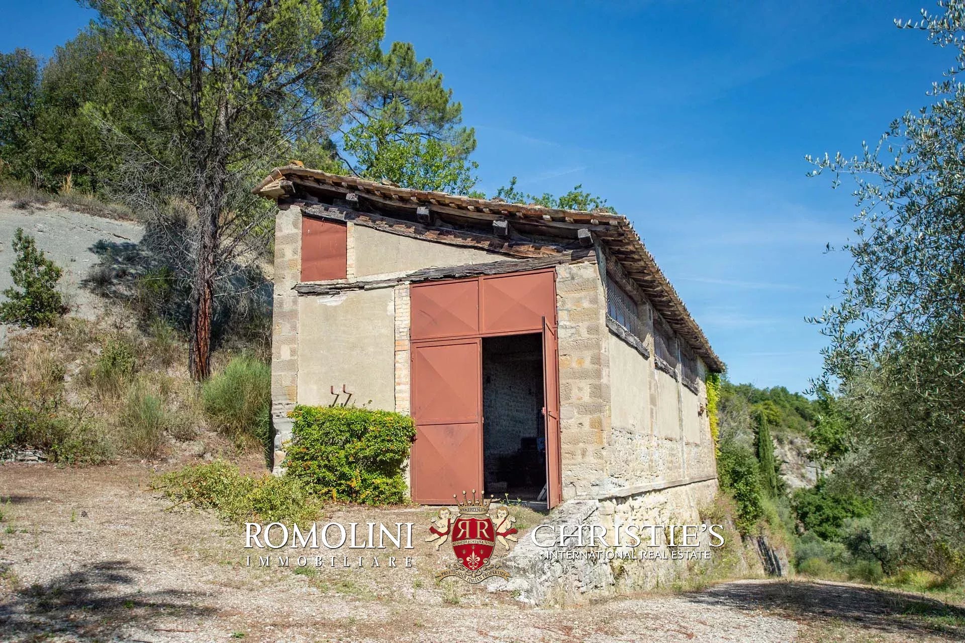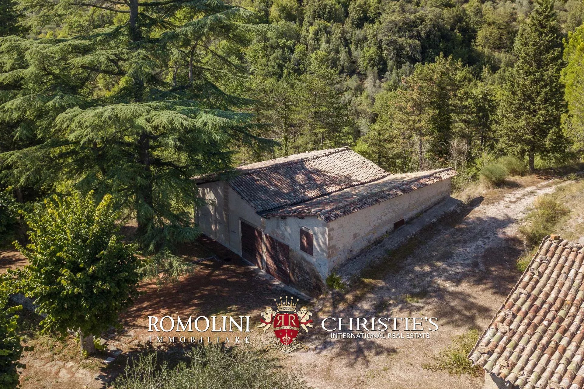 La villa è circondato da 57,5 ettari di terreno coperti in prevalenza da bosco misto (26,0 ha), seguito da pascoli (14,6 ha), uliveto (8 ha) e seminativo (7 ha). Attorno alla villa si potrebbe creare un comodo giardino dove rilassarsi all’aria aperta nel piacevole clima estivo dell’Umbria.