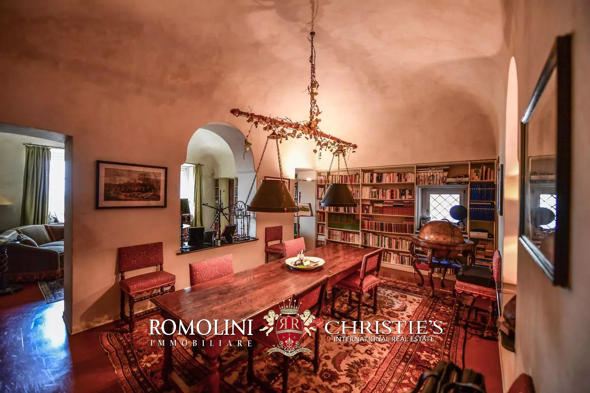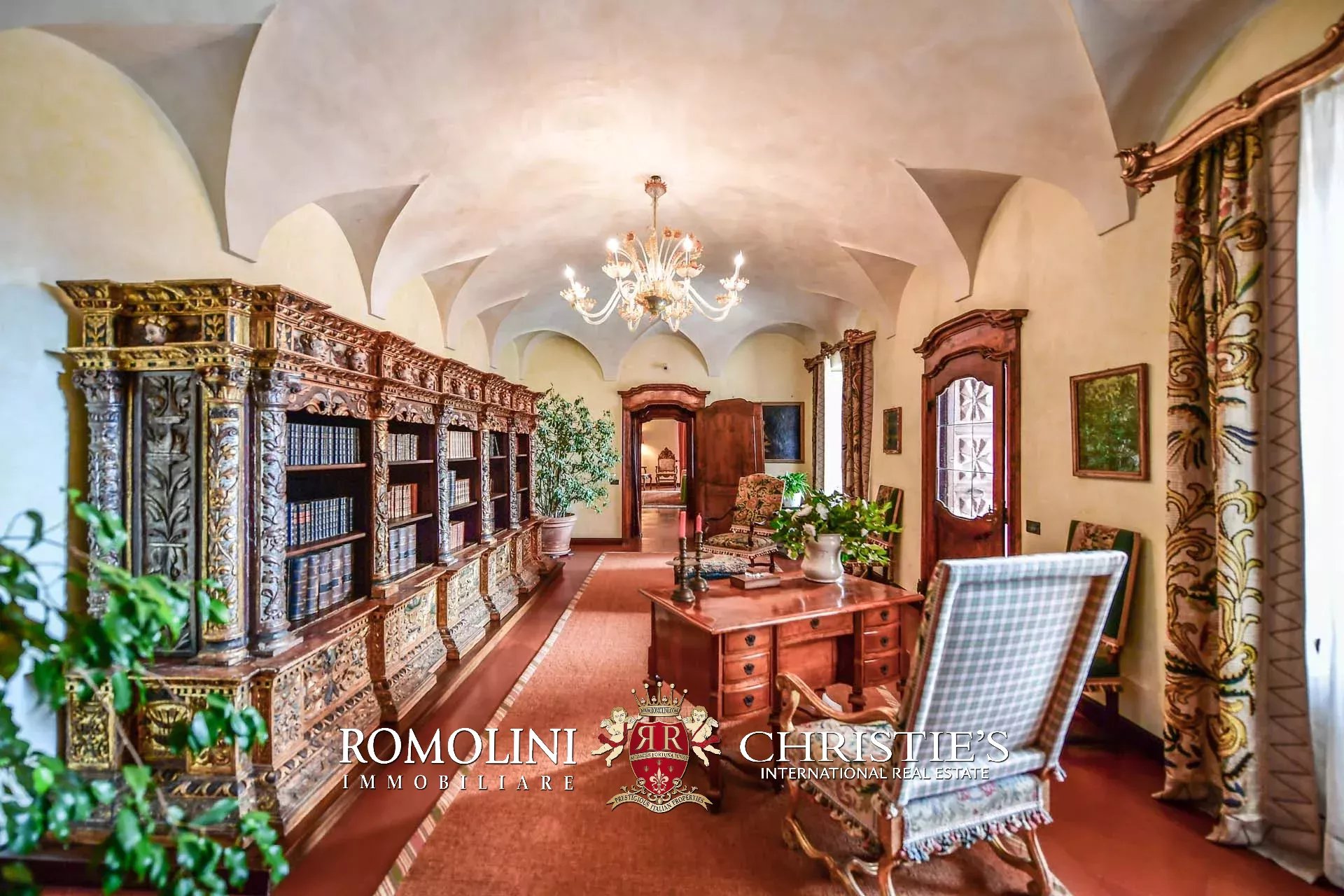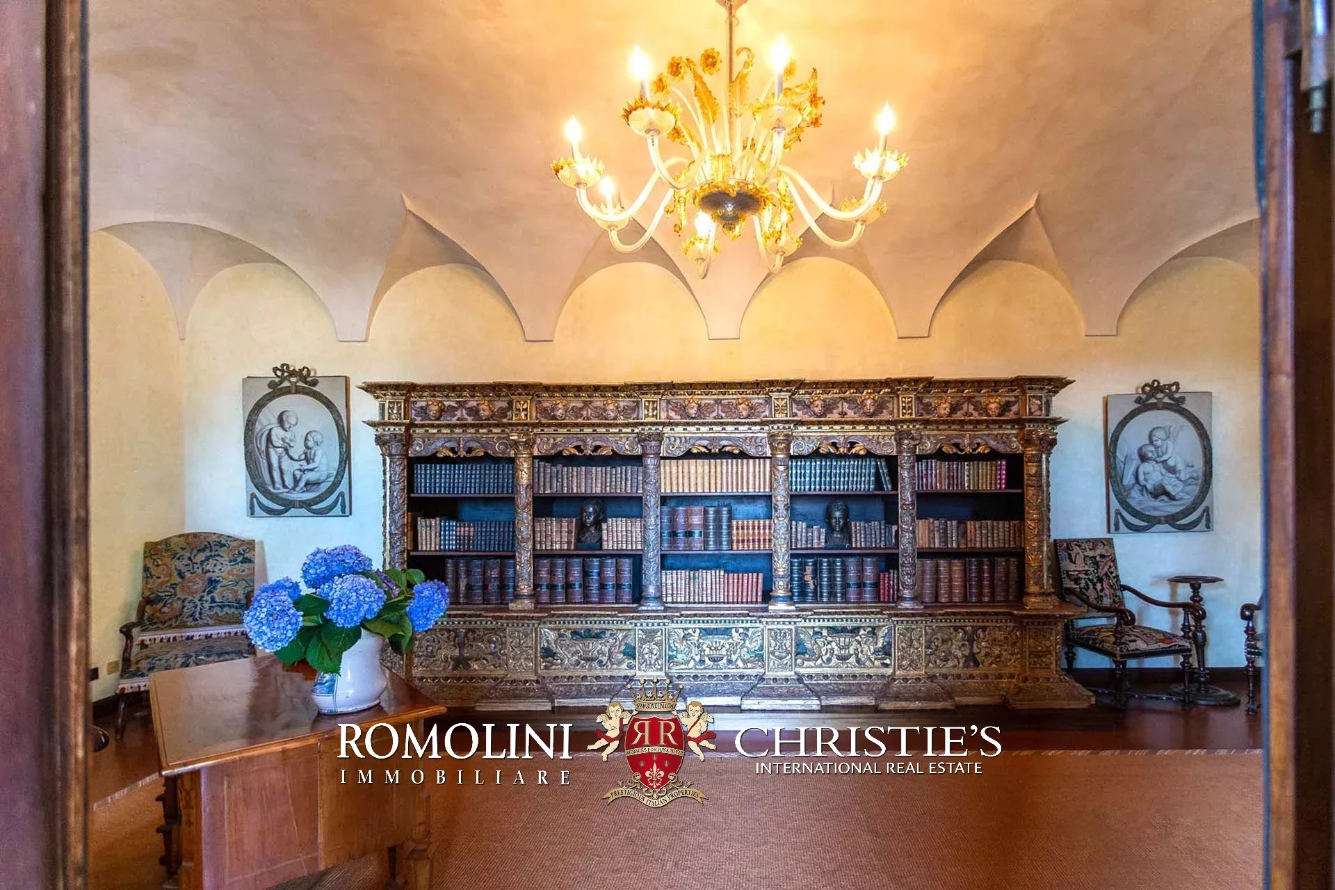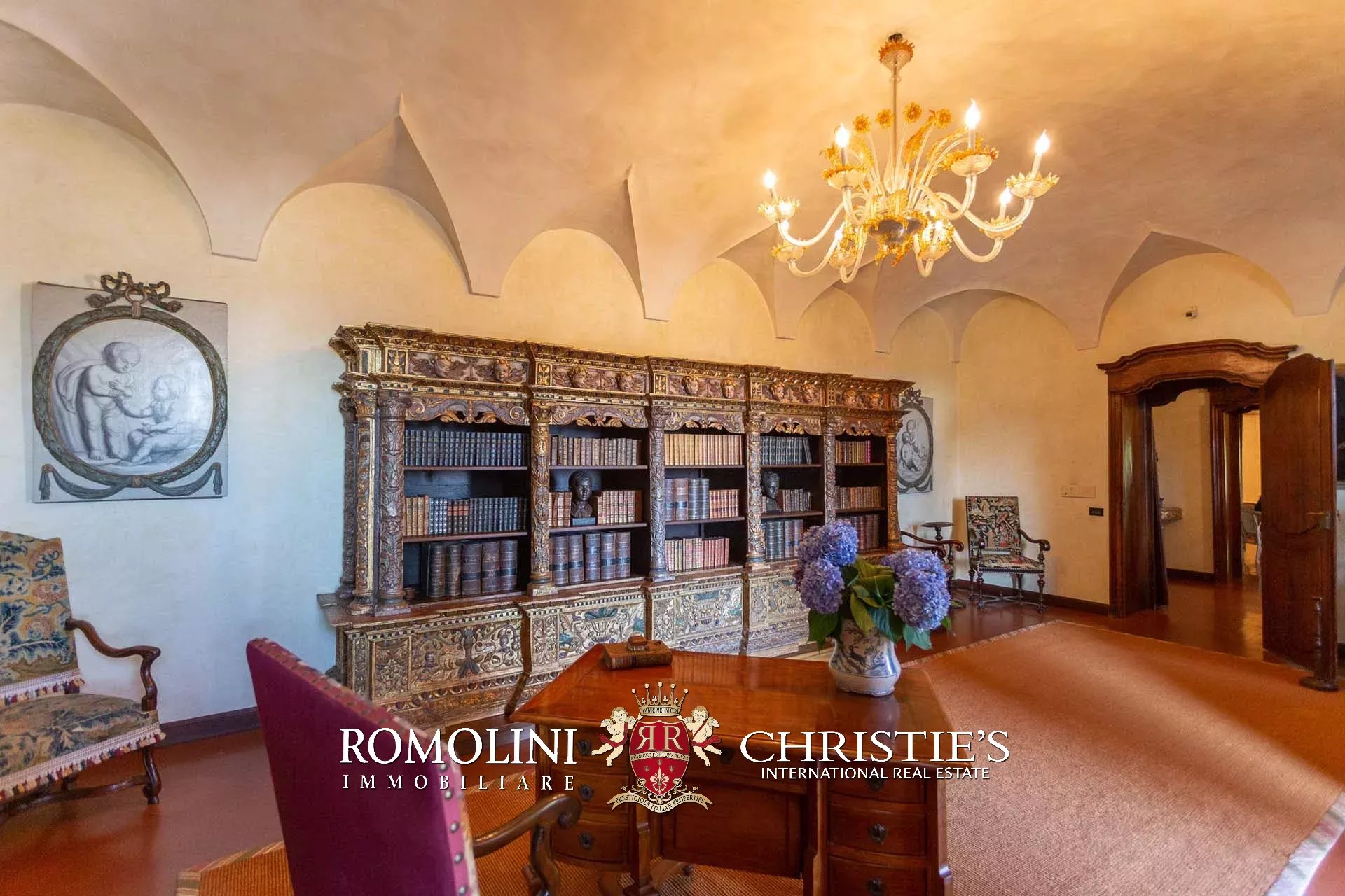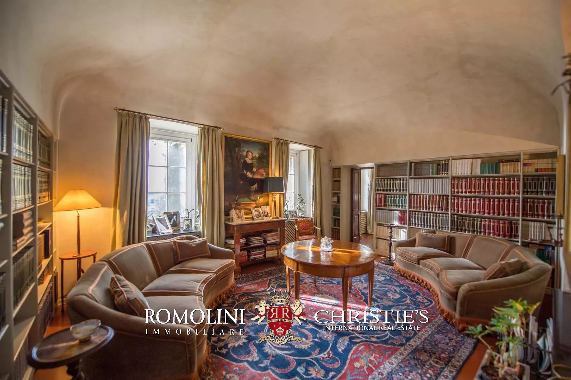 - Piano terra: ampia zona living con saloni, soggiorno con camino, sala da pranzo, studio, libreria, cucina e bagno di servizio;