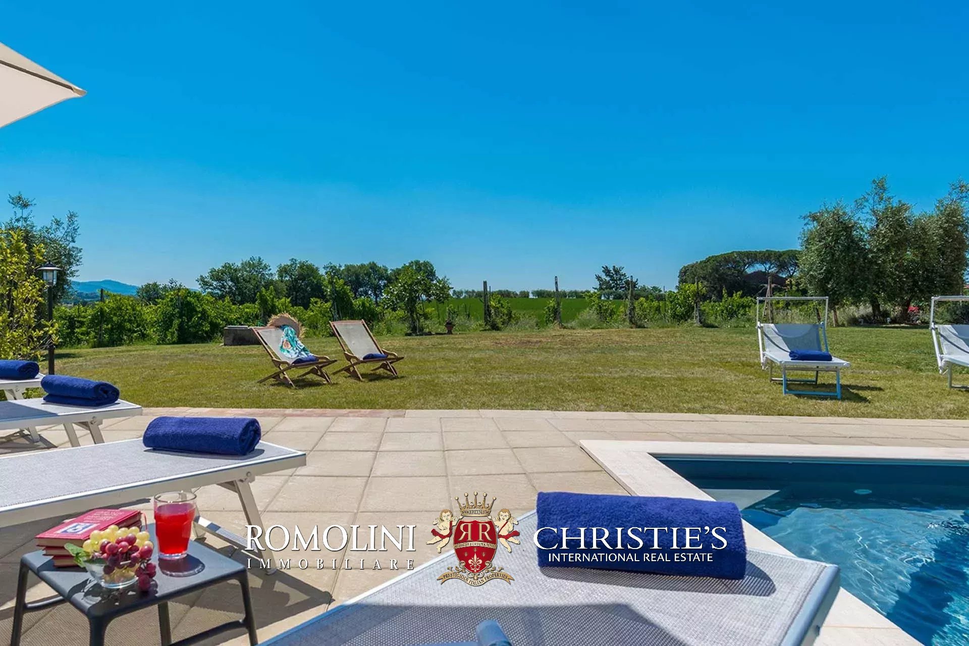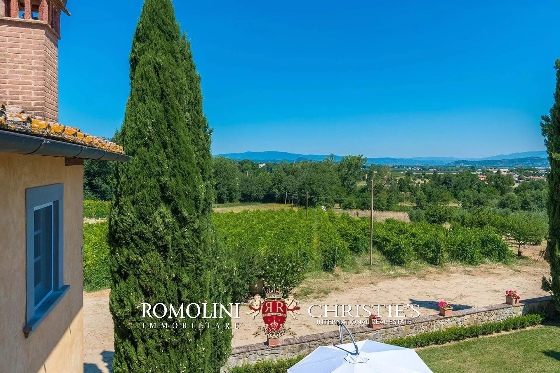 A metà strada tra Monte San Savino e Arezzo, nella campagna toscana della Valdichiana, troviamo questa villa di lusso circondata dai vigneti (2.7 ha) e a breve distanza da un piccolo paese con tutti i servizi. L’edificio (465 m²) ospita attualmente 6 camere e viene affittato in estate con buoni risultati, anche grazie al giardino ben curato e alla piscina 12 × 4 m che offre un piacevole spazio di relax all’aperto.