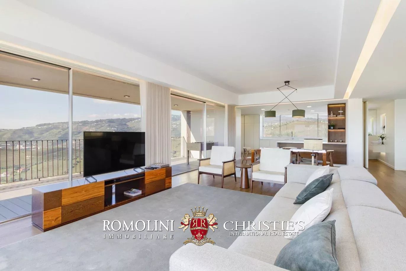 La zona giorno al piano terra è illuminata dalla luce naturale che filtra attraverso ampie finestre e balconi, che non solo rischiarano lo spazio ma mostrano anche il paesaggio mozzafiato del Douro. A questo spazio è collegata un'elegante cucina dotata di elettrodomestici Bosch di alta gamma, che crea un'area vasta e pratica di oltre 80 metri quadrati. Adiacente alla piscina, il piano terra ospita anche uno spogliatoio con accesso diretto all'esterno e una lavanderia.