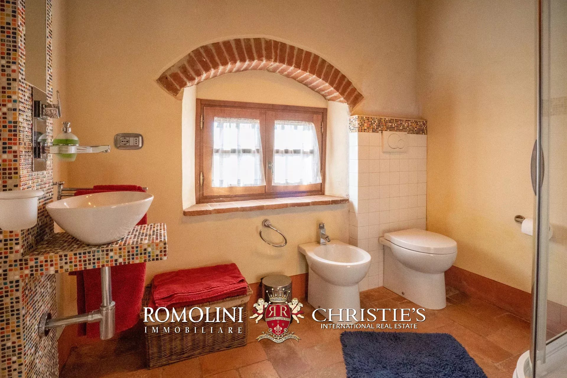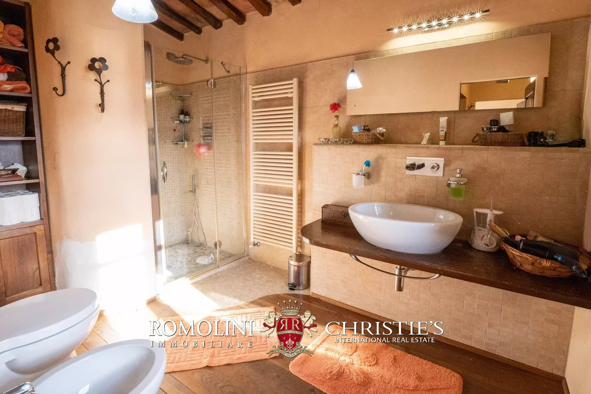 Nella campagna toscana, non lontano dal borgo medievale di Castiglion Fiorentino, questa villa del XVIII secolo è stata finemente ristrutturata e offre 287 m² di superficie abitabile con tre camere. La presenza di un rudere ristrutturabile permette di ampliare la superficie abitabile e di creare ulteriori camere per l’avvio di un’attività ricettiva. Completano la proprietà 8 ettari di terreno con 550 ulivi e piccolo vigneto.