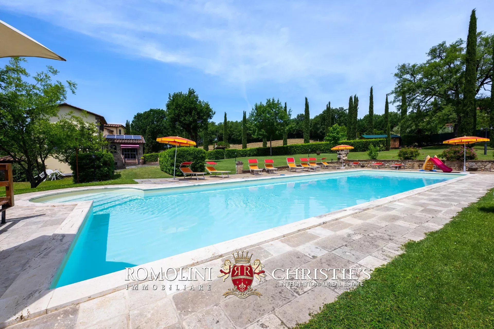 Al confine tra Toscana e Umbria, in posizione aperta e soleggiata nei pressi di Citerna, ville ristrutturate con parco in vendita. L’immobile si compone di due grandi edifici (quasi 800 m² in totale) che ospitano ben 14 camere per gli ospiti: la proprietà è attiva nel circuito turistico ricettivo. All’esterno, il parco di 10.000 m² che circonda gli edifici ospita due piscine (una per ogni villa) e ampi spazi per rilassarsi all’aria aperta.