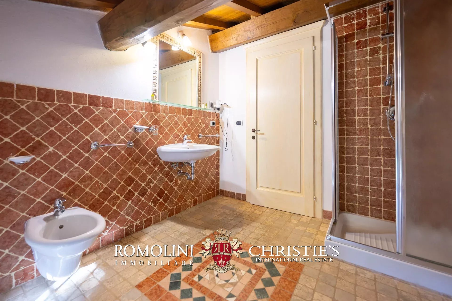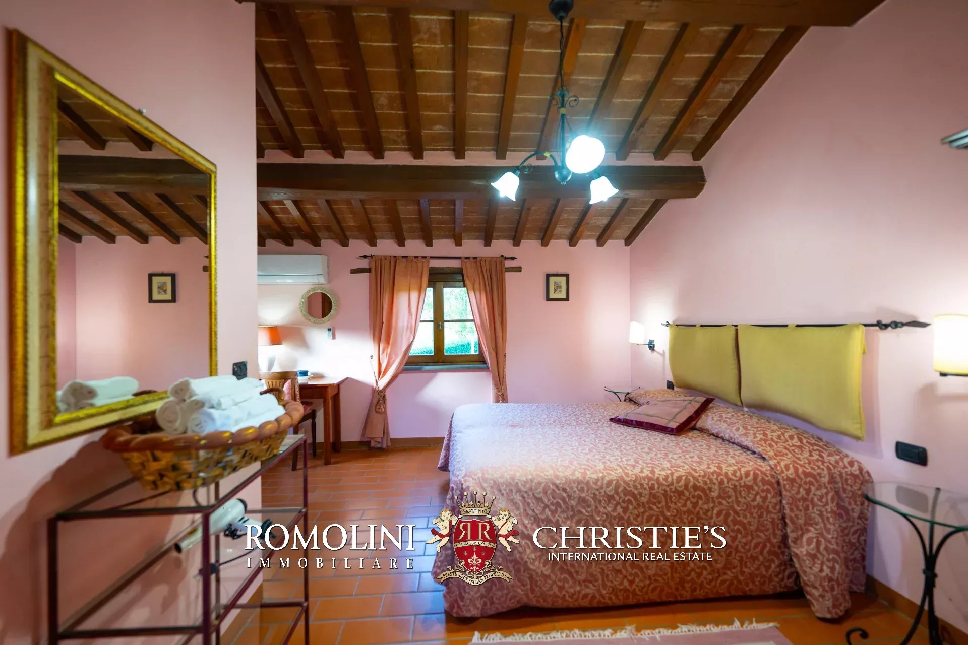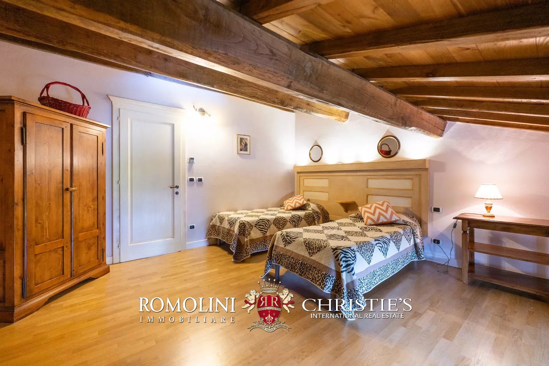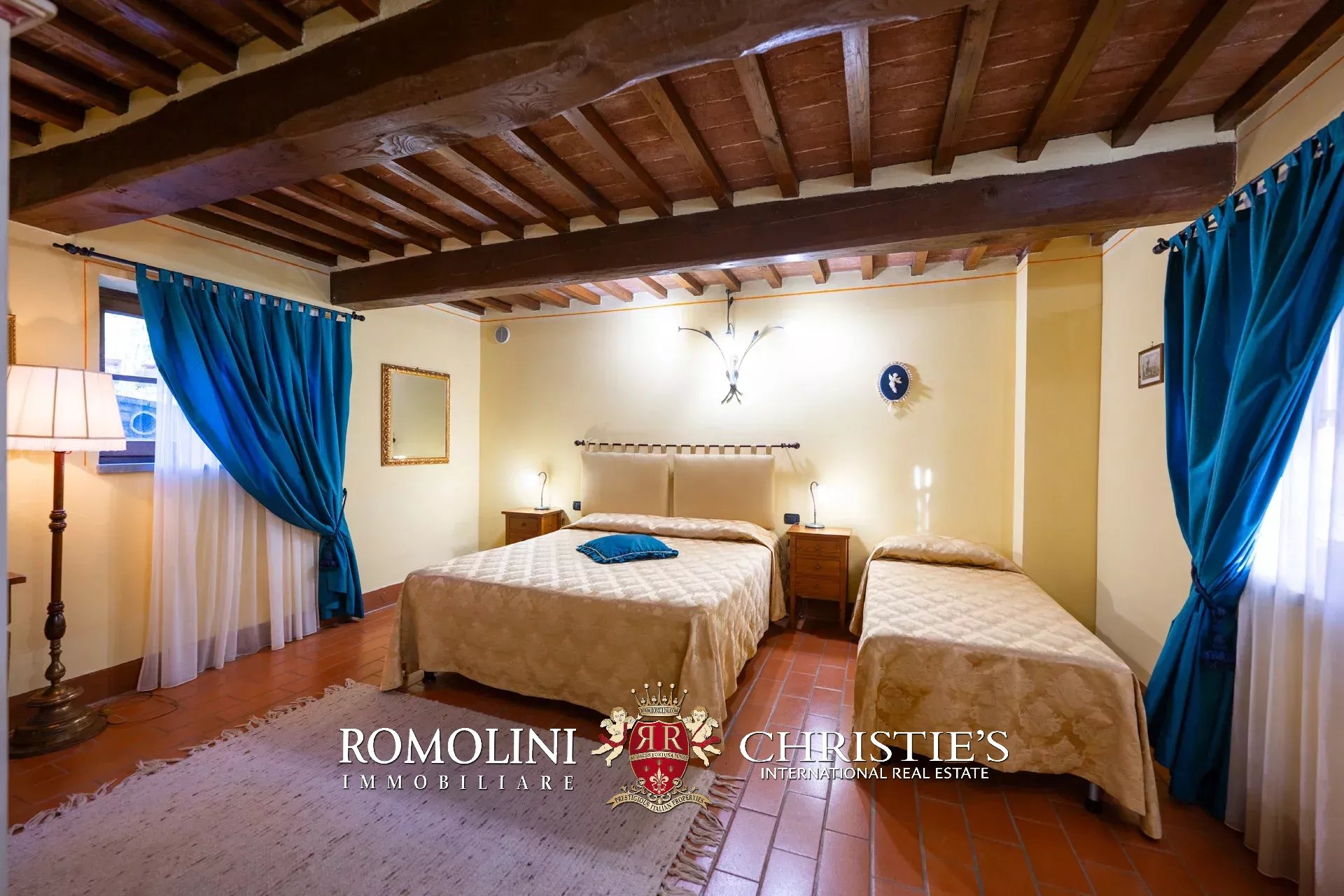 - Piano terra: grande soggiorno, salotto con camino, cucina professionale, bagno di servizio e due camere con bagno en-suite;