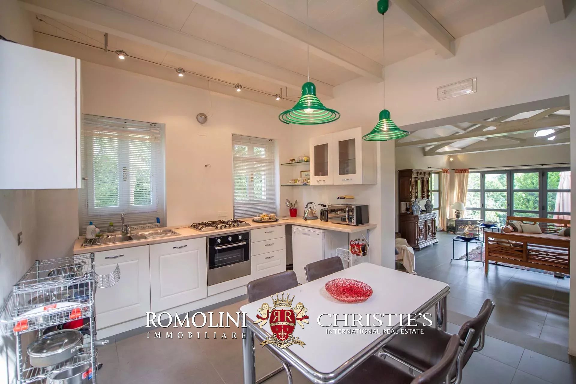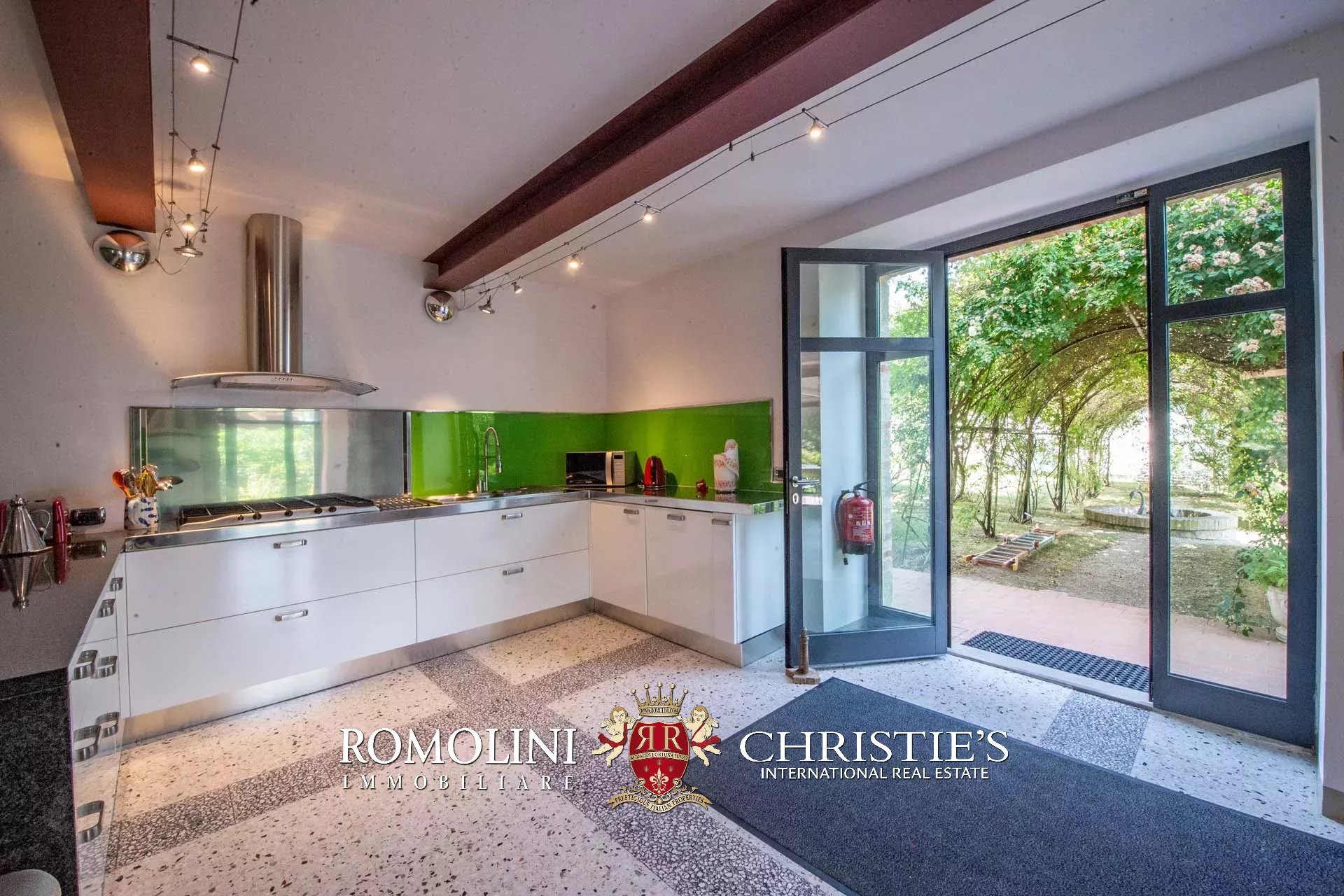La dependance (100 m², 2 camere e 1 bagno) si trova non lontano dalla villa ed è il risultato dell’ampliamento di una cappella databile al XIII secolo (che costituisce oggi la camera del piano terra). L’annesso si compone di una grande zona giorno/pranzo, cucina, camera con bagno en-suite e soppalco utilizzabile come seconda camera con bagno privato. L’edificio è stato ricostruito seguendo la forma di una precedenze costruzione. La struttura rispetta le nuove norme antisismiche ed è realizzata con micropali nelle fondamenta così da garantire la massima stabilità. Nell’ottica dell’efficienza energetica, il riscaldamento nella dependance è realizzato sotto il pavimento con una piccola stufa a legna di supporto.