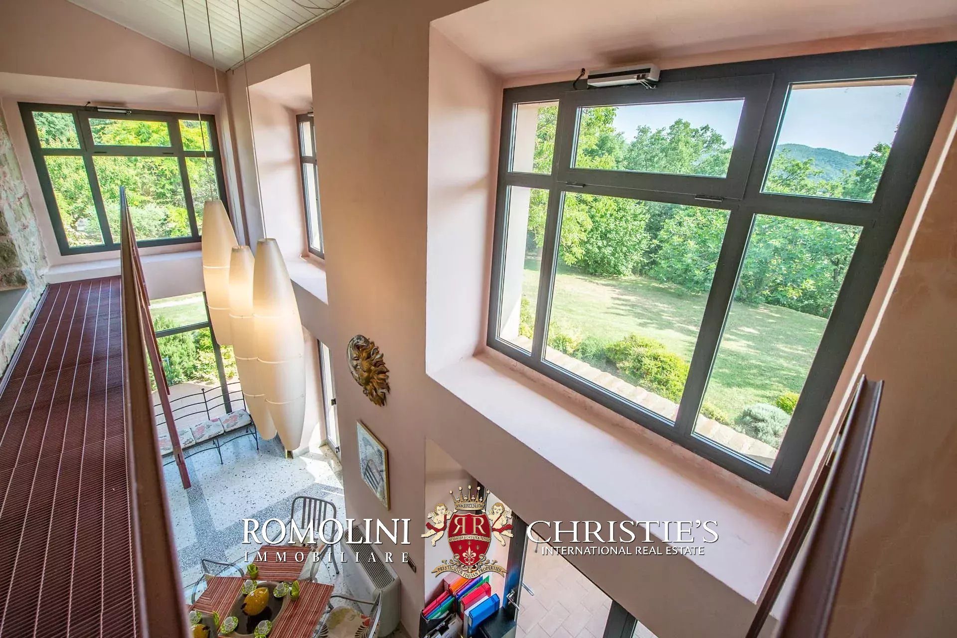 In posizione panoramica, a circa 550 m slm, villa ristrutturata con dependance e piscina. L’edificio principale (oltre 300 m) ospita attualmente 3 camere e 3 bagni in un contesto ben curato e rifinito. La dependance era una cappella risalente al XIII secolo ed è stata convertita in una graziosa abitazione indipendente. A breve distanza dalla casa si trovano la piscina 14 × 4,5 m e l’oliveto (100 piante) che permette di produrre circa 50 litri di olio.