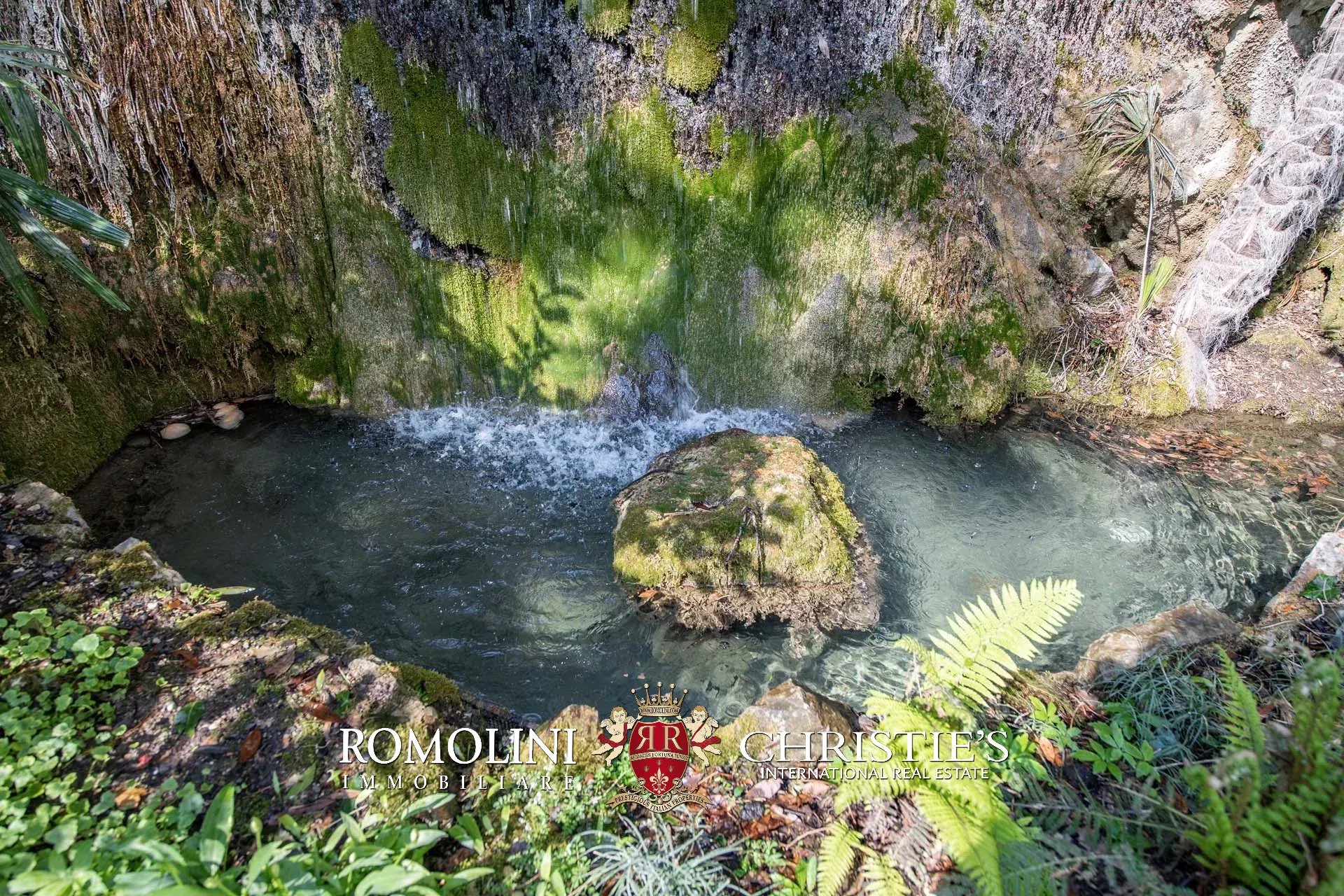 Sul retro si trova infatti uno stupefacente giardino botanico di 2,1 ha con una peculiare e suggestiva sorgente naturale che forma una rete di piccoli ruscelli. Il parco si stende sul pendio che digrada verso il lago ed è scandito da muretti in pietra, vialetti pavimentati, sentieri e suggestive scarpate con cascate.