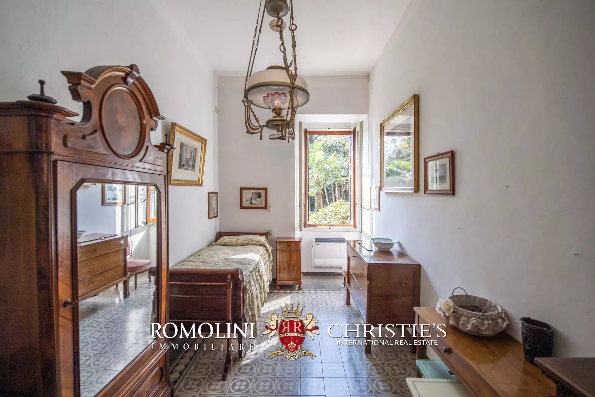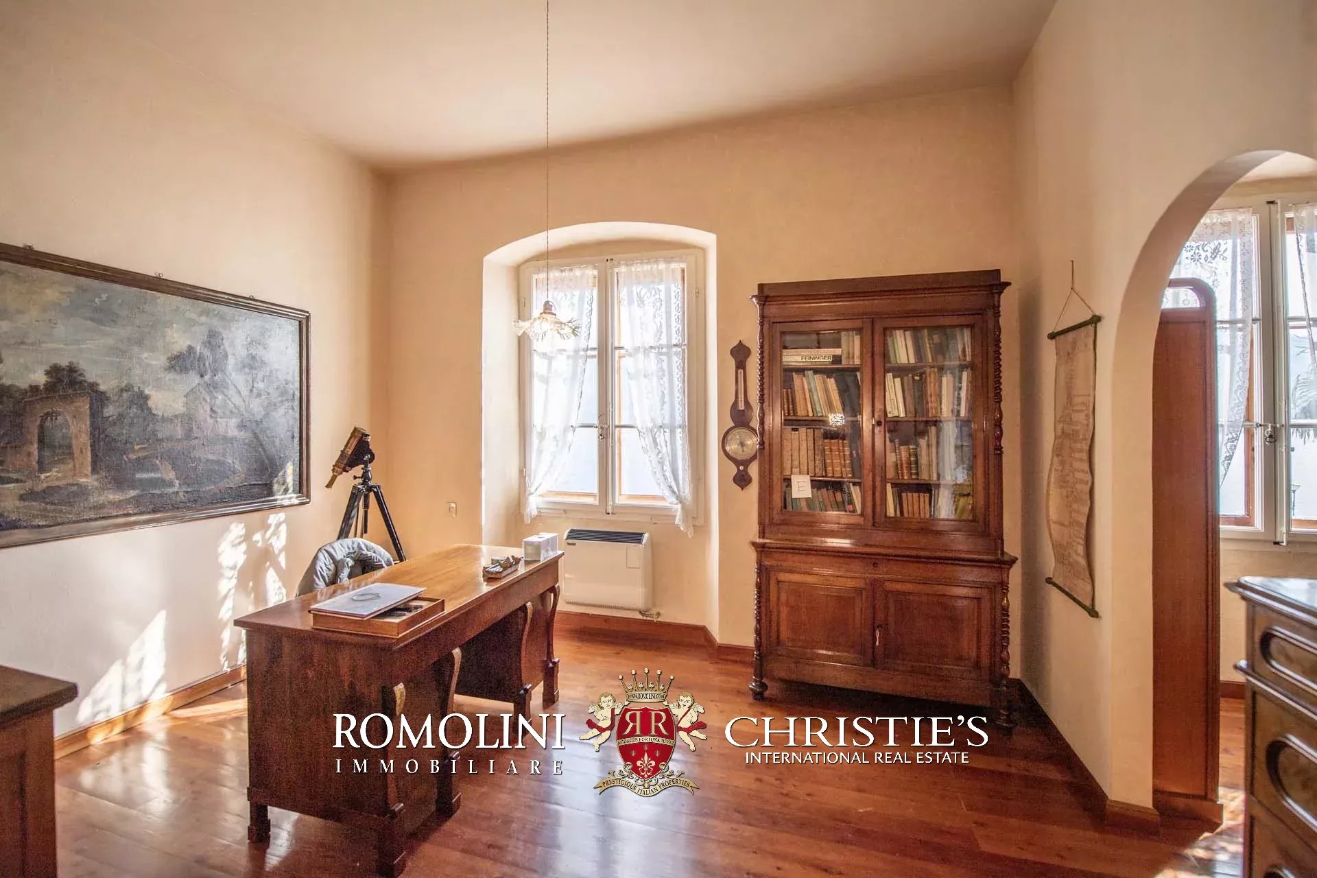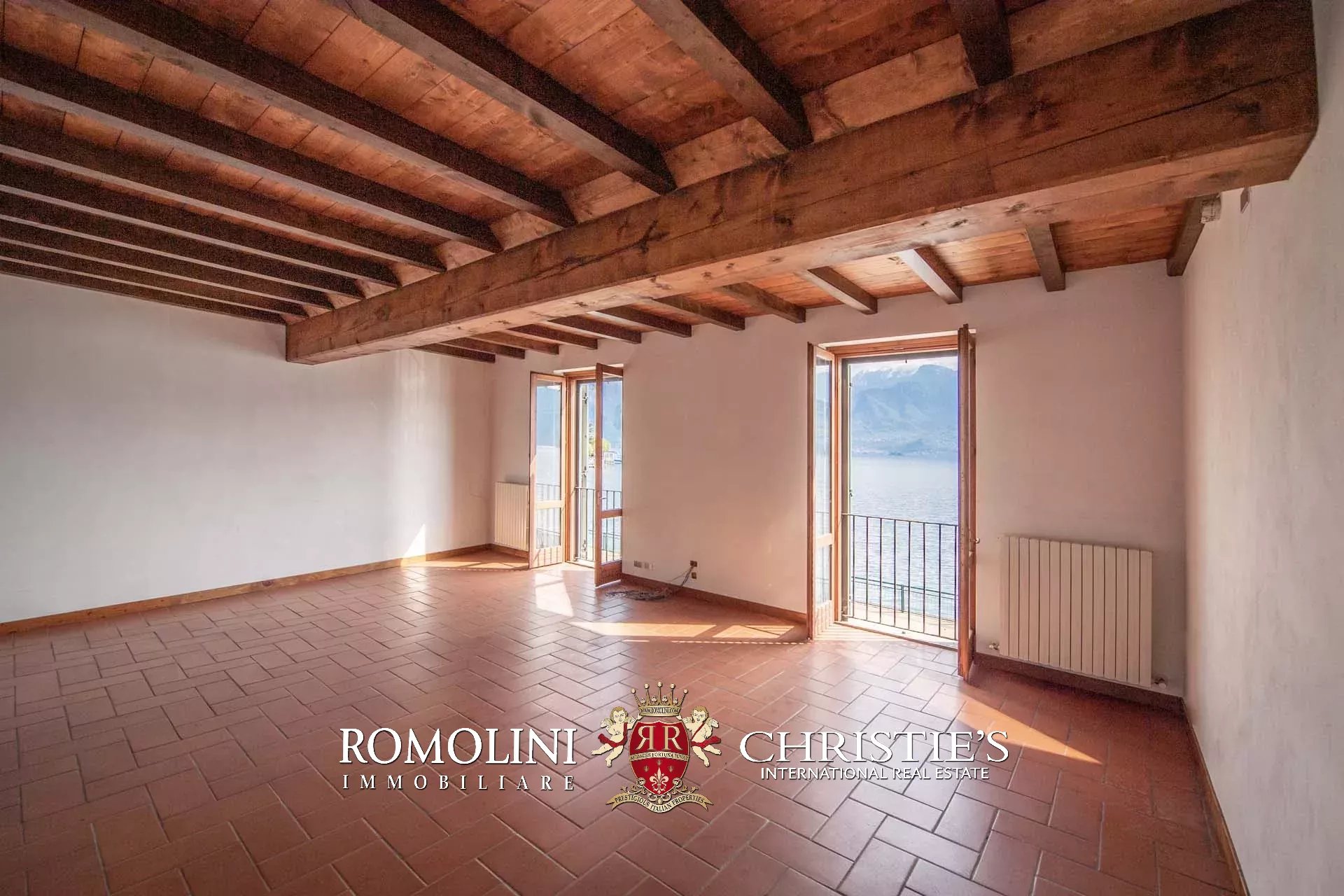 Salendo al piano primo (soffitti con altezza variabile tra 2,7 e 3,6 m) tramite una magnifica scala in pietra locale troviamo un soggiorno, due studi, una libreria con sala lettura, cinque camere, due bagni e una splendida veranda con terrazza affacciata sul lago da un lato e sul giardino dall’altro.