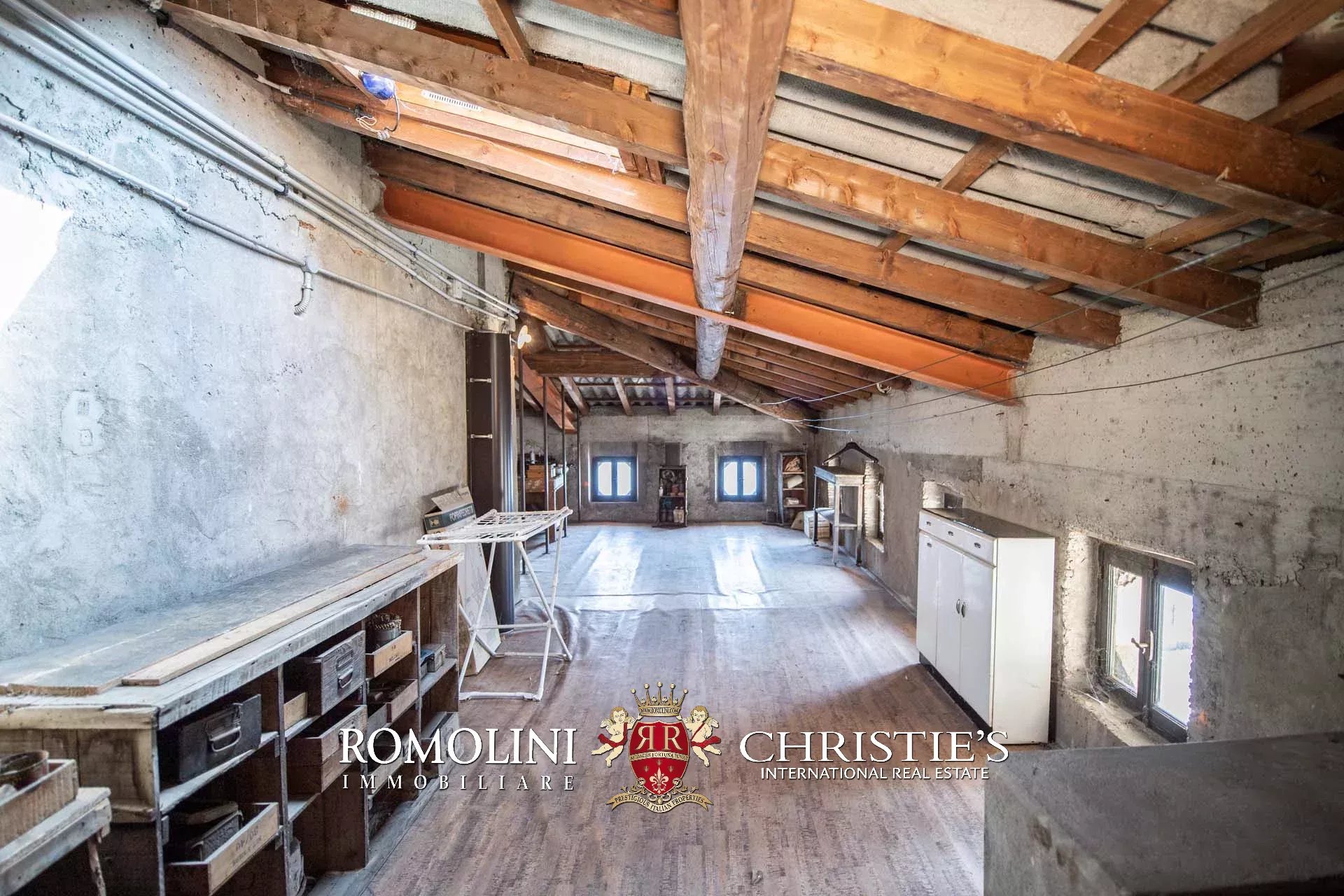 Infine, il secondo piano ospita attualmente dei locali sottotetto (con altezza variabile tra 1,5 m e 3,0 m) che tuttavia potrebbero essere parzialmente rivisti e riorganizzati per creare ulteriori camere e bagni per la villa.