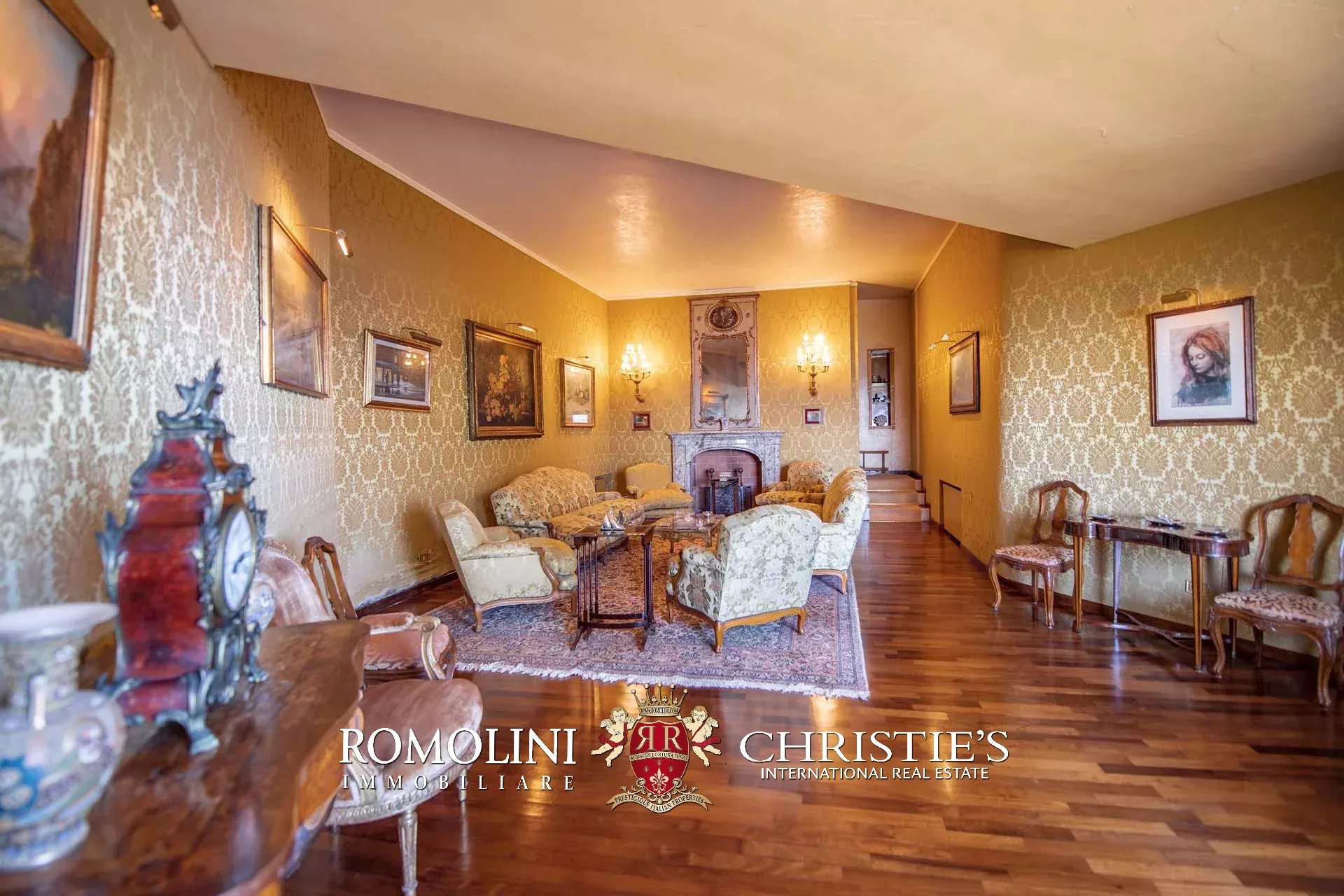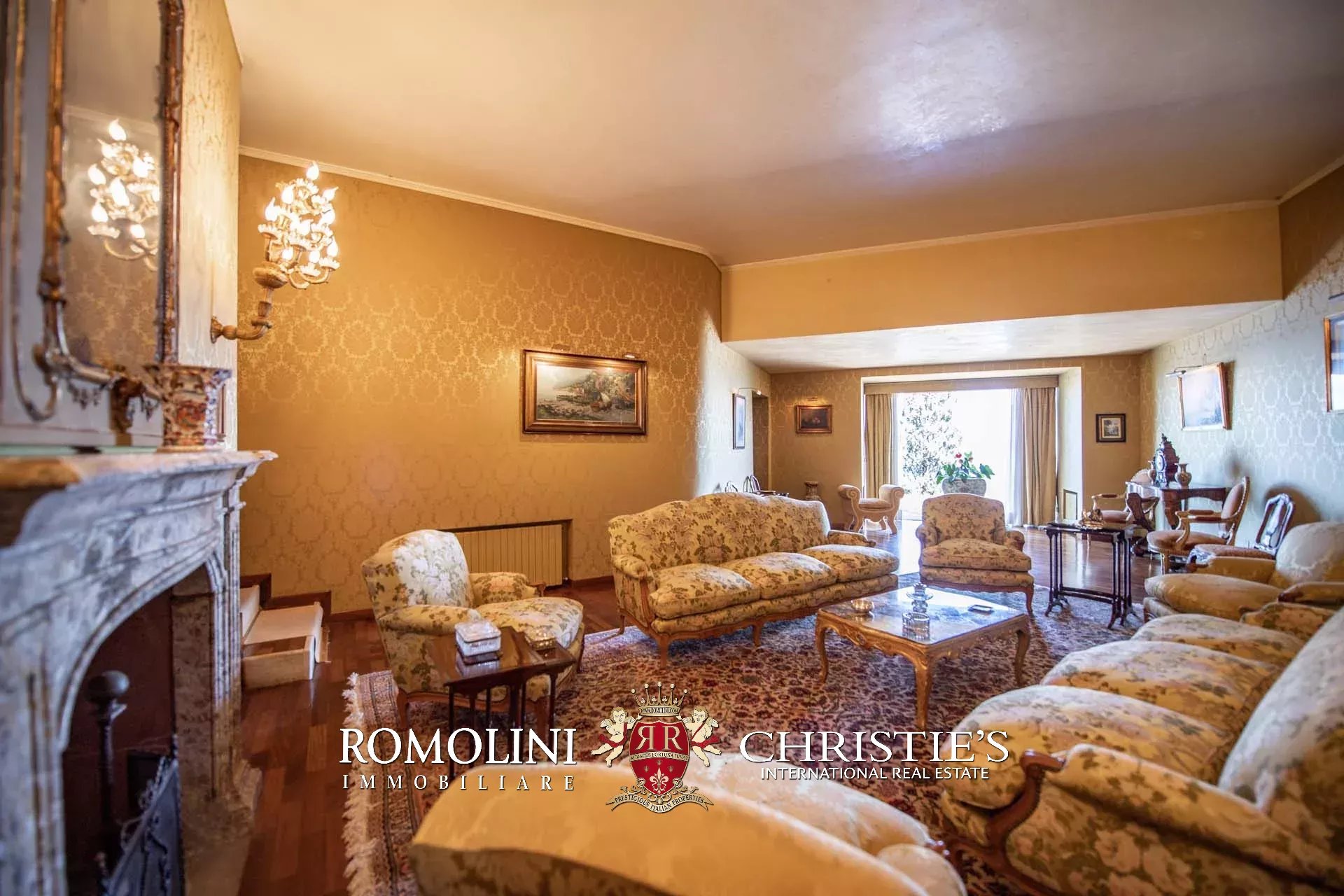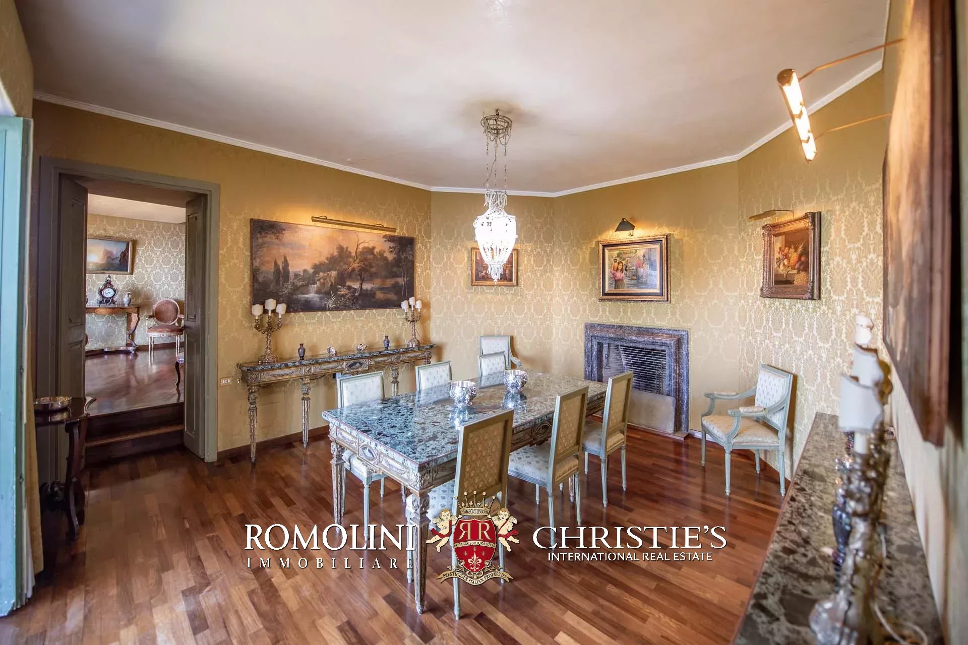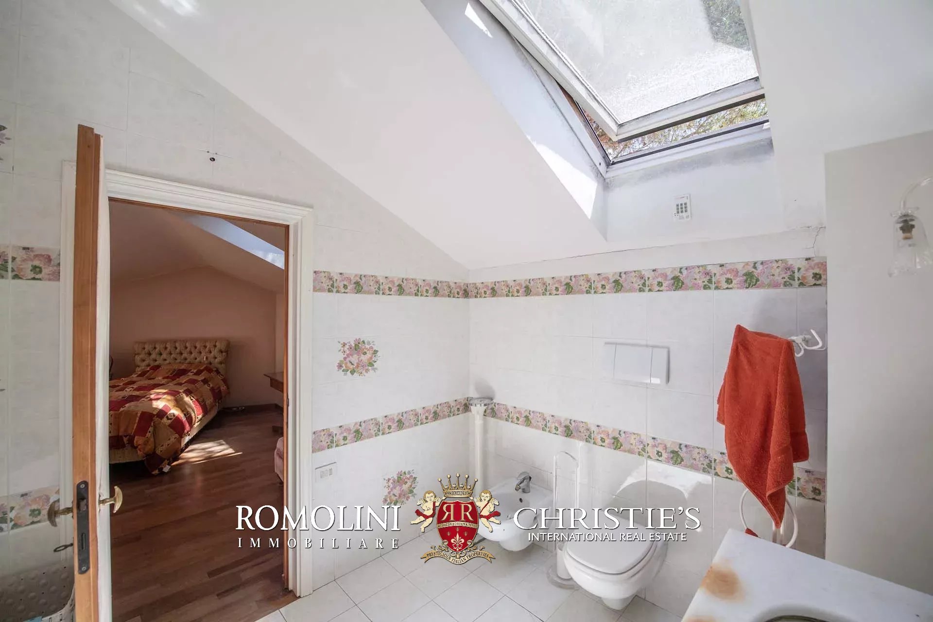 La villa (400 m², fino a 4 camere e 5 bagni) dispone di due accessi separati. Il primo, situato proprio lungo la strada che esce da Porto Santo Stefano, porta nell’ampio garage della casa (44 m²). Da qui, passando attraverso una stanza poliuso con bagno, si entra nel piano inferiore della villa. La prima stanza che si incontra è il grande soggiorno con camino settecentesco in marmo. Da qui si passa alla sala da pranzo e, proseguendo all’interno di un corridoio, si arriva infine a un tinello e alla cucina con lo splendido soffitto a volta. Tutte le sale presentano delle grandi aperture vetrate che guardano direttamente il mare e si aprono sul giardino.